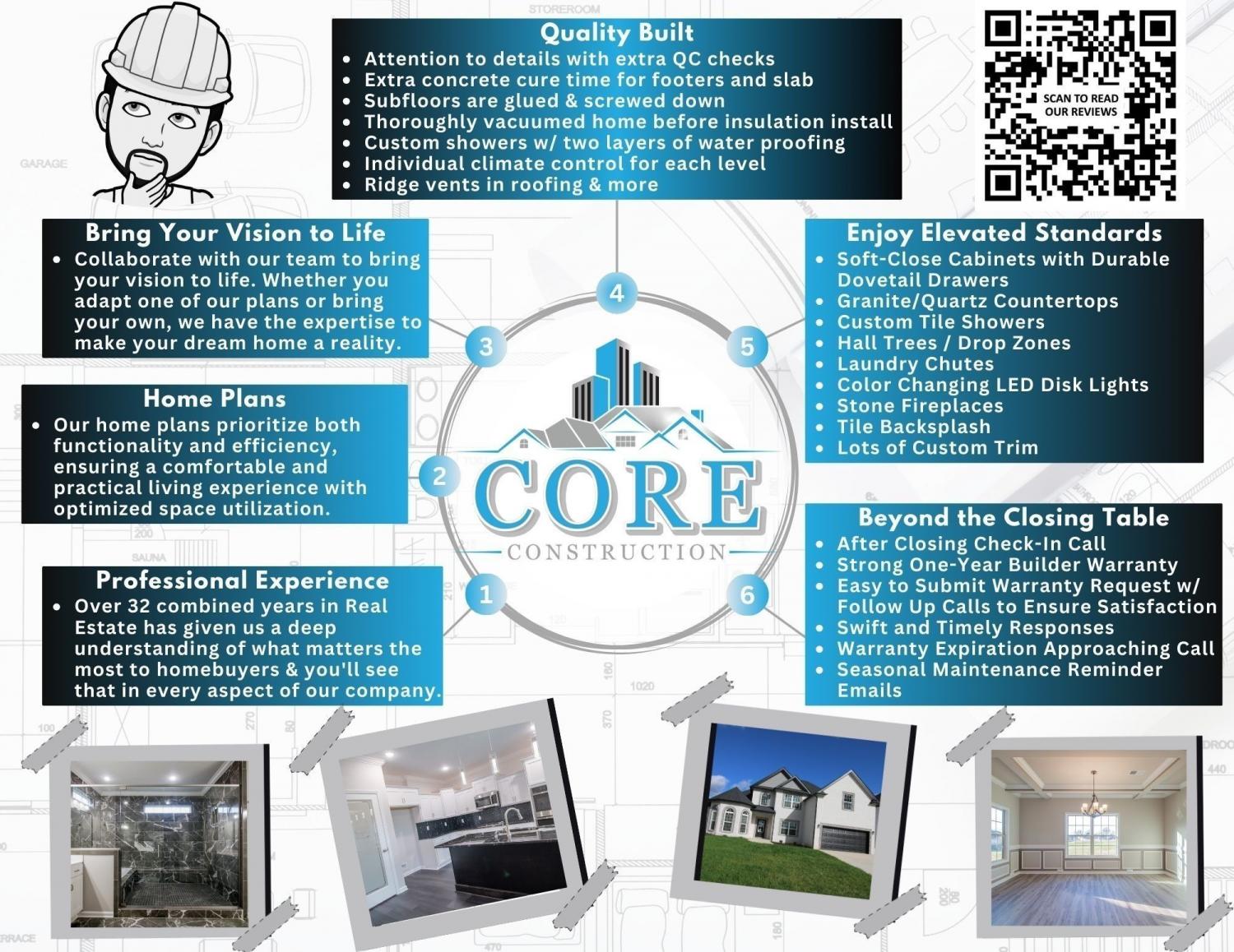 "The Brooke 2" Built by Core Construction LLC. All Brick Home on 1.09 Acres & County Taxes Only! Primary Bedroom Features a Sitting Area, Wood Flooring, 2 Walk-in Closets, Separate Vanities & a Luxurious Walk-in Tile Shower w/ 2 Shower Heads & Garden Tub All Enclosed Behind Glass! Large Kitchen w/ TWO Islands- One with a Serving Bar, Smart Double Oven, Granite Countertops, Under Cabinet Lighting, Tile Backsplash, Eat-in Nook & Lots of Cabinetry-All w/ Soft Close Doors & Drawers! Spacious Great Room w/ a Stone Fireplace & Beautiful Hardwood Stairs! Formal Dining Room w/ Chair Railing, Wainscoting & Coffered Ceiling! Large Guest Bedroom Downstairs w/ a Full Bathroom Beside it! Huge Bonus Room Features a Half Bath & a Walk-in Closet! Spacious Guest Rooms Upstairs Both w/ Walk-in Closets & Upstairs Bathroom Has a Double Vanity! Large Laundry Room w/ Cabinets! Attic Storage Space, Custom Trim, SPC Flooring & Wood Shelving! Eave Lighting Illuminates the Front Elevation & a Large Covered Patio Provides Backyard Enjoyment! A Must See!