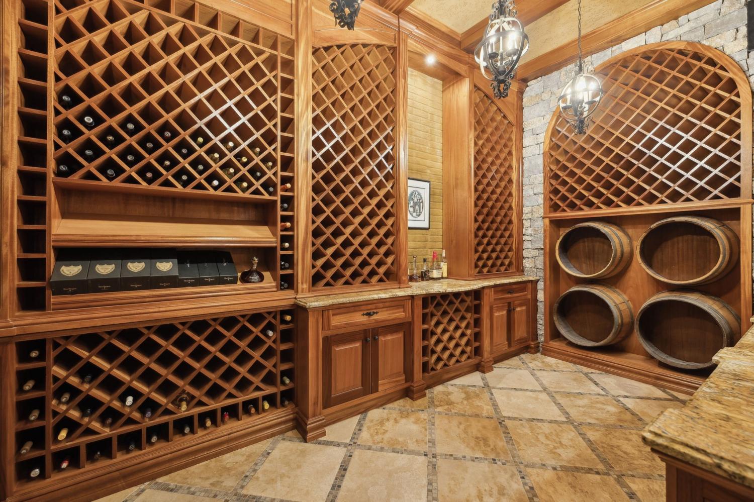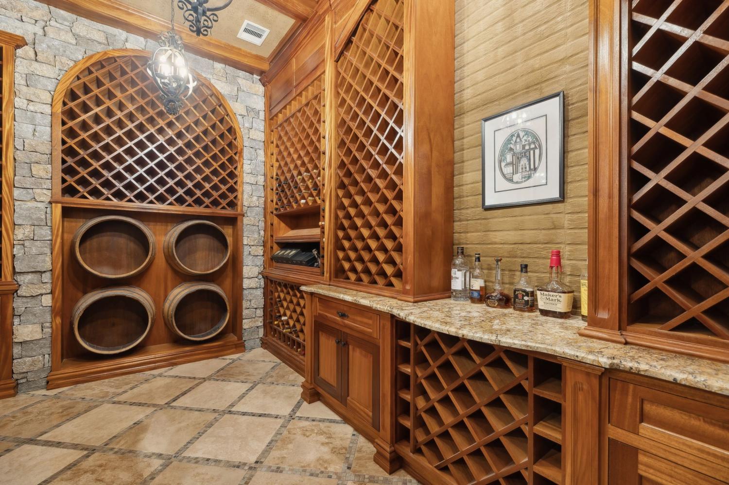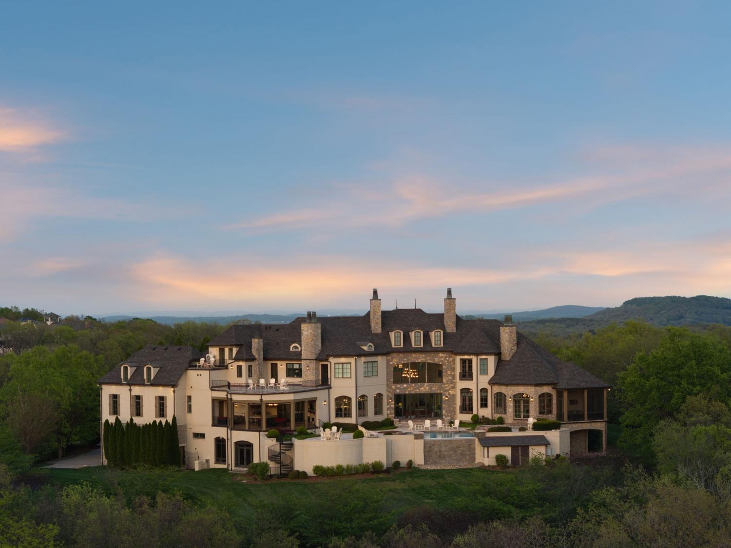 Welcome to a realm of unparalleled luxury and sophistication, where every detail of this magnificent estate has been meticulously crafted to offer an extraordinary living experience. Nestled atop a serene hilltop within an exclusive gated community, this architectural masterpiece presents 7 opulent bedrooms, 8 full baths, and 2 elegant half baths, all enveloped within nearly 15,000 sq. ft. of refined elegance. Set on 5.05 acres of pristine landscape, the property greets you with a grand gated entrance, a sweeping circular driveway, and a stately porte-cochère, leading to a majestic entrance adorned with gas lanterns. The estate offers breathtaking panoramic views, providing a stunning backdrop for mesmerizing sunsets that paint the sky in vibrant hues. The grandeur extends to an 8-car garage, complete with a lift and water hookups. Indulge in the plethora of lavish amenities, including a finished basement, a cigar room with a humidor, a wine cellar, a rejuvenating sauna, and a fully equipped gym with a locker room. An elegant elevator provides seamless access across all levels, ensuring convenience and accessibility throughout. The expansive theater room and sophisticated outdoor kitchen set the stage for unparalleled entertaining, while the shimmering infinity pool and spa provide a tranquil oasis. Inside, the estate is a testament to exquisite craftsmanship, featuring multiple porches, 5 stunning fireplaces, and a state-of-the-art kitchen adorned with Sub-Zero appliances. The ambiance is further elevated by the sophisticated Control4 lighting system, ensuring every moment is perfectly lit. This home is a sanctuary of luxury, boasting spray foam insulation, tankless water heaters, Kinetico water systems, a central vac system, and abundant storage space. Whether you seek relaxation or grand entertainment, this estate is the epitome of opulent living, where every wish is effortlessly fulfilled.