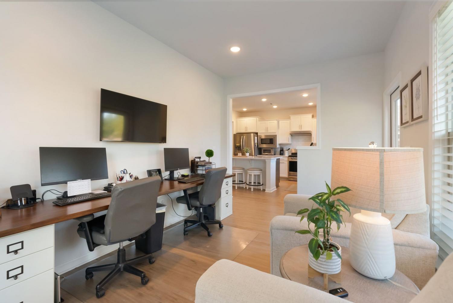 Welcome to this beautiful, modern home in a vibrant 55+ community! This open-concept gem offers a spacious feel, perfect for entertaining or relaxing in style. The chef’s kitchen boasts stainless steel appliances, including a gas range, ample quartz counter space, extra large pantry, and a seamless flow into the dining, den, and living areas—ideal for entertaining or everyday living. The main floor primary suite boasts a spacious room, with tray ceilings, luxurious en-suite bath, including double vanities and a dedicated makeup counter for added convenience. You will be impressed with the walk-in closet too. Plenty of storage and closet space throughout the home. Downstairs also offers a dedicated office or flex room, and a comfortable den at the back of the home, which leads to the outside covered patio area, and backyard. Upstairs has a huge bonus space, extra storage room, with attic access, and guest bedroom and bath. $100,000 worth of upgrades! This Del Webb community is resort living at its best, offering plenty of opportunities to stay active and connected, with a huge Club House, fitness center, indoor/outdoor pools, tennis and pickle ball courts, walking trails, dog parks, and numerous community groups to get involved with. Designed for comfort and low-maintenance living, this home is the perfect blend of elegance and practicality for your next chapter in life. Super convenient (< 5 mins drive) to shopping, interstate, and medical facilities; < 40 mins to Nashville and BNA (airport). Come see it today and experience the best in active adult living!