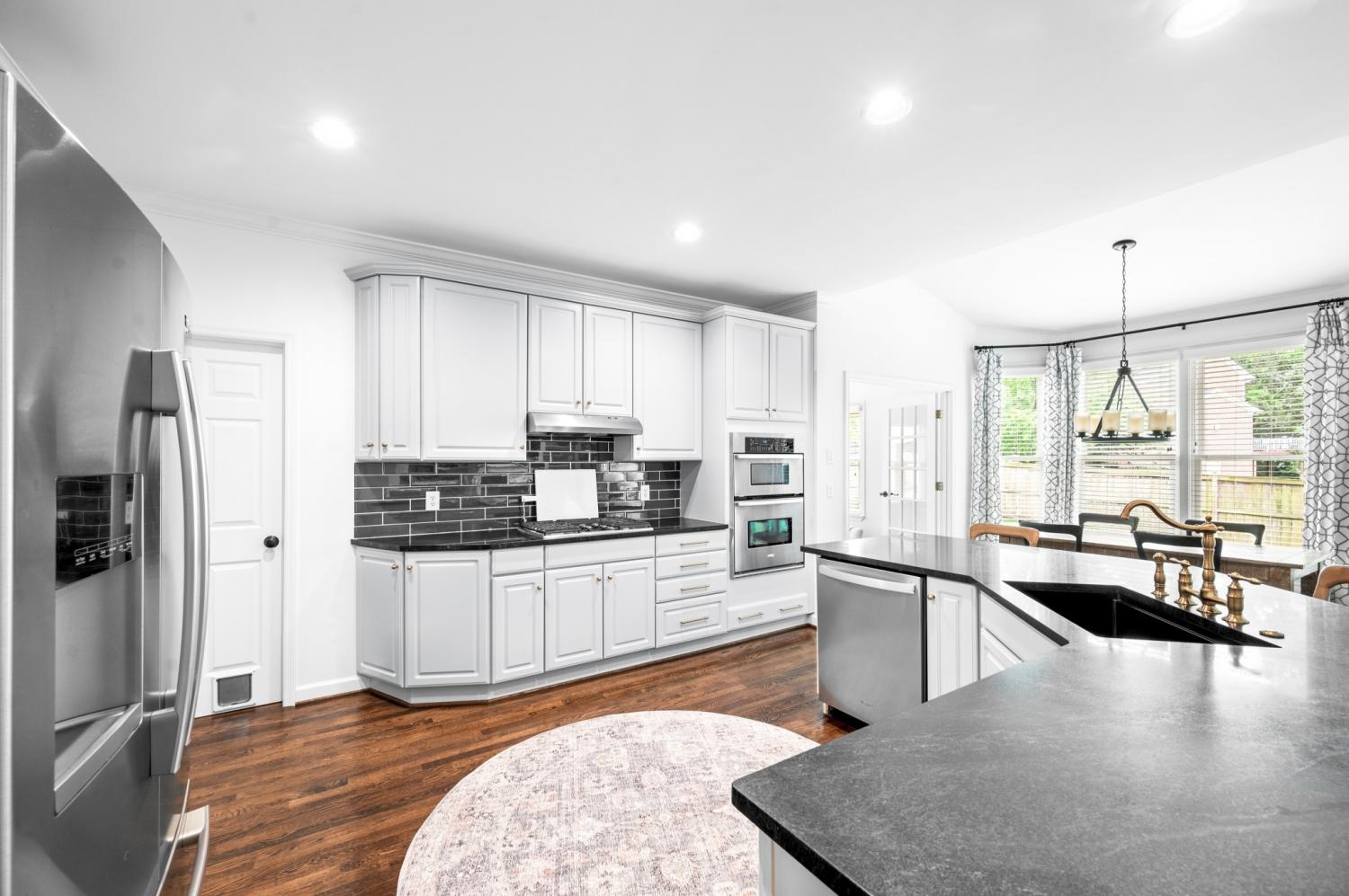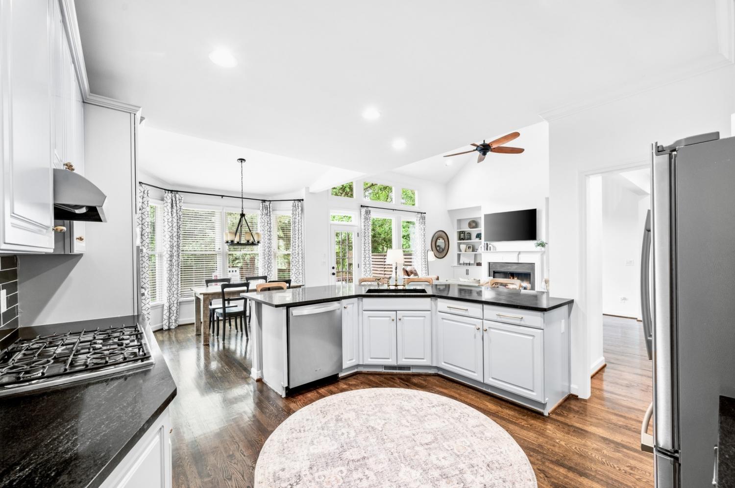Welcome to 300 Ferris Court—a beautifully updated home situated on a prime corner lot in the heart of Cool Springs. This light-filled open floor plan features brand new windows, freshly painted interior, real hardwood floors throughout the main level and upstairs landing, and a stylishly updated kitchen with new granite countertops and painted cabinets. The living room features custom built-ins next to the wood-burning fireplace, and the newly renovated dry bar with mini fridge provides the perfect touch for entertaining. You'll love the rare side-entry mudroom, new double-entry doors, updated lighting, and newer hot water heater. Upstairs offers a spacious bonus room that can serve as an additional bedroom, while outside, the fully fenced, irrigated yard boasts a freshly stained deck—perfect for relaxing or hosting gatherings. Zoned for top-rated Kenrose, Woodland, and Ravenwood schools, this home is nestled in a sought-after community with a renovated clubhouse, pool, tennis and pickleball courts, a playground, a basketball court, and sidewalks throughout. This turnkey residence checks all the boxes, with a prime location just minutes from Cool Spring's finest shopping, dining, and entertainment options. Don't miss your chance to make it your home!