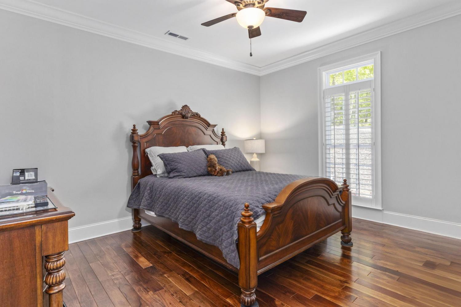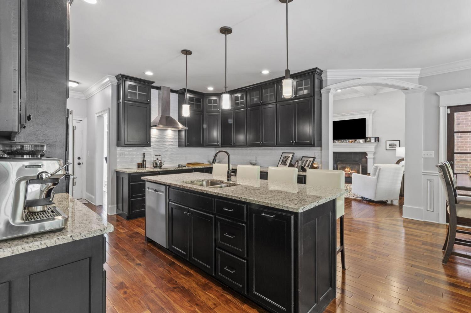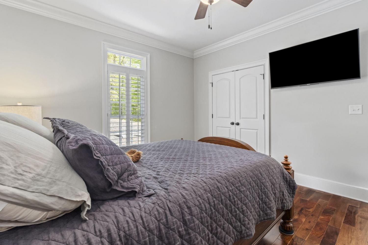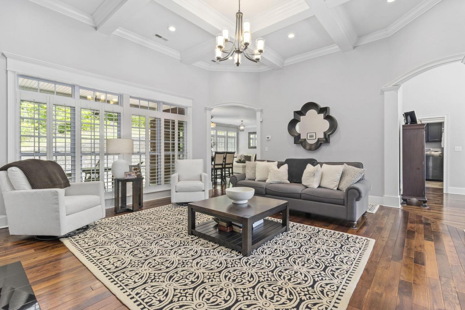 2.17 acres of serene privacy awaits you atop scenic Elder Mountain, where the world gently fades away as you arrive at your new home nestled amongst the trees. This rare and distinguished all-brick residence offers a lifestyle of tranquility and understated elegance. Step through gracious wood-framed French doors and be greeted by the warmth of gleaming wood floors that flow seamlessly throughout the expansive, mostly one-level living space. An abundance of windows invites the beauty of the surrounding woods inside, creating a harmonious connection with nature. Prepare to be captivated by the exquisite trim work that defines this home's character. Admire the elegant arches framing the dining room, the sophisticated coffered ceiling gracing the great room and the refined tray ceiling adding architectural interest to the voluminous primary suite. The kitchen is a culinary dream realized - a sprawling space boasting an abundance of cabinetry that stretches to the soaring ceilings, complete with stylish display cabinets. Miles of granite countertops offer endless prep space, including an expansive island with inviting bar seating. A charming breakfast nook and cozy keeping room create the perfect heart of the home, a natural gathering place for loved ones. The thoughtful split bedroom plan ensures privacy and tranquility for all. The primary suite is a true retreat, where rich hardwood floors continue beneath an impressive tray ceiling. The spa-like bath features handsome travertine tile, separate granite-topped vanities, a fully tiled shower, and a separate soaking tub. And the walk-in closet? A haven of organization and space! A versatile fourth bedroom, currently utilized as an office, is conveniently located at the front of the home. Ascend to the upper level to discover a flexible bonus room, complete with a convenient half bath and a cozy fireplace - an ideal space for recreation, hobbies, or a private guest retreat.