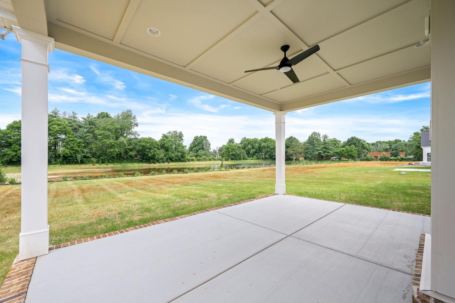 Private & peaceful! This stunning brand new home by Four Corners backs up to a tranquil detention pond — no backyard neighbors! Enjoy 10' ceilings on main, 9' up, a chef’s kitchen with quartz countertops, custom hood, 36" gas cooktop, and built-in oven/microwave. Features include built-ins, soft-close cabinetry, gas fireplace, and custom closets. Primary suite offers a frameless tiled shower & laminate floors. Side-entry garage + private mailbox. Premium flat lot!