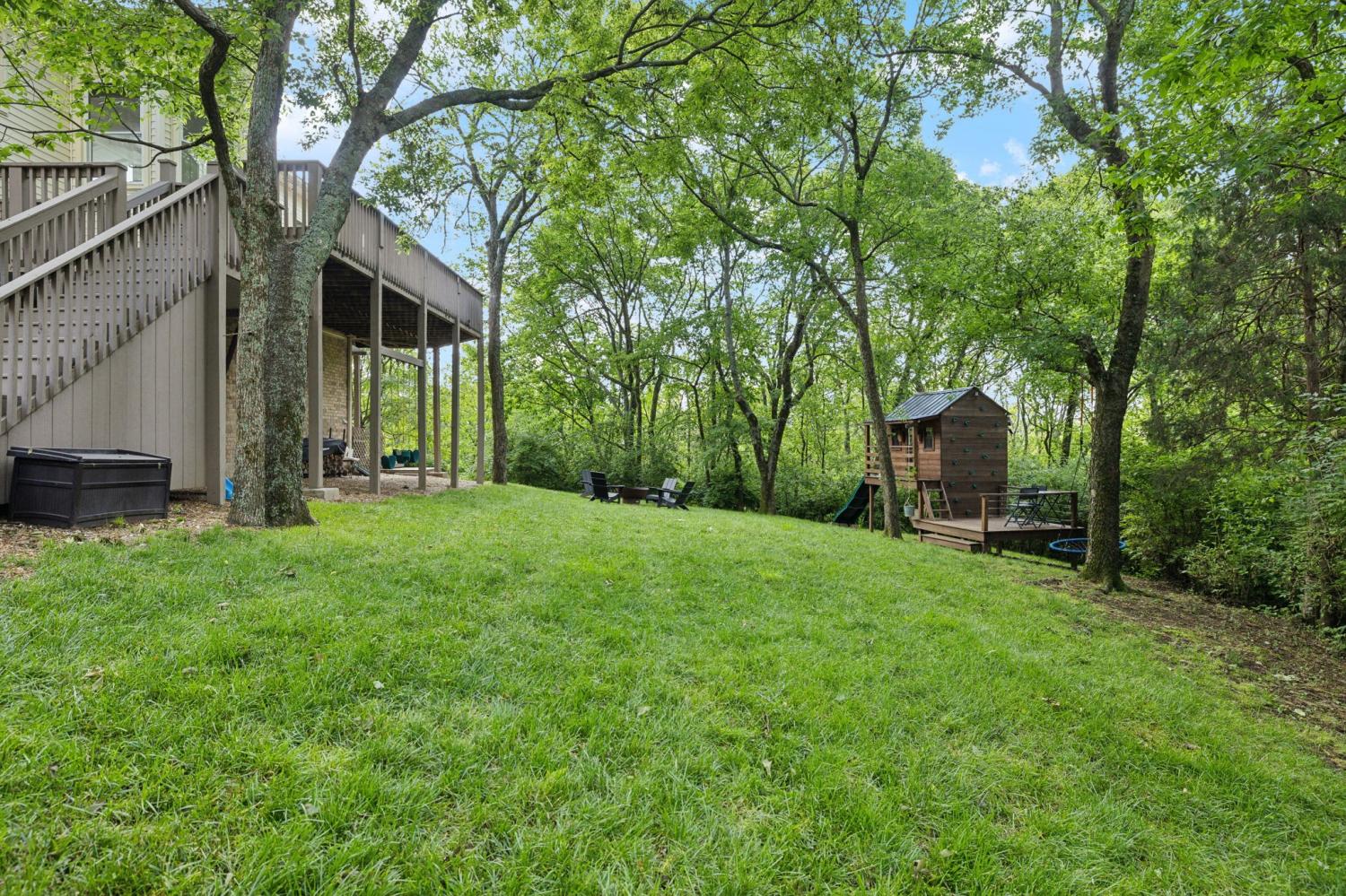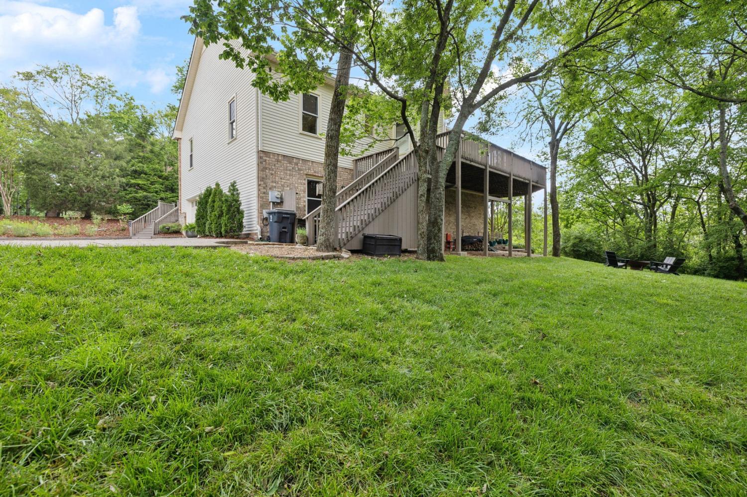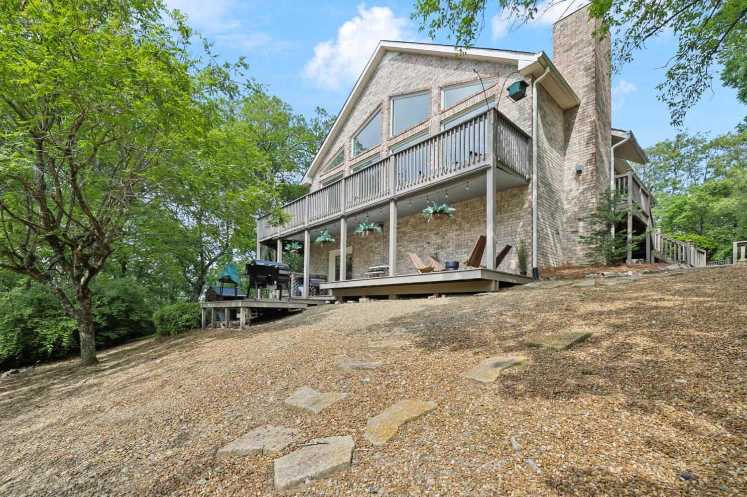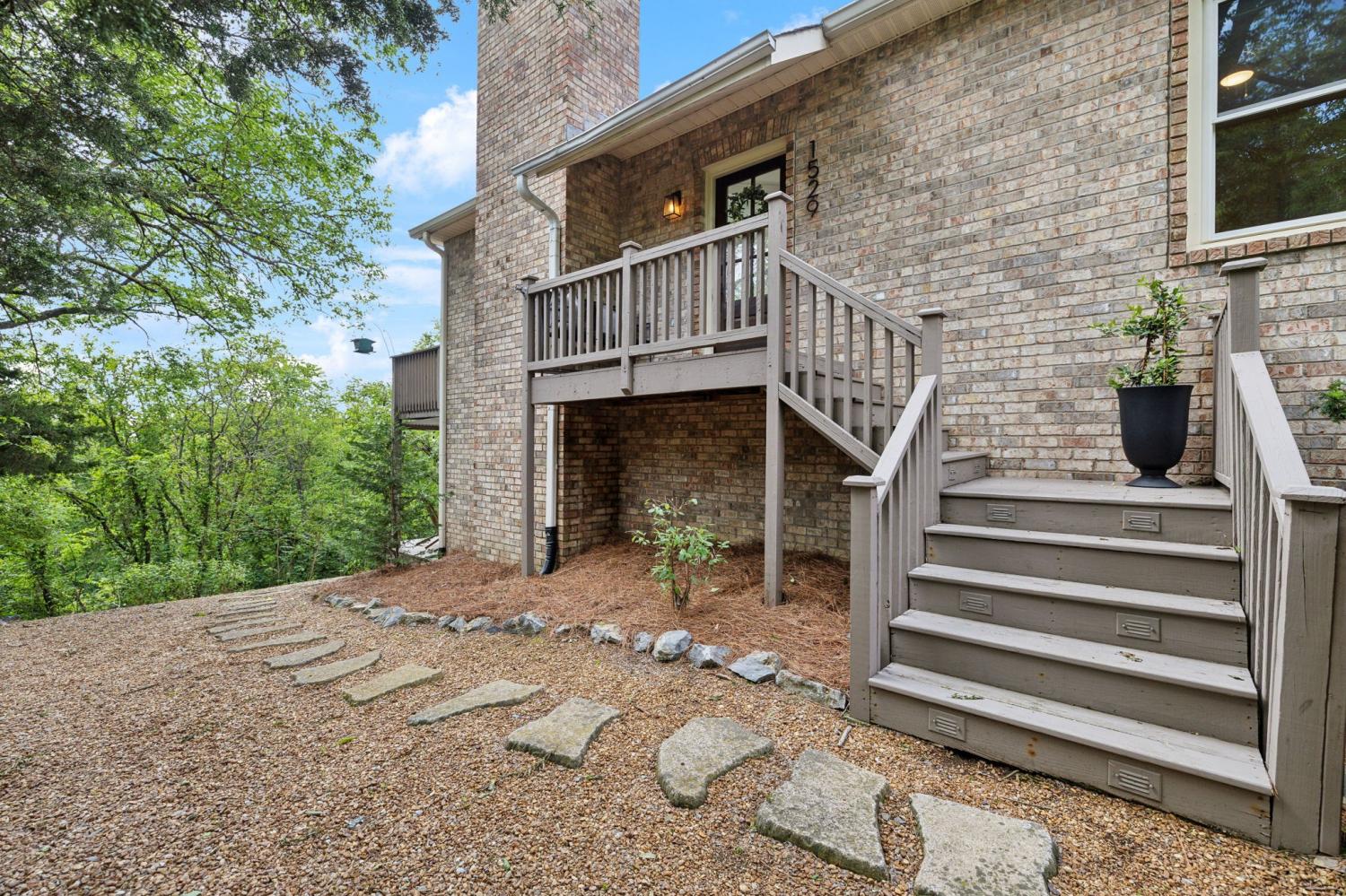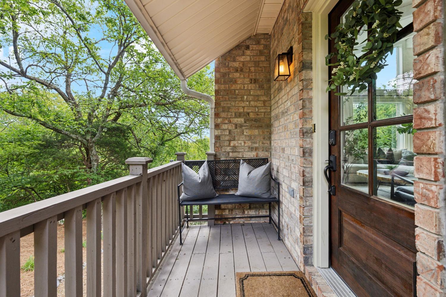 Secluded hideaway with panoramic views in the heart of Brentwood's Willowick neighborhood. This light-filled, open-concept home offers a stunning blend of modern and mountain house charm. The vaulted great room has soaring ceilings, wood beams, and a reclaimed wood fireplace mantle to create a dramatic focal point. Expansive new windows flood the space with natural light and frame the sweeping views. Enjoy the tranquility of nature from the wraparound and covered decks, native butterfly garden and lush surroundings. The walkout lower level serves as a perfect teen or In-Law suite, complete with a spacious rec room, wet bar, shiplap ceilings, bedroom, full bath, and a private covered deck. Additional features include a Nest thermostat and driveway security camera for modern convenience and peace of mind. The private, shaded yard has a custom treehouse and built In Swings that can remain with the home. Enjoy access to I-65, top-rated schools, Cool Springs, Franklin, and Downtown Nashville. List of upgrades and special features attached.
