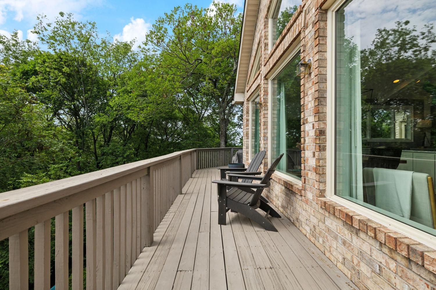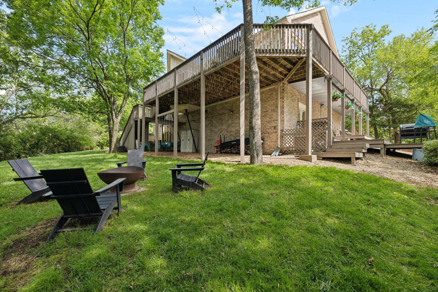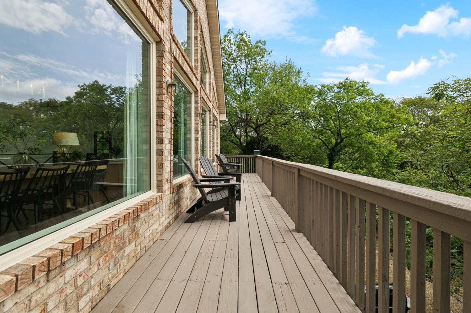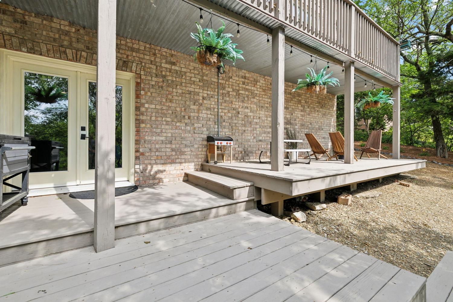 Secluded hideaway with panoramic views in the heart of Brentwood's Willowick neighborhood. This light-filled, open-concept home offers a stunning blend of modern and mountain house charm. The vaulted great room has soaring ceilings, wood beams, and a reclaimed wood fireplace mantle to create a dramatic focal point. Expansive new windows flood the space with natural light and frame the sweeping views. Enjoy the tranquility of nature from the wraparound and covered decks, native butterfly garden and lush surroundings. The walkout lower level serves as a perfect teen or In-Law suite, complete with a spacious rec room, wet bar, shiplap ceilings, bedroom, full bath, and a private covered deck. Additional features include a Nest thermostat and driveway security camera for modern convenience and peace of mind. The private, shaded yard has a custom treehouse and built In Swings that can remain with the home. Enjoy access to I-65, top-rated schools, Cool Springs, Franklin, and Downtown Nashville. List of upgrades and special features attached.