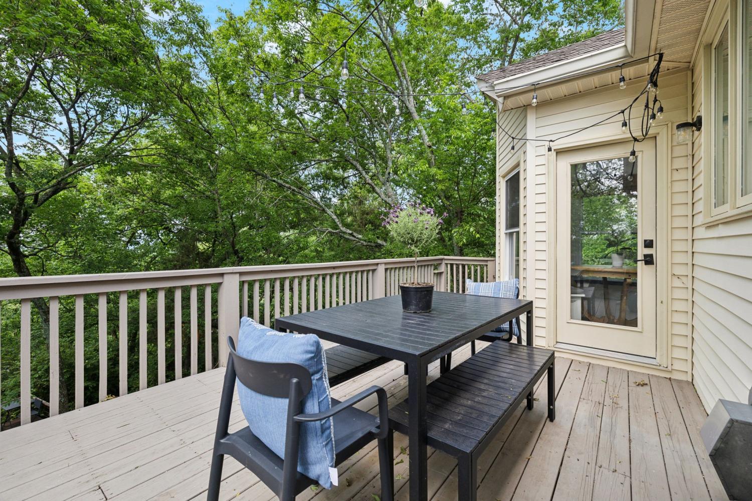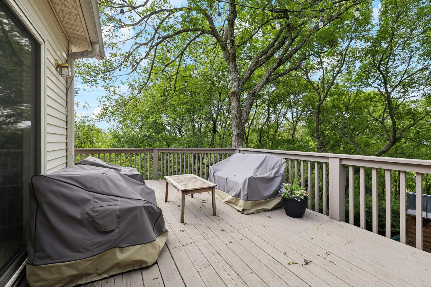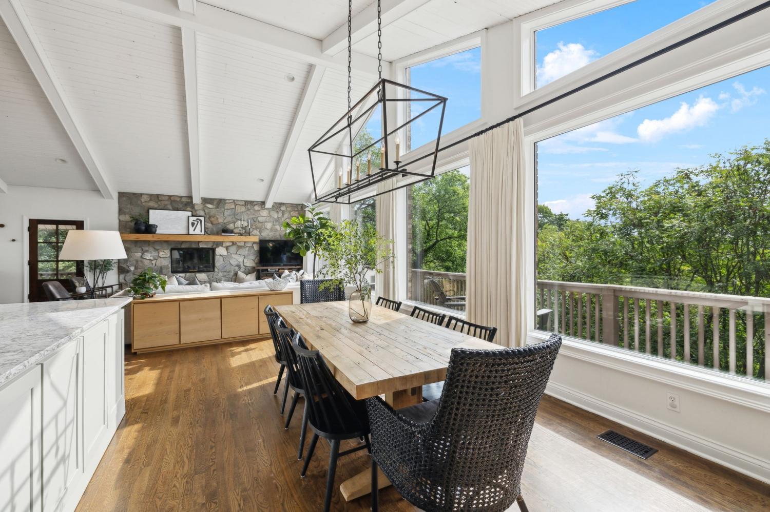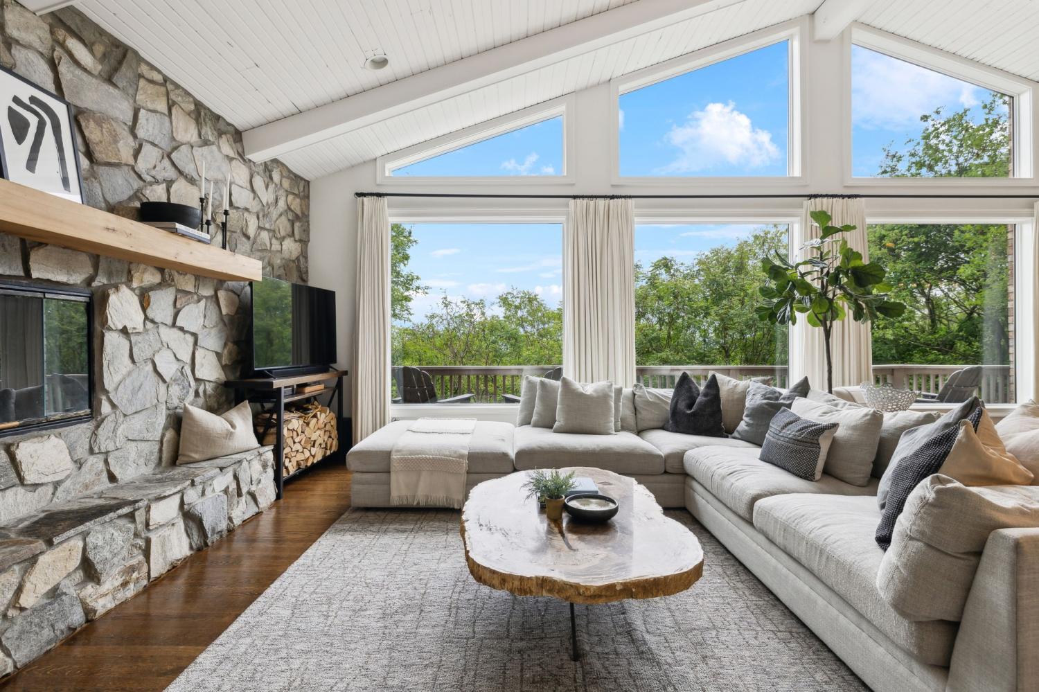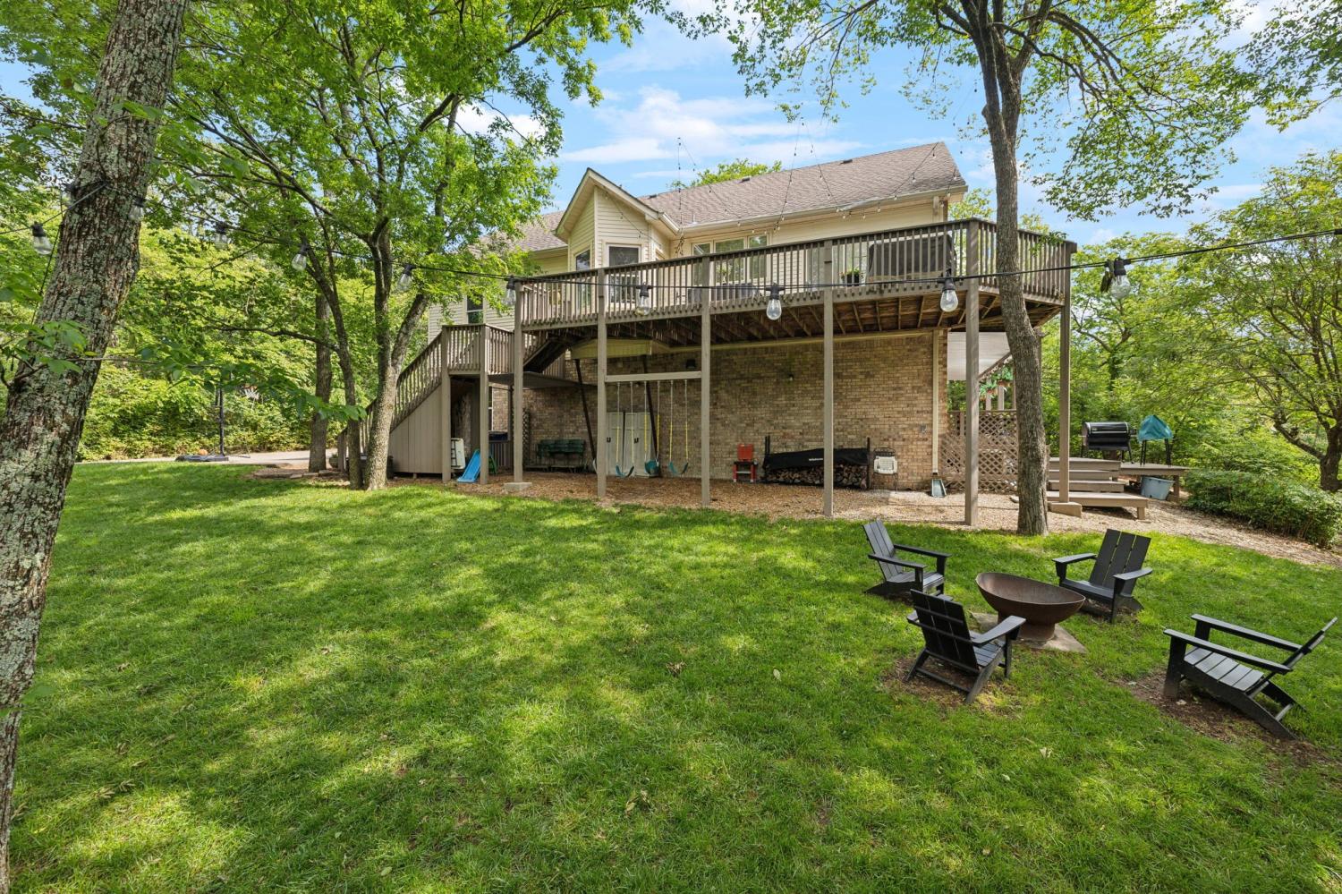 Secluded hideaway with panoramic views in the heart of Brentwood's Willowick neighborhood. This light-filled, open-concept home offers a stunning blend of modern and mountain house charm. The vaulted great room has soaring ceilings, wood beams, and a reclaimed wood fireplace mantle to create a dramatic focal point. Expansive new windows flood the space with natural light and frame the sweeping views. Enjoy the tranquility of nature from the wraparound and covered decks, native butterfly garden and lush surroundings. The walkout lower level serves as a perfect teen or In-Law suite, complete with a spacious rec room, wet bar, shiplap ceilings, bedroom, full bath, and a private covered deck. Additional features include a Nest thermostat and driveway security camera for modern convenience and peace of mind. The private, shaded yard has a custom treehouse and built In Swings that can remain with the home. Enjoy access to I-65, top-rated schools, Cool Springs, Franklin, and Downtown Nashville. List of upgrades and special features attached.