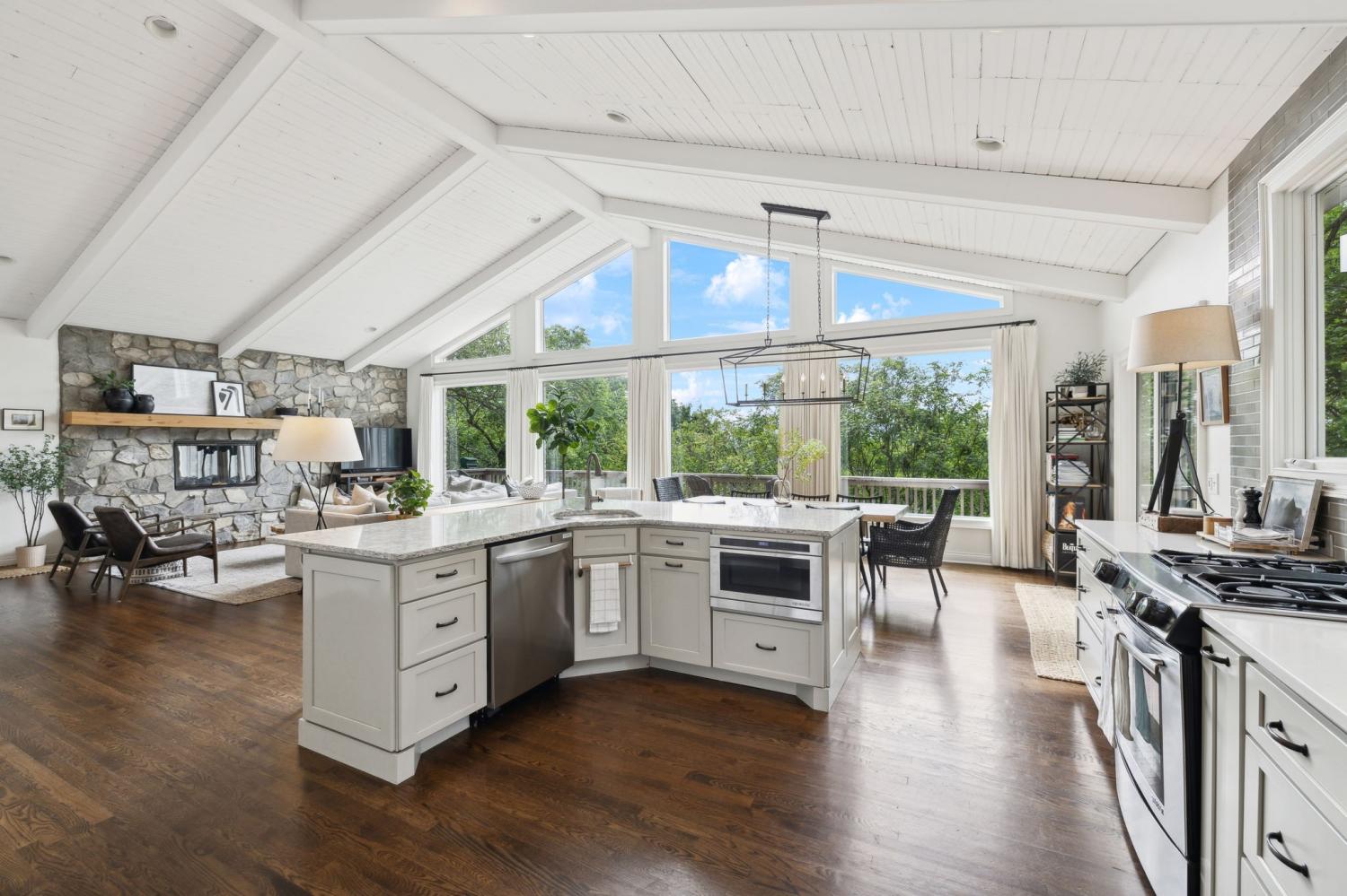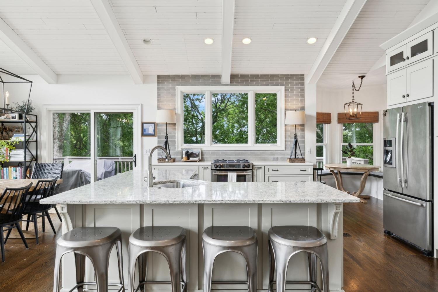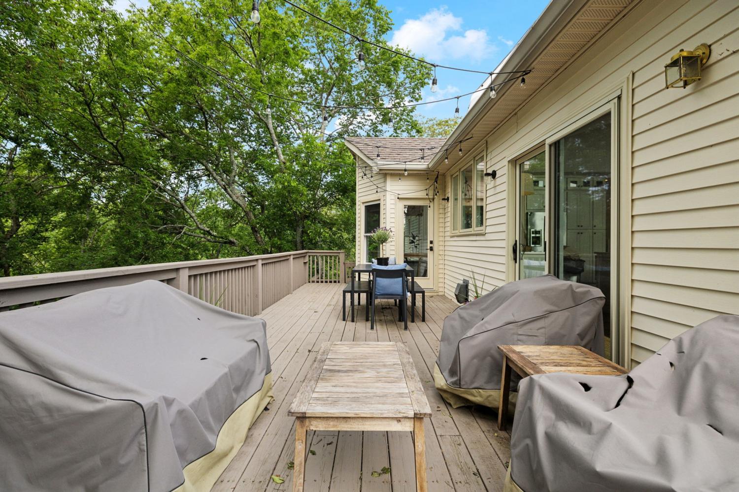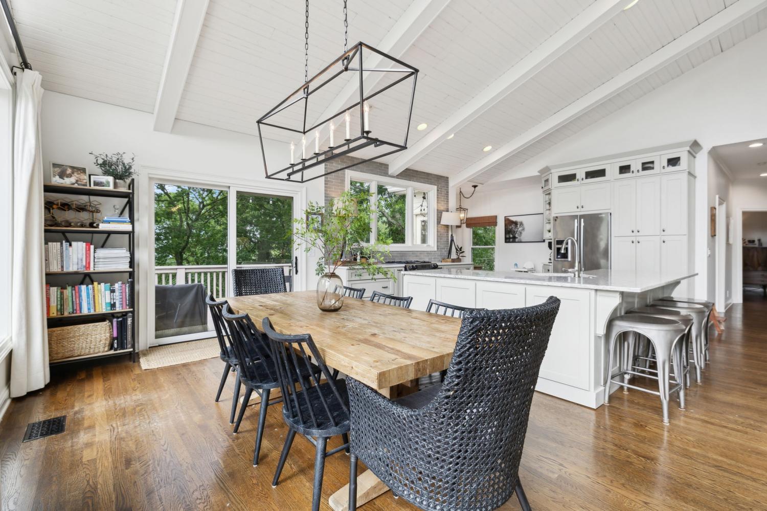 Secluded hideaway with panoramic views in the heart of Brentwood's Willowick neighborhood. This light-filled, open-concept home offers a stunning blend of modern and mountain house charm. The vaulted great room has soaring ceilings, wood beams, and a reclaimed wood fireplace mantle to create a dramatic focal point. Expansive new windows flood the space with natural light and frame the sweeping views. Enjoy the tranquility of nature from the wraparound and covered decks, native butterfly garden and lush surroundings. The walkout lower level serves as a perfect teen or In-Law suite, complete with a spacious rec room, wet bar, shiplap ceilings, bedroom, full bath, and a private covered deck. Additional features include a Nest thermostat and driveway security camera for modern convenience and peace of mind. The private, shaded yard has a custom treehouse and built In Swings that can remain with the home. Enjoy access to I-65, top-rated schools, Cool Springs, Franklin, and Downtown Nashville. List of upgrades and special features attached.