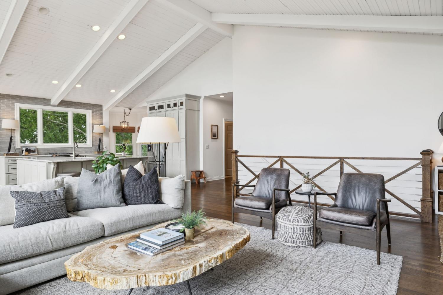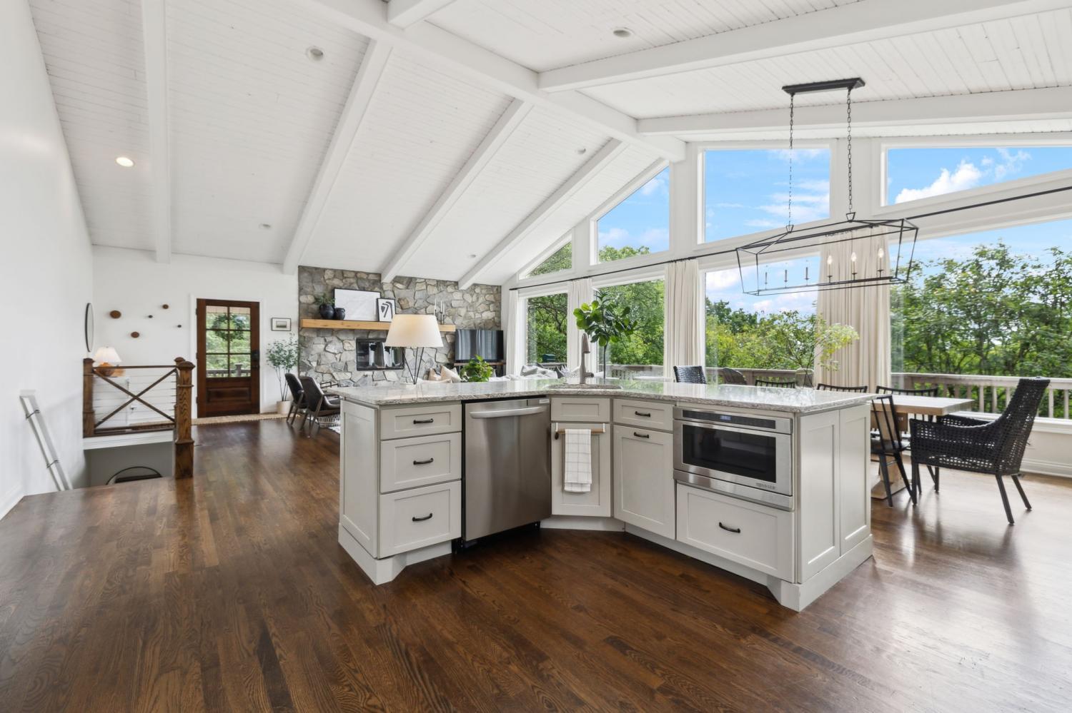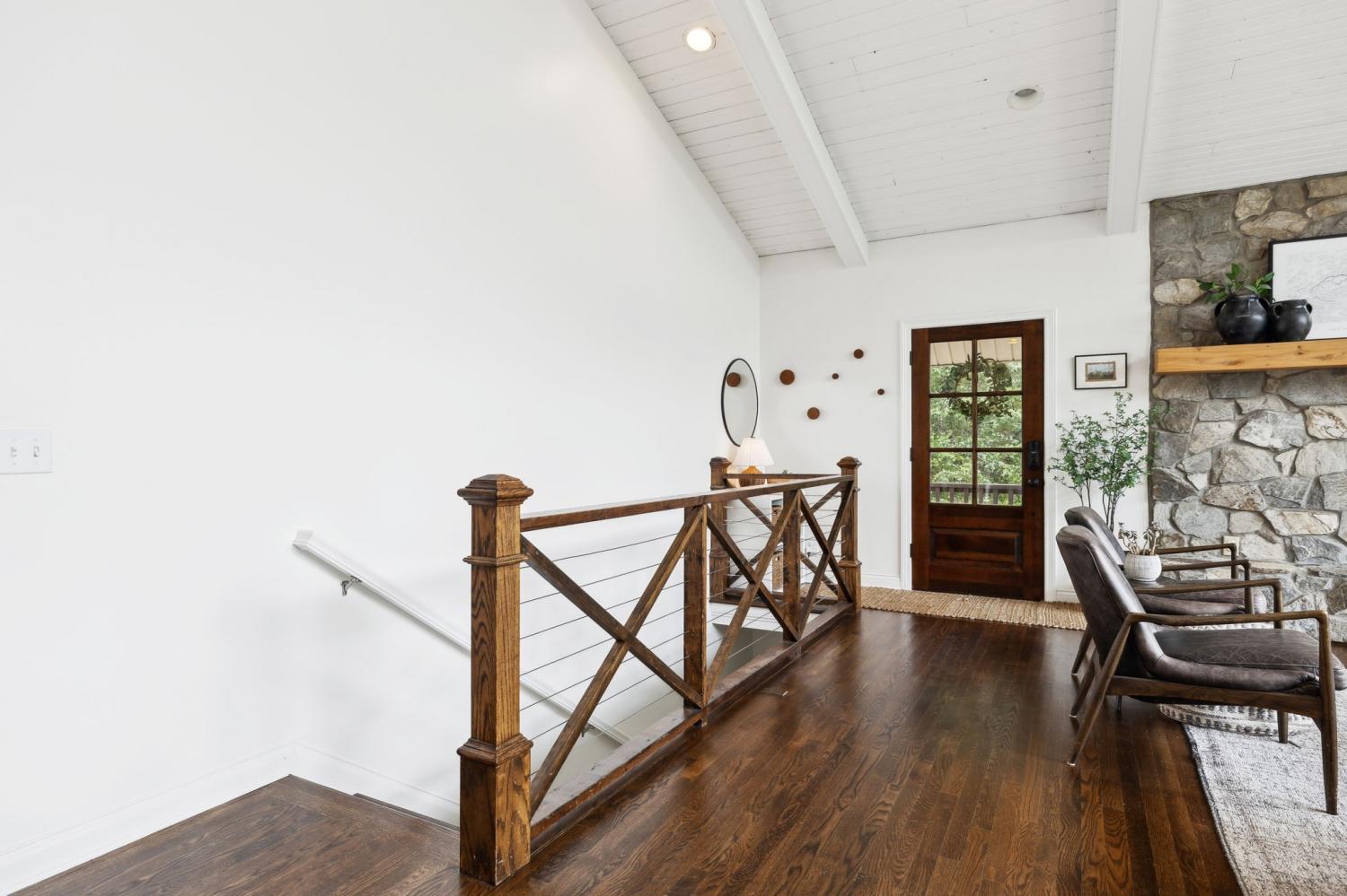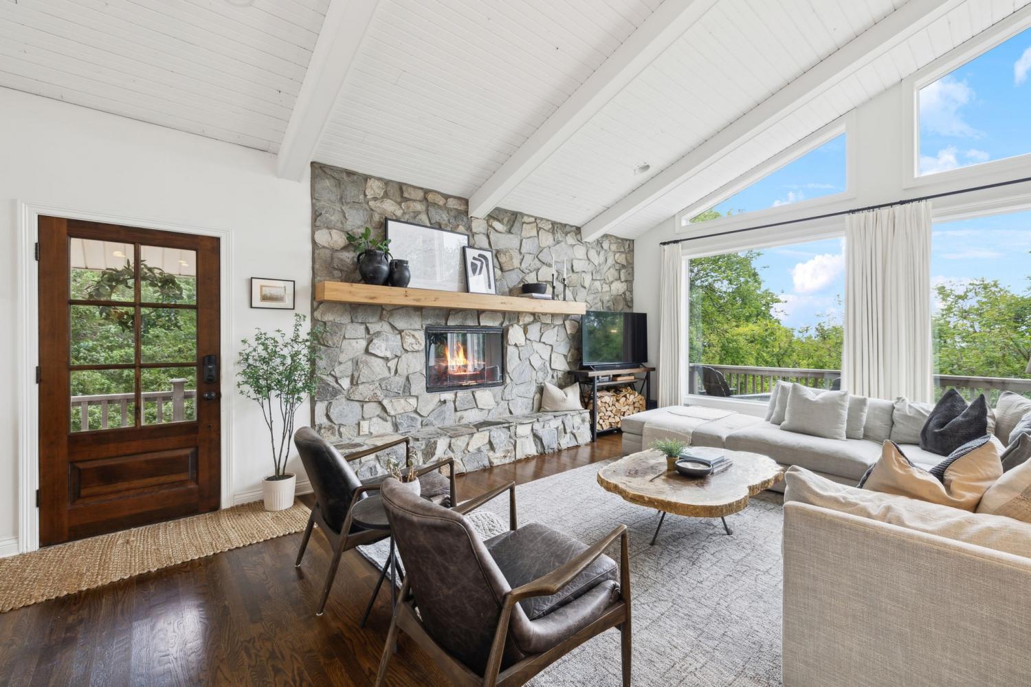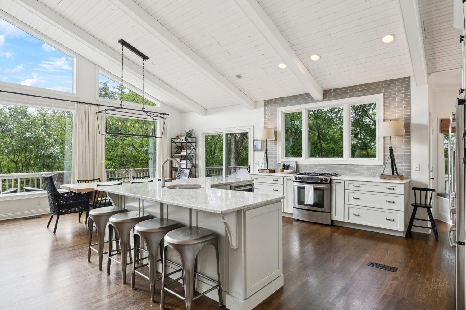 Secluded hideaway with panoramic views in the heart of Brentwood's Willowick neighborhood. This light-filled, open-concept home offers a stunning blend of modern and mountain house charm. The vaulted great room has soaring ceilings, wood beams, and a reclaimed wood fireplace mantle to create a dramatic focal point. Expansive new windows flood the space with natural light and frame the sweeping views. Enjoy the tranquility of nature from the wraparound and covered decks, native butterfly garden and lush surroundings. The walkout lower level serves as a perfect teen or In-Law suite, complete with a spacious rec room, wet bar, shiplap ceilings, bedroom, full bath, and a private covered deck. Additional features include a Nest thermostat and driveway security camera for modern convenience and peace of mind. The private, shaded yard has a custom treehouse and built In Swings that can remain with the home. Enjoy access to I-65, top-rated schools, Cool Springs, Franklin, and Downtown Nashville. List of upgrades and special features attached.