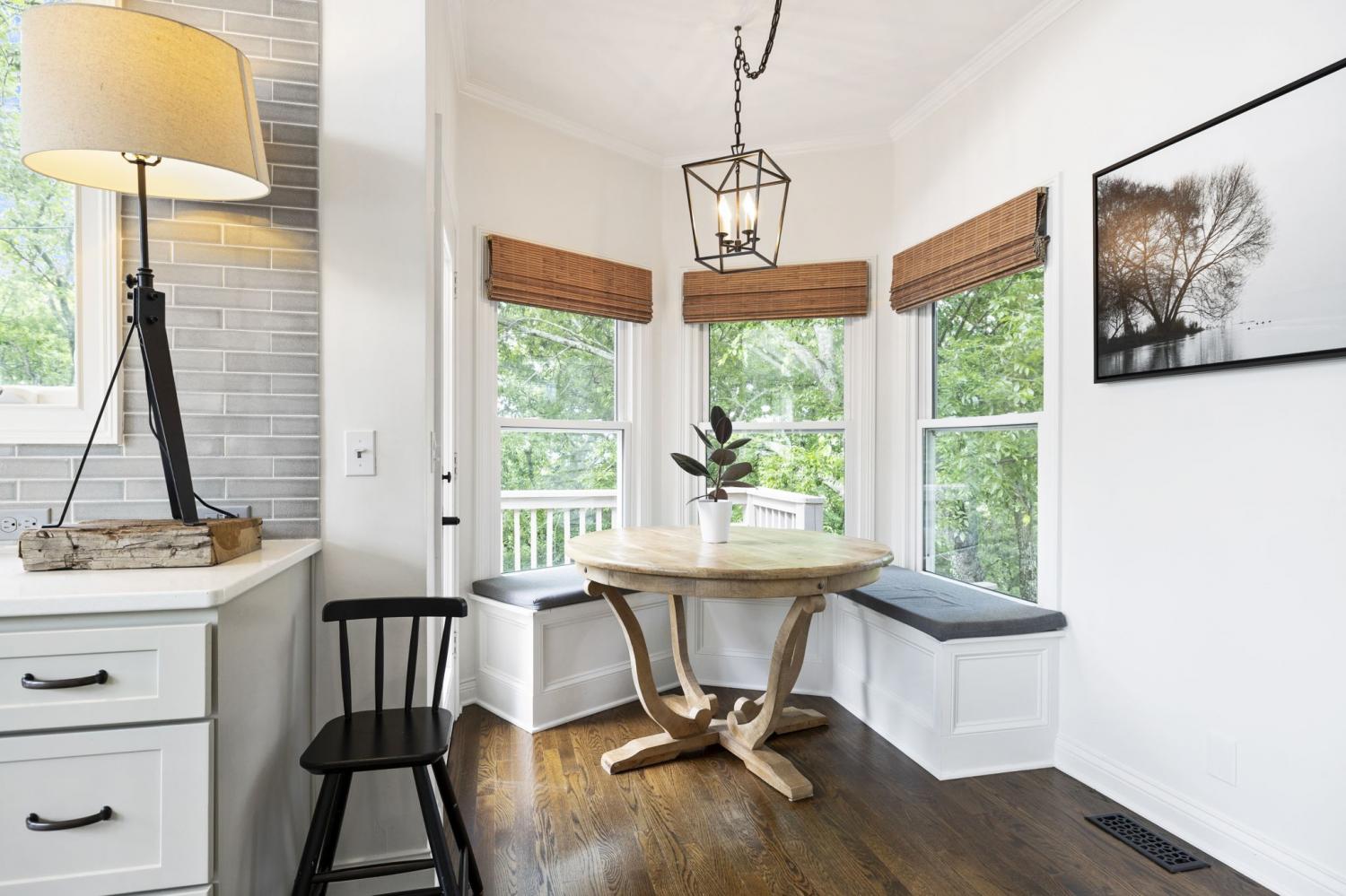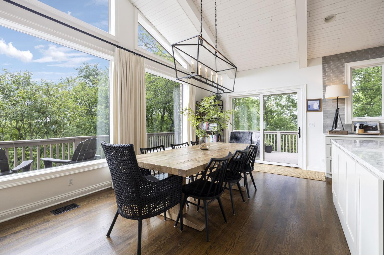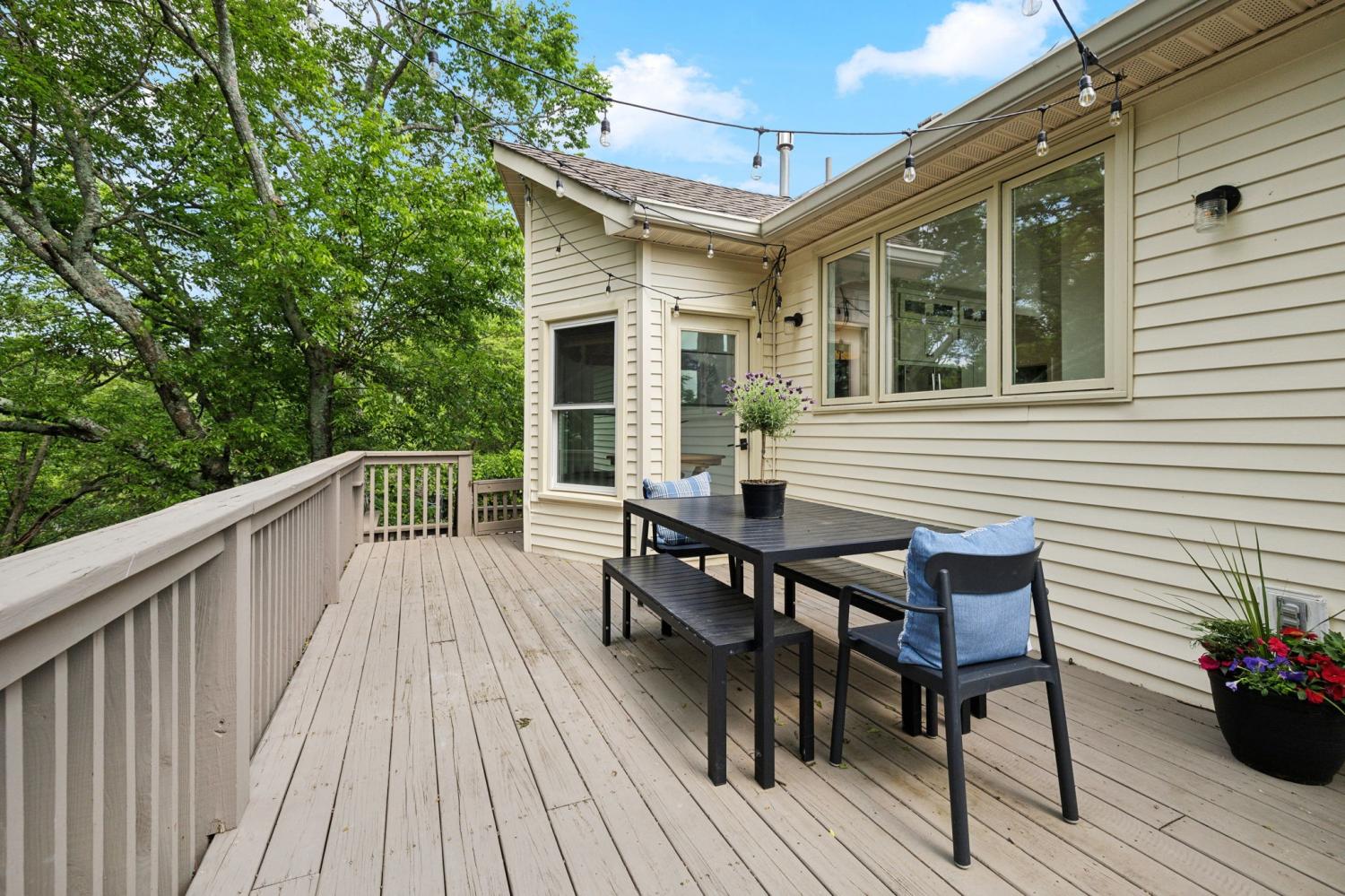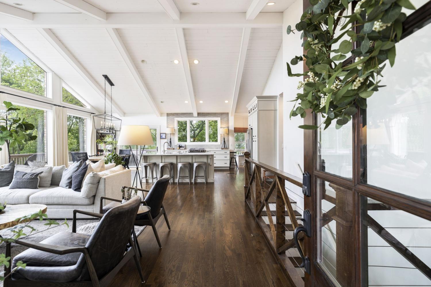 Secluded hideaway with panoramic views in the heart of Brentwood's Willowick neighborhood. This light-filled, open-concept home offers a stunning blend of modern and mountain house charm. The vaulted great room has soaring ceilings, wood beams, and a reclaimed wood fireplace mantle to create a dramatic focal point. Expansive new windows flood the space with natural light and frame the sweeping views. Enjoy the tranquility of nature from the wraparound and covered decks, native butterfly garden and lush surroundings. The walkout lower level serves as a perfect teen or In-Law suite, complete with a spacious rec room, wet bar, shiplap ceilings, bedroom, full bath, and a private covered deck. Additional features include a Nest thermostat and driveway security camera for modern convenience and peace of mind. The private, shaded yard has a custom treehouse and built In Swings that can remain with the home. Enjoy access to I-65, top-rated schools, Cool Springs, Franklin, and Downtown Nashville. List of upgrades and special features attached.