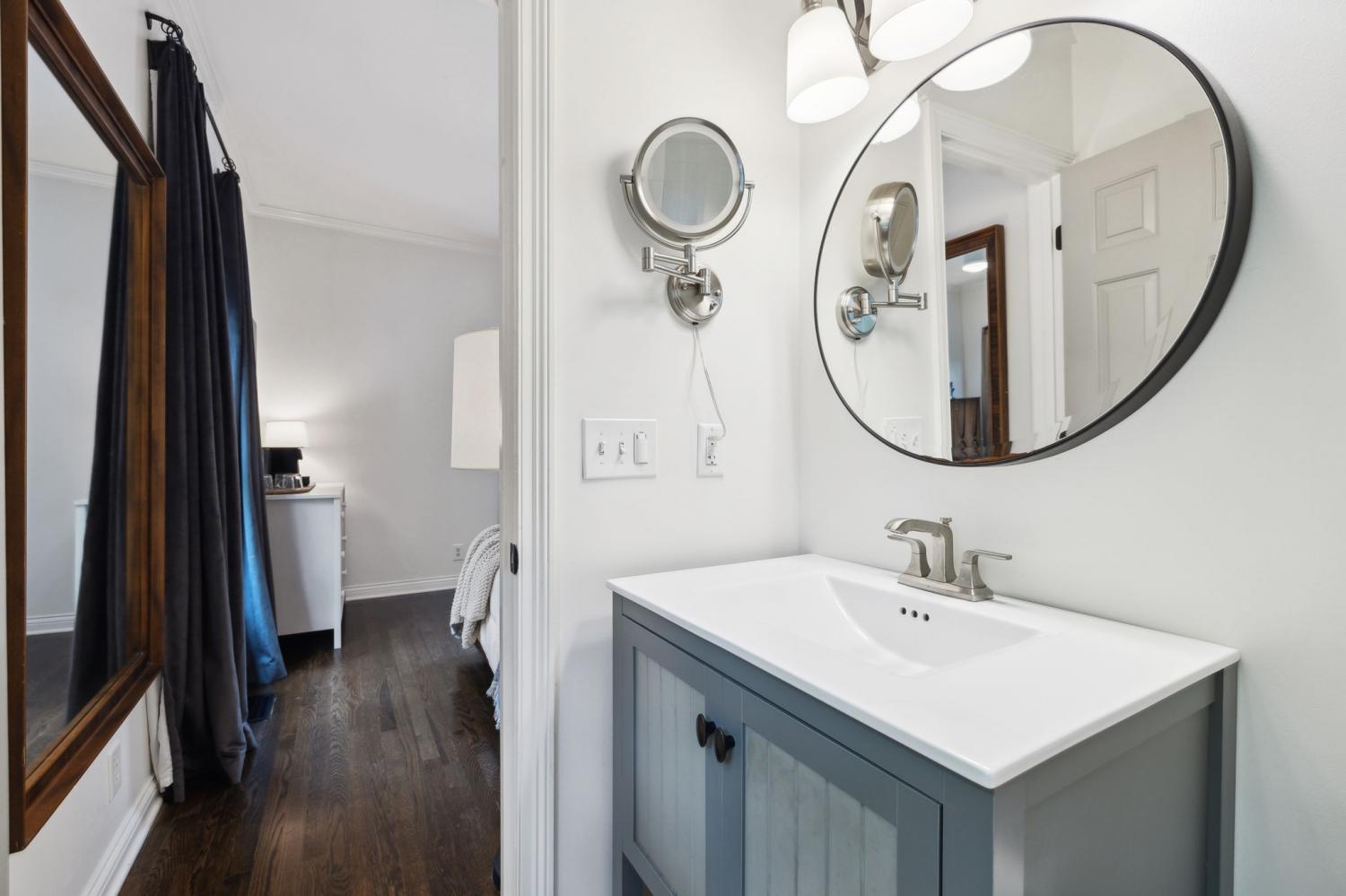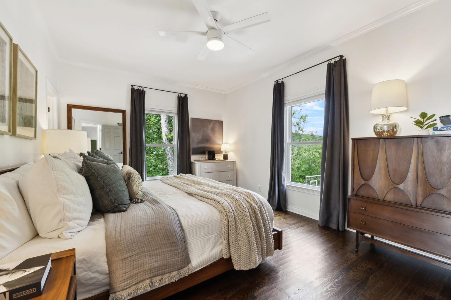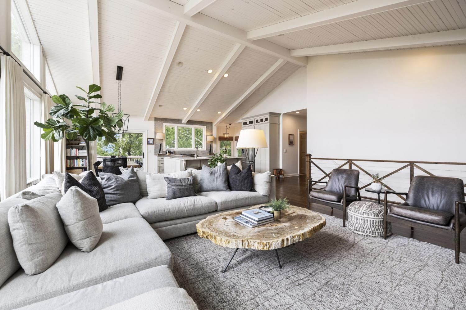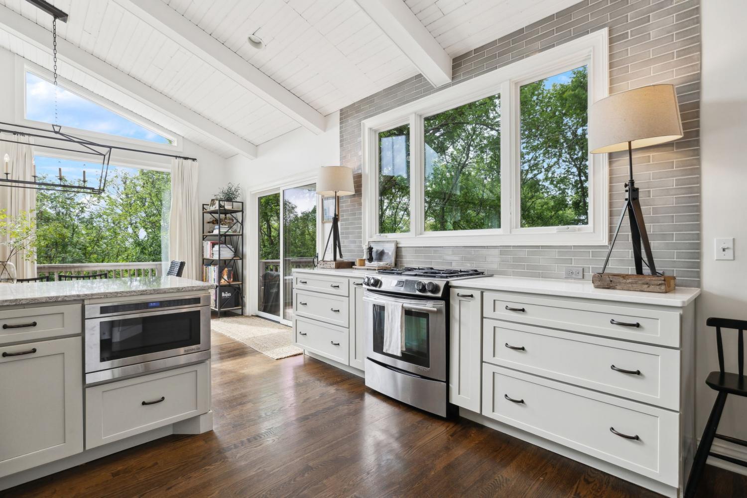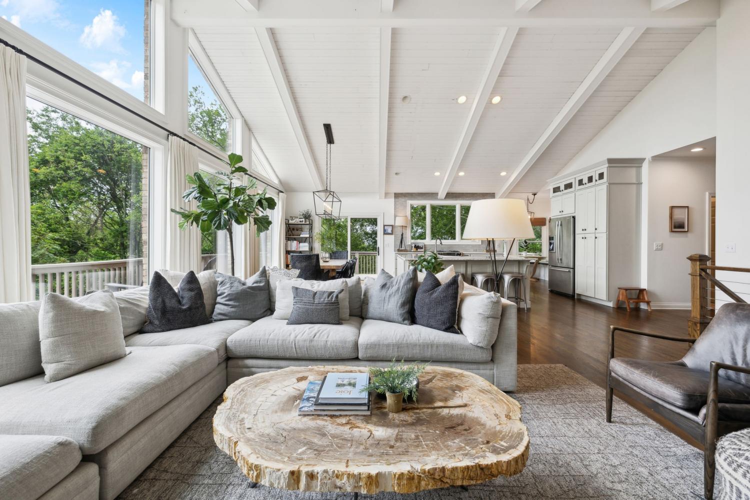 Secluded hideaway with panoramic views in the heart of Brentwood's Willowick neighborhood. This light-filled, open-concept home offers a stunning blend of modern and mountain house charm. The vaulted great room has soaring ceilings, wood beams, and a reclaimed wood fireplace mantle to create a dramatic focal point. Expansive new windows flood the space with natural light and frame the sweeping views. Enjoy the tranquility of nature from the wraparound and covered decks, native butterfly garden and lush surroundings. The walkout lower level serves as a perfect teen or In-Law suite, complete with a spacious rec room, wet bar, shiplap ceilings, bedroom, full bath, and a private covered deck. Additional features include a Nest thermostat and driveway security camera for modern convenience and peace of mind. The private, shaded yard has a custom treehouse and built In Swings that can remain with the home. Enjoy access to I-65, top-rated schools, Cool Springs, Franklin, and Downtown Nashville. List of upgrades and special features attached.