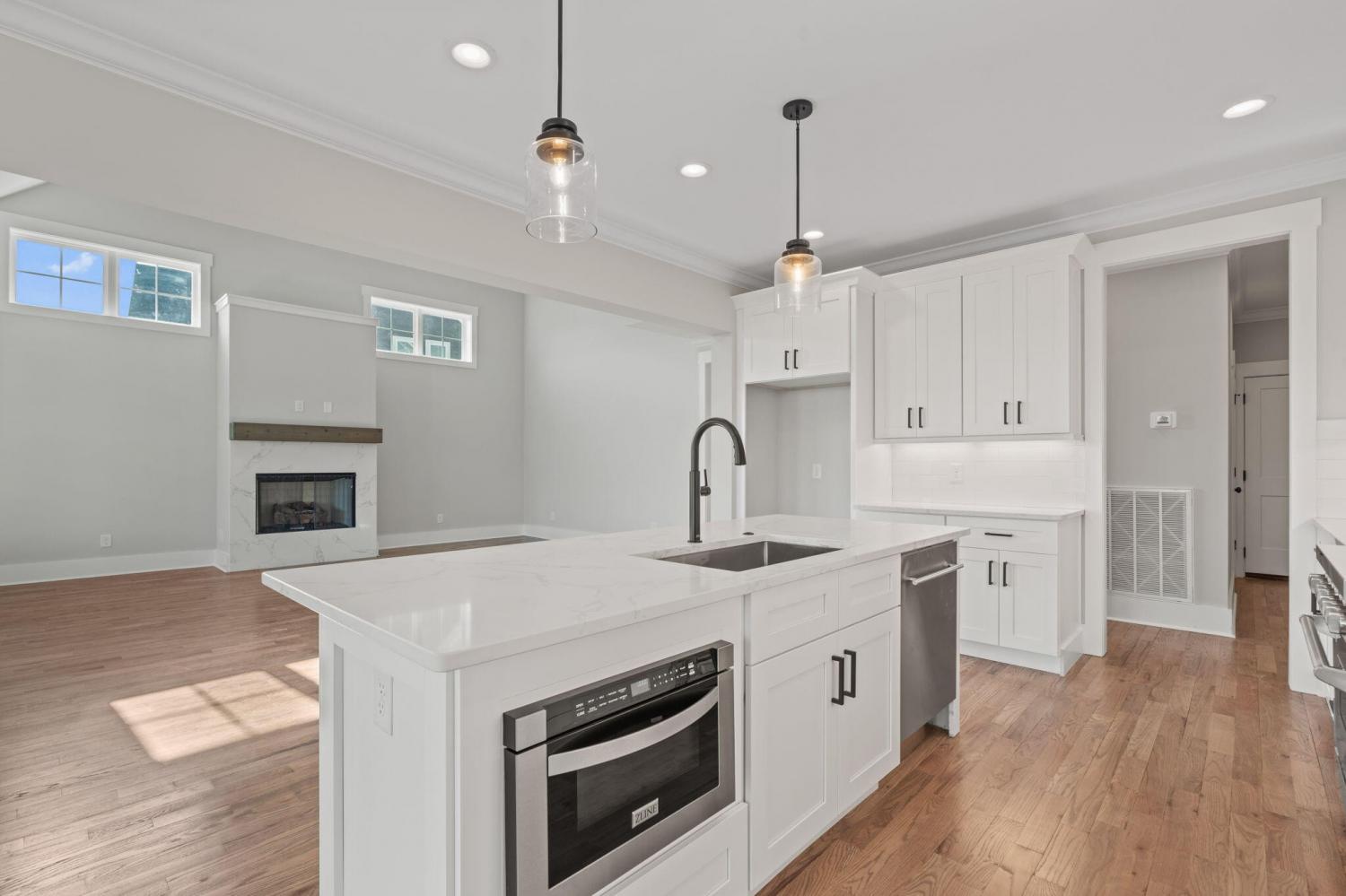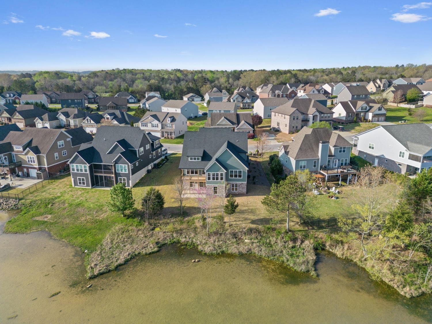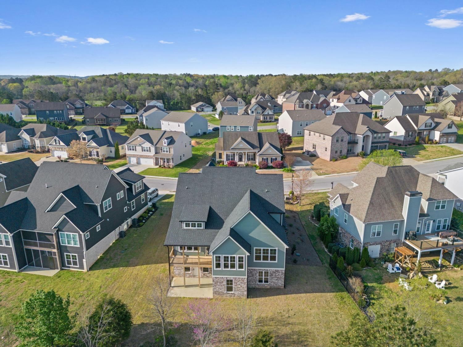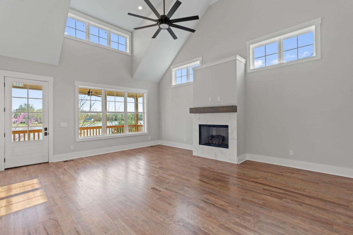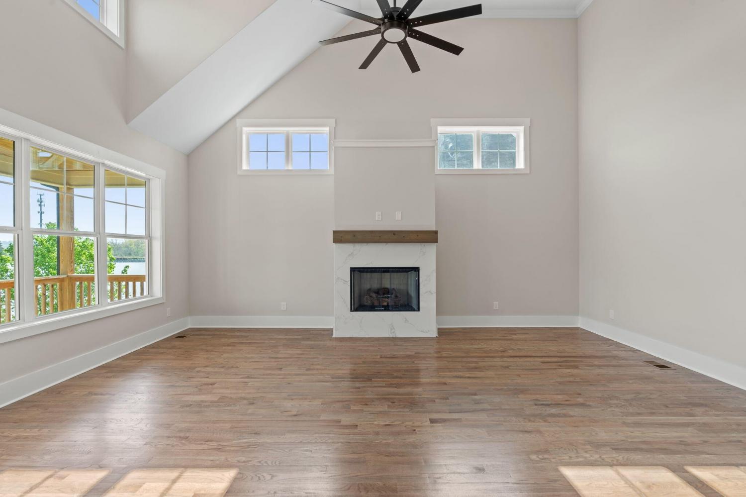 Up to $15,000 Builder Incentive! This brand-new home, the Pershing, overlooks a private, 15 acre lake in the heart of Fort Oglethorpe, a popular North Georgia community (20 minutes to Chattanooga) known for its historical significance in the Civil War. Measuring 3,819 square feet, this 5 Bedroom, 4.5 Bath home includes a finished Bonus Room plus a full, Unfinished Basement with poured concrete foundation walls and pre-plumbed for future finishing. With 2,249 square feet on the MAIN level, this sprawling home plan with a neutral color palette features both a Master Suite and Guest Suite with full bath (perfect for an in-law suite, nursery, or office/study) on the main level. The Pershing is an open concept living plan with a spacious combined living area comprised of a Great Room, Dining, and Kitchen. Abundant windows provide natural light and lake views throughout the living area and Master Suite. An expansive covered porch with v-groove wood ceiling is perfect for outdoor entertaining and taking in the lake views. The well-appointed Kitchen includes a spacious work island with sink, quartz countertops, tiled backsplash, pot filler, stainless appliances inclusive of a 6-burner gas range, microwave drawer, and integrated dishwasher. Just around the corner from the Kitchen is a walk-in pantry and impressive Laundry Room with cabinetry, quartz countertops, and utility sink. The UPPER level measures 1,570 square feet and features 3 additional Bedrooms (one with ensuite Bath), a full Bath, and Bonus Room. Finishes throughout this home are on point with real hardwood floors, abundant base and crown moldings, quartz countertops, custom closet shelving, quality cabinetry, ample closets, tankless gas water heater, stainless appliances, tankless gas water heater, gas log fireplace with quartz surround and more! The low maintenance exterior includes brick, fiber cement siding and stone accents.