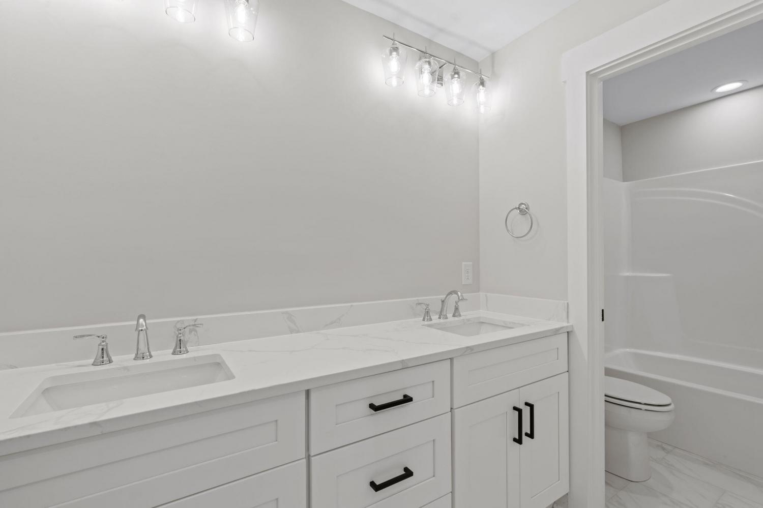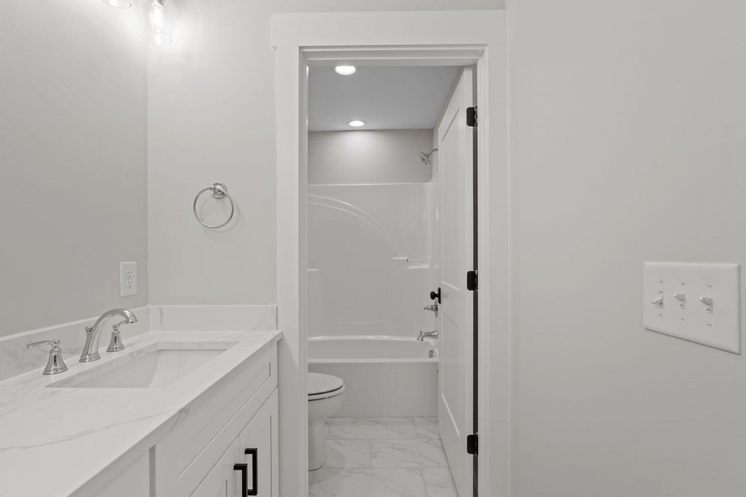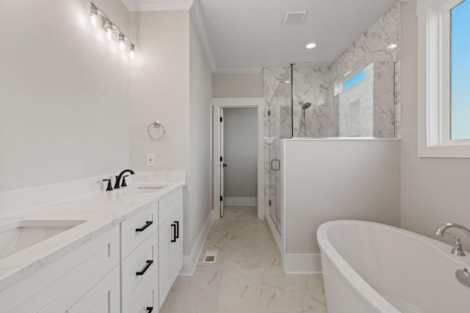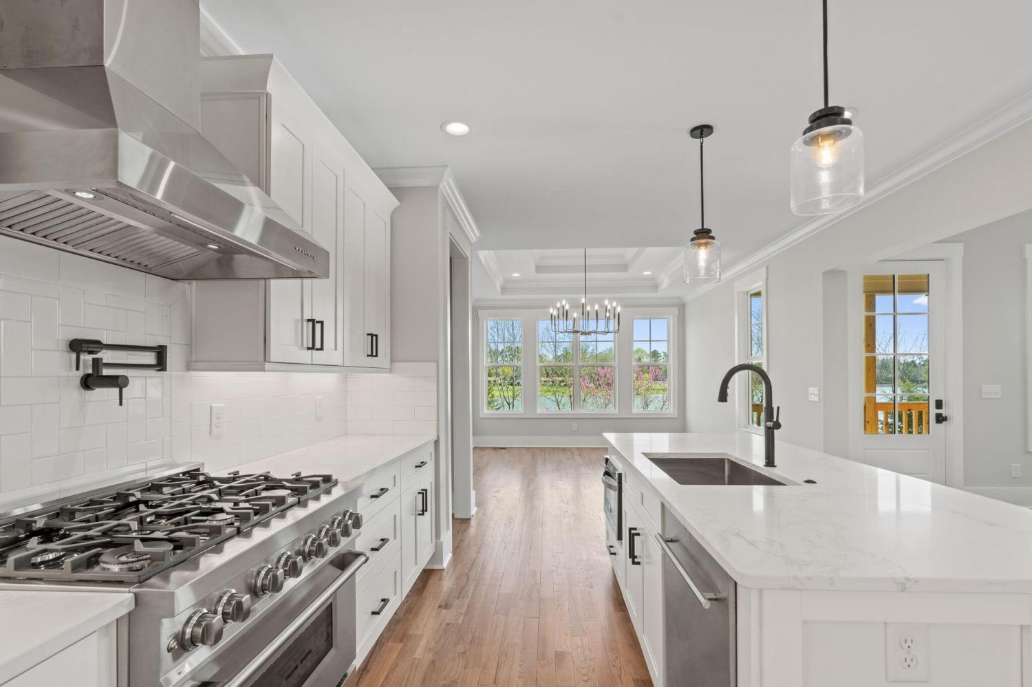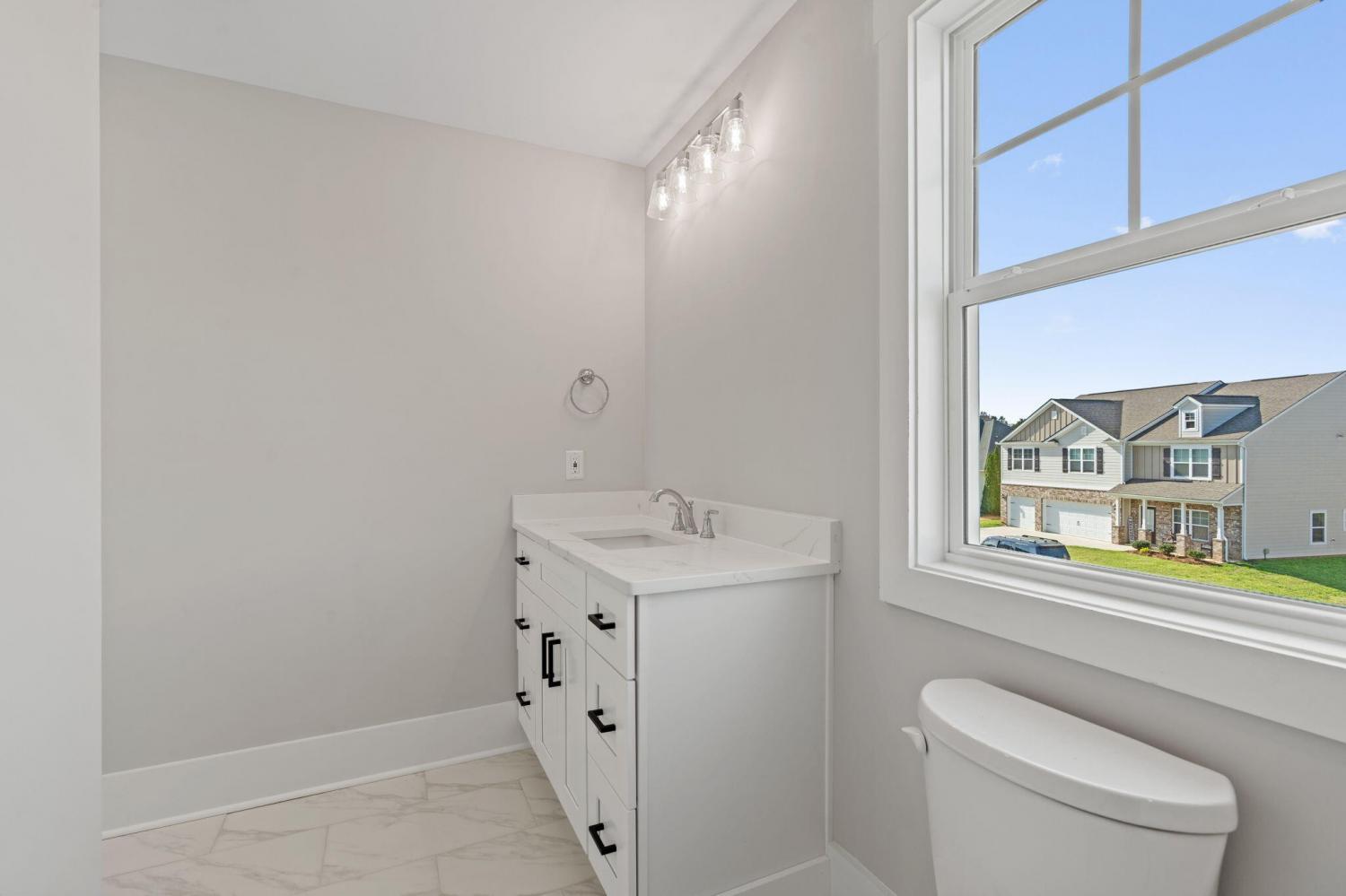 Up to $15,000 Builder Incentive! This brand-new home, the Pershing, overlooks a private, 15 acre lake in the heart of Fort Oglethorpe, a popular North Georgia community (20 minutes to Chattanooga) known for its historical significance in the Civil War. Measuring 3,819 square feet, this 5 Bedroom, 4.5 Bath home includes a finished Bonus Room plus a full, Unfinished Basement with poured concrete foundation walls and pre-plumbed for future finishing. With 2,249 square feet on the MAIN level, this sprawling home plan with a neutral color palette features both a Master Suite and Guest Suite with full bath (perfect for an in-law suite, nursery, or office/study) on the main level. The Pershing is an open concept living plan with a spacious combined living area comprised of a Great Room, Dining, and Kitchen. Abundant windows provide natural light and lake views throughout the living area and Master Suite. An expansive covered porch with v-groove wood ceiling is perfect for outdoor entertaining and taking in the lake views. The well-appointed Kitchen includes a spacious work island with sink, quartz countertops, tiled backsplash, pot filler, stainless appliances inclusive of a 6-burner gas range, microwave drawer, and integrated dishwasher. Just around the corner from the Kitchen is a walk-in pantry and impressive Laundry Room with cabinetry, quartz countertops, and utility sink. The UPPER level measures 1,570 square feet and features 3 additional Bedrooms (one with ensuite Bath), a full Bath, and Bonus Room. Finishes throughout this home are on point with real hardwood floors, abundant base and crown moldings, quartz countertops, custom closet shelving, quality cabinetry, ample closets, tankless gas water heater, stainless appliances, tankless gas water heater, gas log fireplace with quartz surround and more! The low maintenance exterior includes brick, fiber cement siding and stone accents.