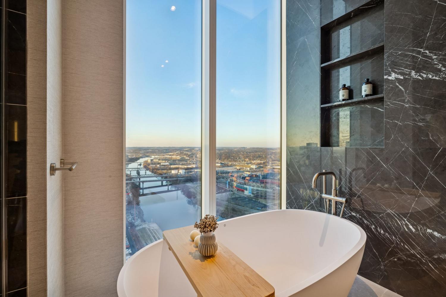 Step into the epitome of luxury Penthouse living inside the exclusive Four Seasons Private Residences. Perched atop the 39th floor, this prestigious penthouse spans approximately 4517SF. Boasting 3 bedrooms and 4.5 bathrooms, this meticulously designed penthouse offers an unparalleled living experience. Feel the pinnacle of modern living with a curated technology package allowing for automated control of the residence, along with motorized shades for added comfort and convenience. Revel in the bespoke touches throughout, including custom cabinetry by LA Closets, a handcrafted bunk bed design for a unique bunk room experience, Miele kitchen appliances for culinary endeavors, and a curated collection of artwork adorning the walls. The lights of downtown Nashville put on a show every night, offering captivating panoramic views right outside your window toward the iconic Batman building. This residence is being sold furnished with luxury finishes and thoughtful design, every corner exuding sophistication and style. Experience unparalleled luxury and convenience at the Four Seasons Private Residences,where exclusive owner amenities redefine sophistication.Enjoy personalized attention from the concierge via a direct concierge phone.Benefit from 24/7 doorman and valet services, including 3 valet parking spaces. Resident amenities include the private outdoor park,spacious residents' lounge,pet salon,media room, and first class gym room with river views. Residents enjoy the Four Seasons Spa and outdoor pool and hot tub via direct access on the 7th floor. This residence also conveys a storage unit,accessible with the penthouse key fob to ensure belongings are safe and easily reachable.Please contact me to schedule your private showing.