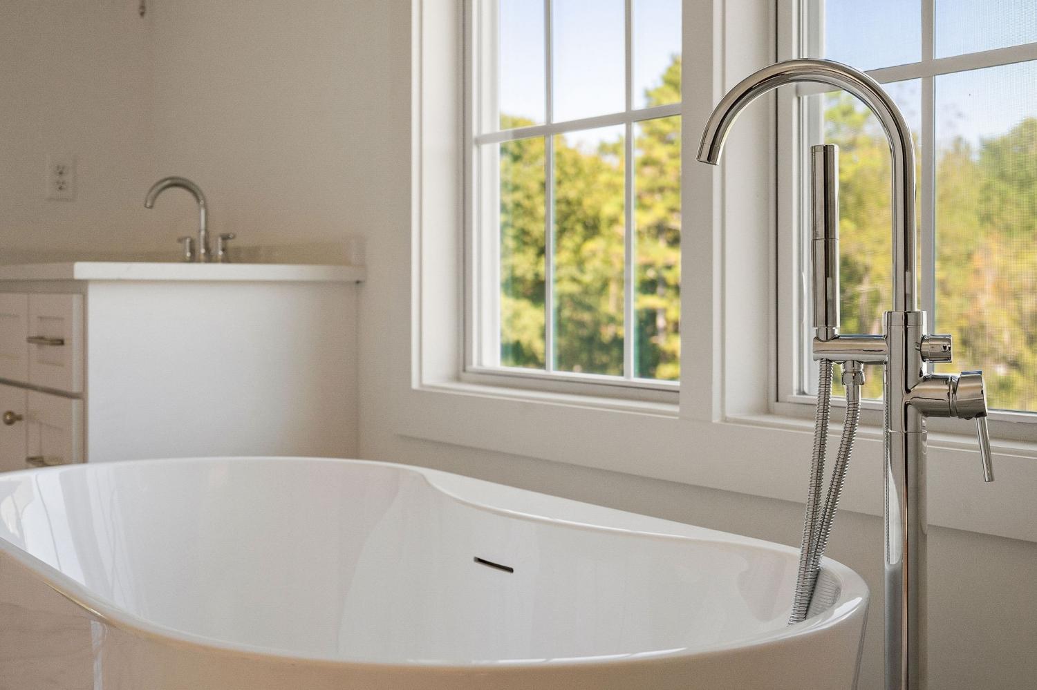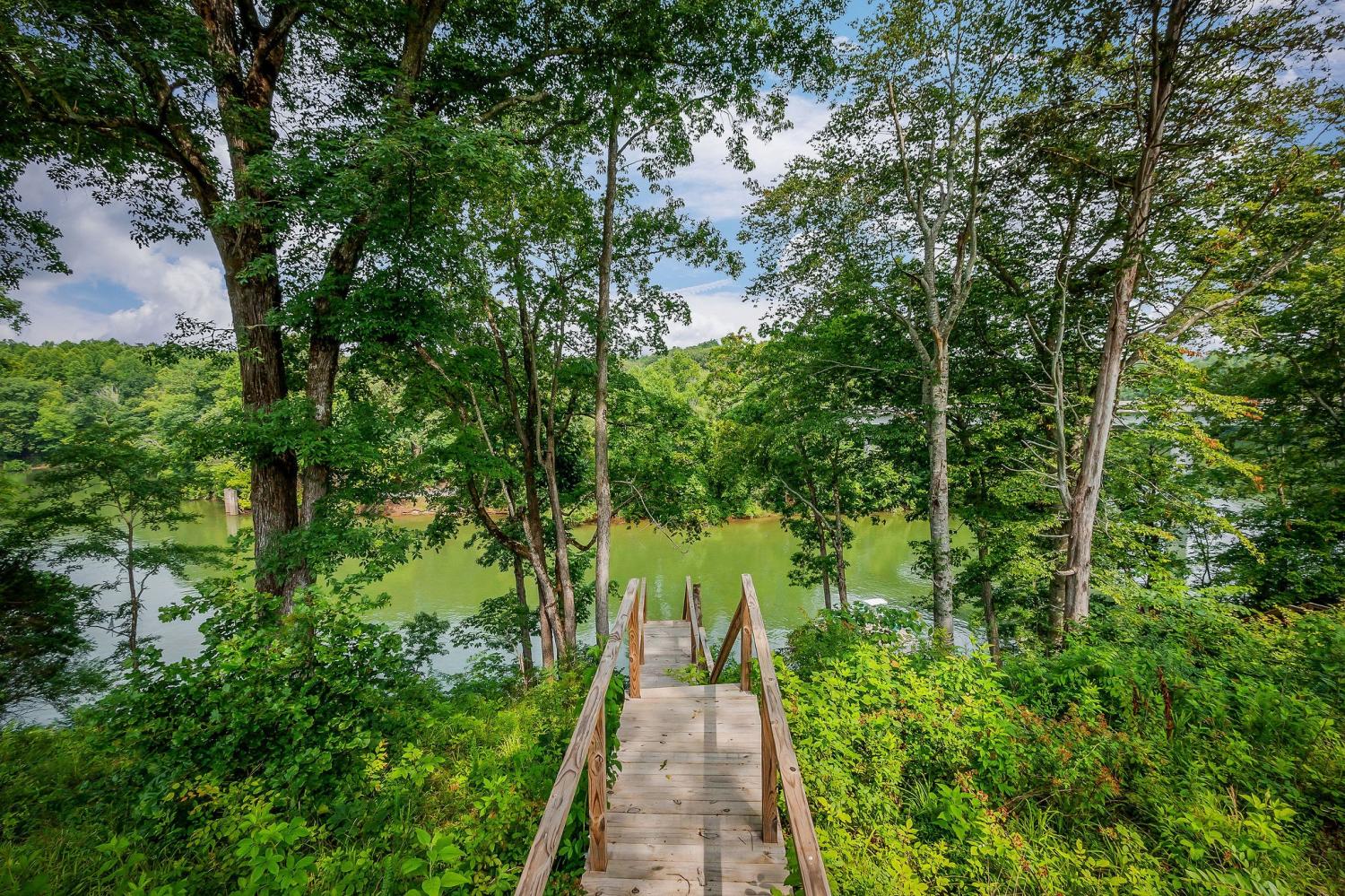 MEET US AT THE RIVER! Rock Island Retreat Style Waterfront Living embracing both water access at your back door and mountain views at your front door! 100+ ft. of water frontage (private dock eligible and steps to water installed), spacious floor plan with entertainer's concept, primary suite on main level, kitchen and dining with walk-in panty and beverage area, and inviting family room with two-story ceiling and stone fireplace. 10 ft. ceilings throughout, large bedrooms at second level with oversized bonus room and/or bunk space, + additional hobby/flex room or use as bedroom if desired. Drop zone garage entrance and laundry room, 2-car attached garage, and covered porches (rear porch with fireplace). SHORT TERM RENTALS PERMITTED and NO HOA. Move in ready for your summer 2025 fun!