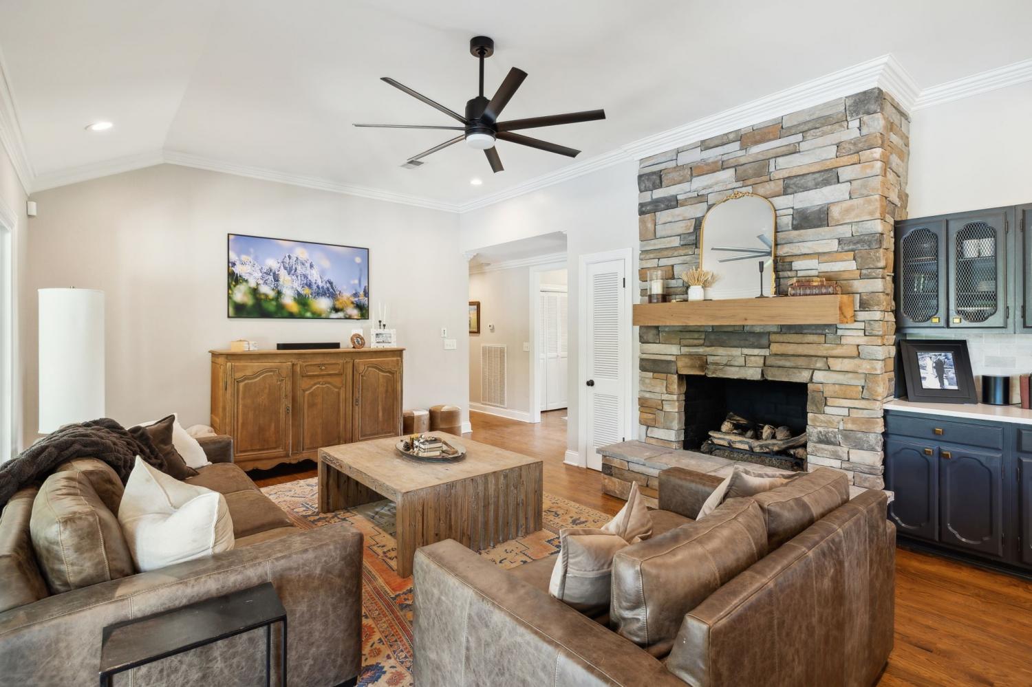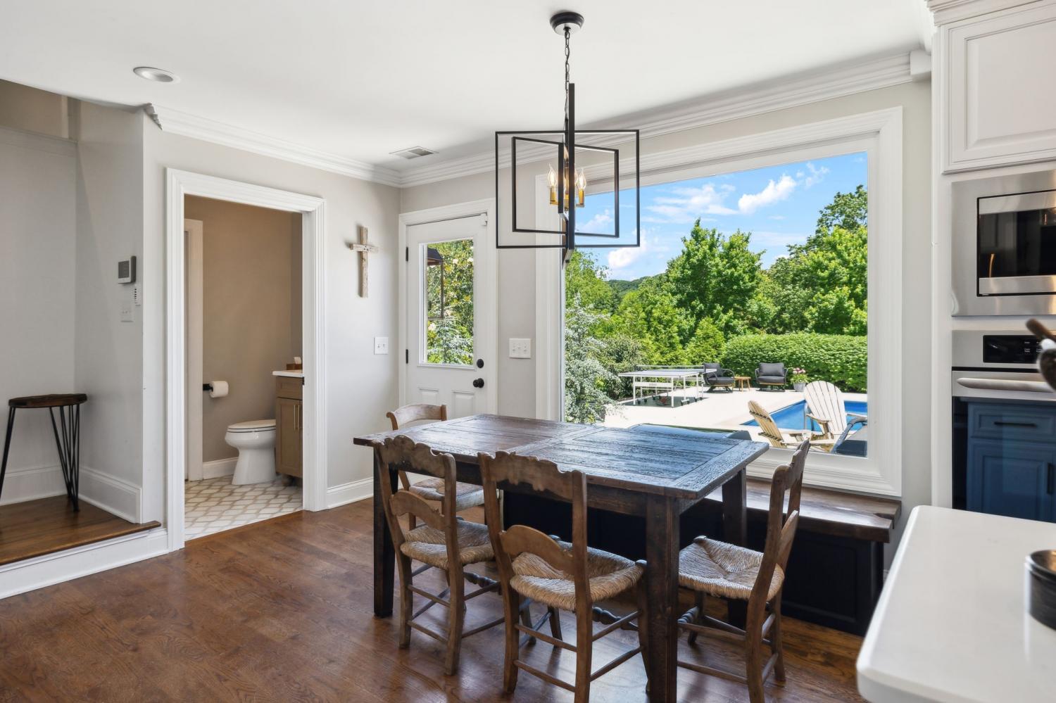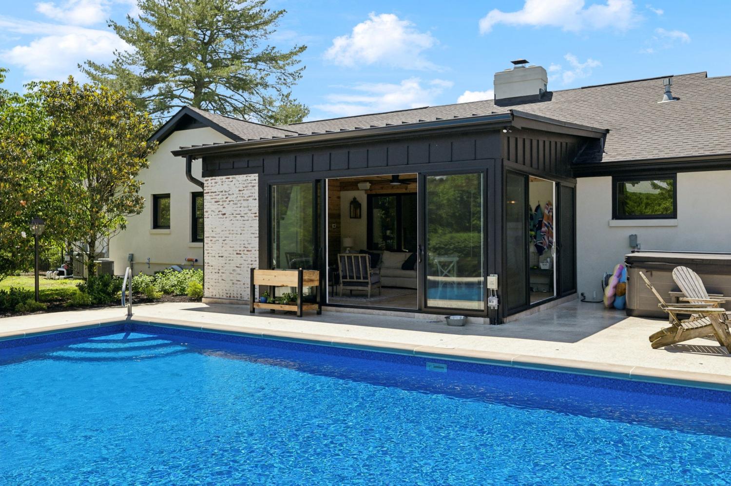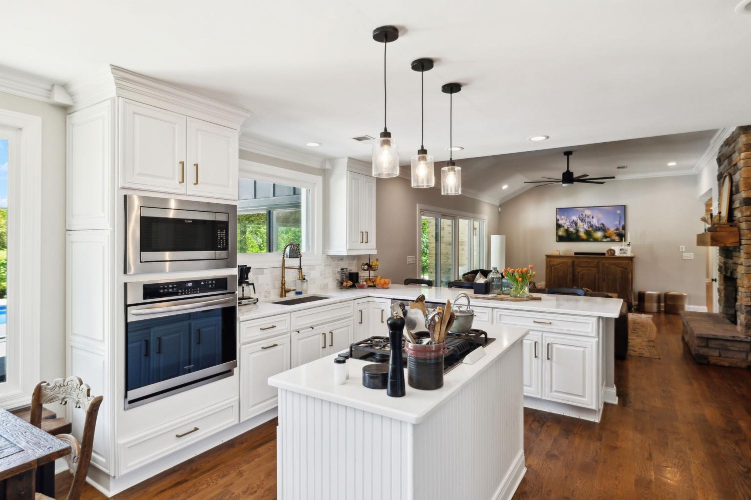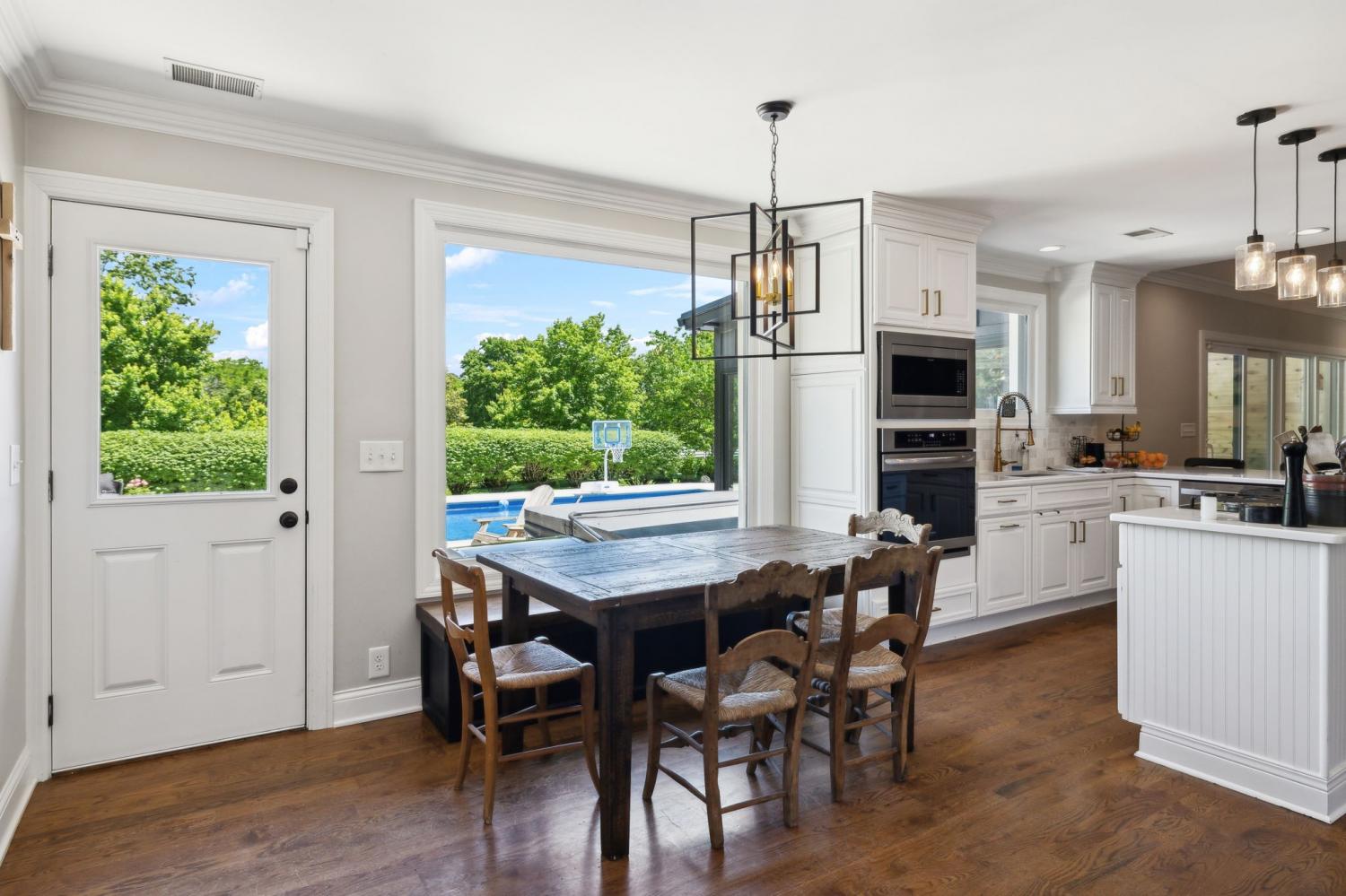 Located in a peaceful neighborhood just minutes from Warner Parks and Cheekwood, this stunning 4-bedroom, 3.5-bath ranch-style home blends comfort, style, and functionality. Situated on a flat, one-acre lot, the property features a fenced backyard with a resurfaced saltwater pool and deck (2024), plus a newly added 320 sq. ft. Four Seasons room with cedar ceiling and a cozy gas fireplace—perfect for year-round enjoyment. New sport court concrete pad recently added for pickle ball or basketball! Offering a total of 3,807 sq. ft., the home boasts a spacious family room with gas fireplace that flows seamlessly into the updated kitchen, complete with new appliances, lighting, backsplash, and countertops. The newly renovated primary suite bathroom includes a soaking tub and separate shower. Hardwood floors run throughout the main level. Upstairs, you'll find a versatile bonus/media room, ideal for entertainment or additional living space. The attached two-car garage features epoxy flooring, and the home's curb appeal is enhanced with newly installed copper gas lanterns, new exterior doors, and fresh stucco over brick. Located in desirable Williamson County, this home is zoned for award-winning Grassland Elementary, Grassland Middle, and Franklin High School. No HOA.