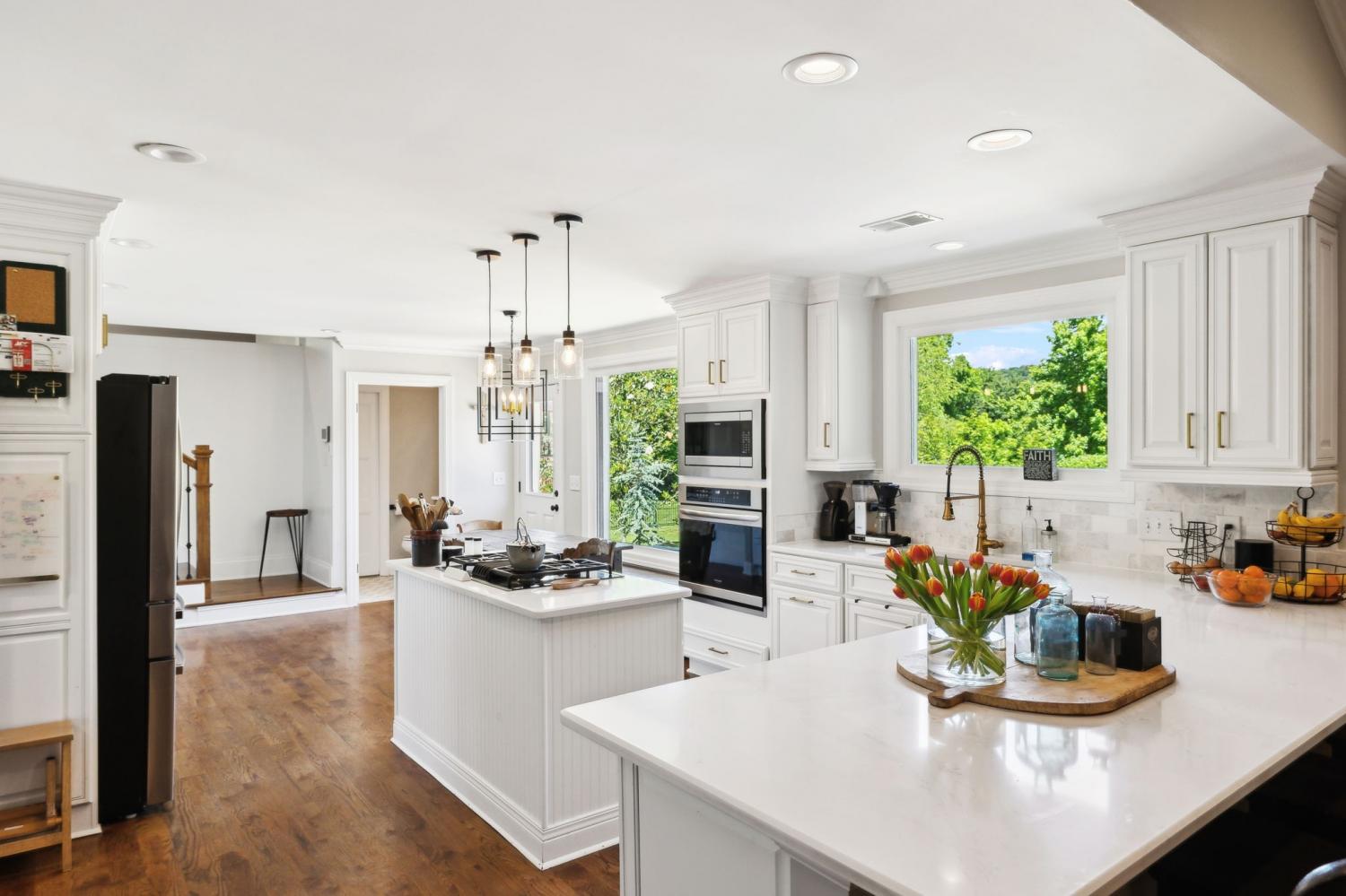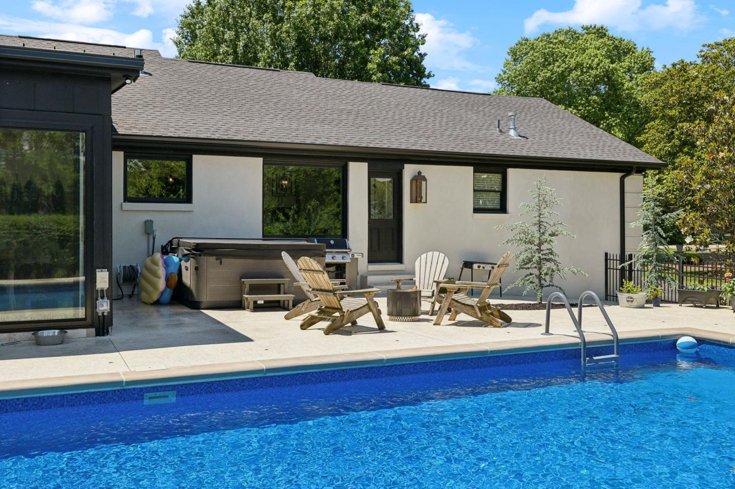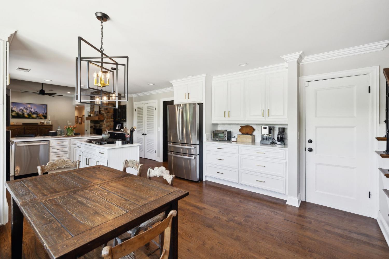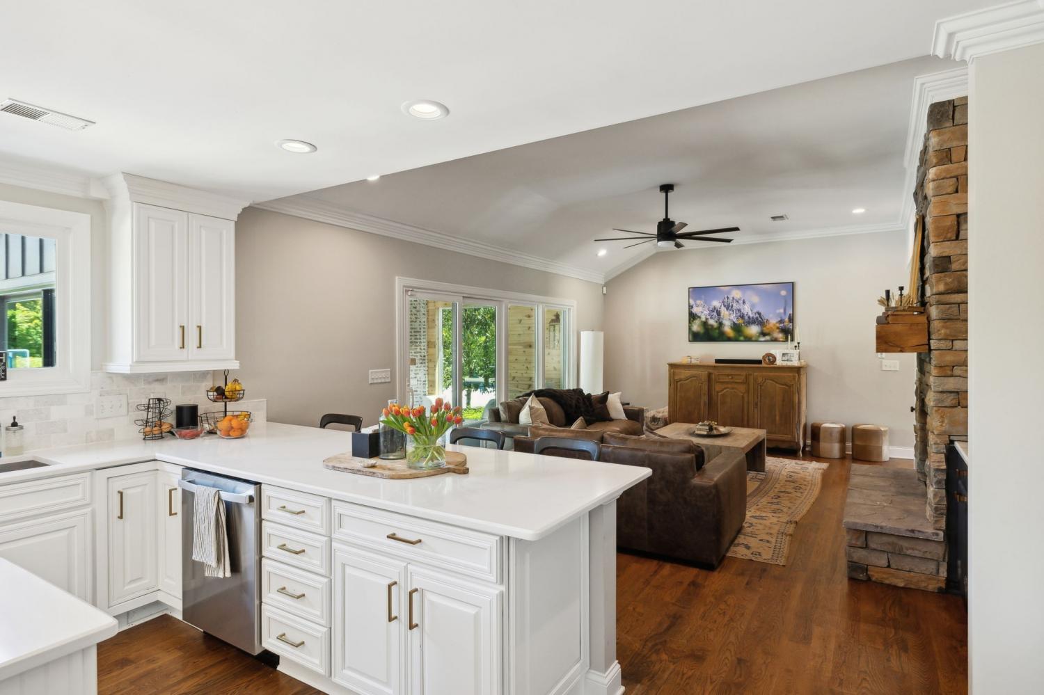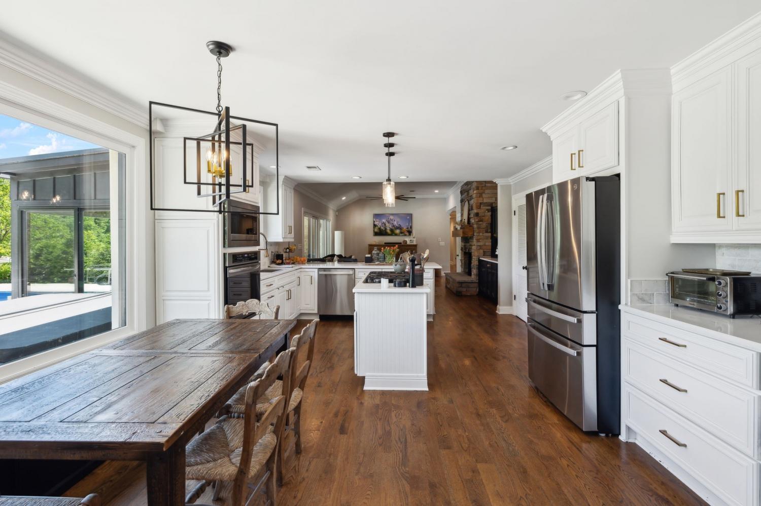 Located in a peaceful neighborhood just minutes from Warner Parks and Cheekwood, this stunning 4-bedroom, 3.5-bath ranch-style home blends comfort, style, and functionality. Situated on a flat, one-acre lot, the property features a fenced backyard with a resurfaced saltwater pool and deck (2024), plus a newly added 320 sq. ft. Four Seasons room with cedar ceiling and a cozy gas fireplace—perfect for year-round enjoyment. New sport court concrete pad recently added for pickle ball or basketball! Offering a total of 3,807 sq. ft., the home boasts a spacious family room with gas fireplace that flows seamlessly into the updated kitchen, complete with new appliances, lighting, backsplash, and countertops. The newly renovated primary suite bathroom includes a soaking tub and separate shower. Hardwood floors run throughout the main level. Upstairs, you'll find a versatile bonus/media room, ideal for entertainment or additional living space. The attached two-car garage features epoxy flooring, and the home's curb appeal is enhanced with newly installed copper gas lanterns, new exterior doors, and fresh stucco over brick. Located in desirable Williamson County, this home is zoned for award-winning Grassland Elementary, Grassland Middle, and Franklin High School. No HOA.