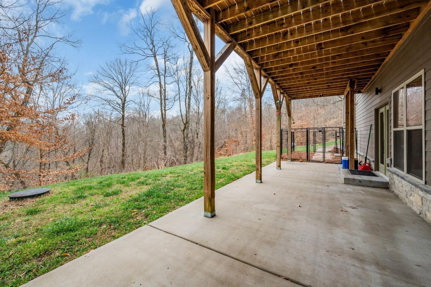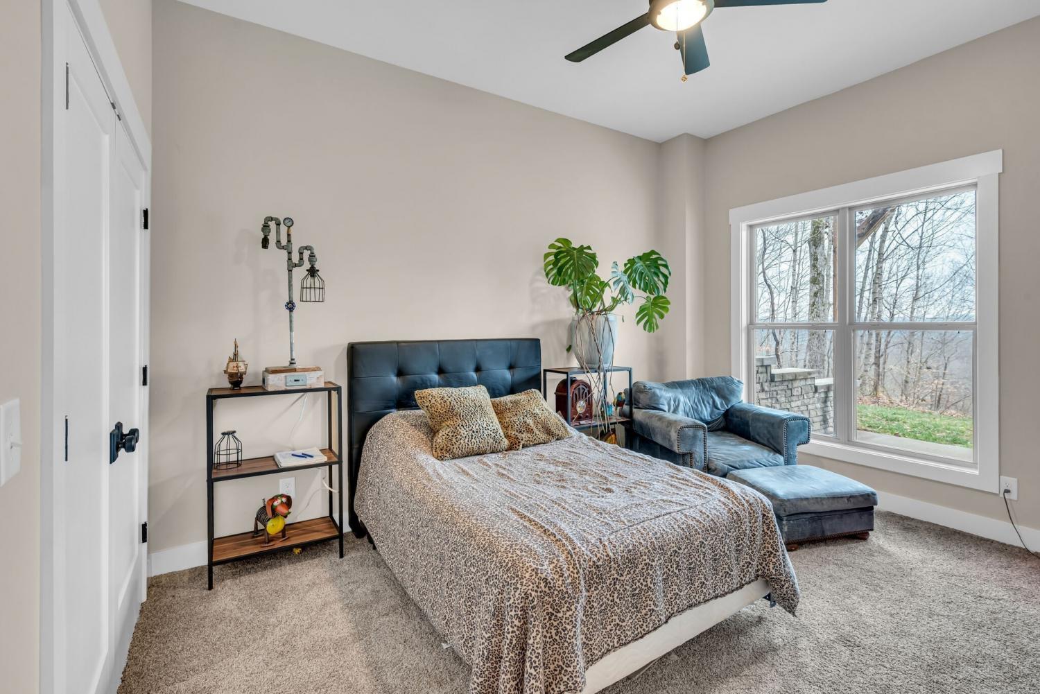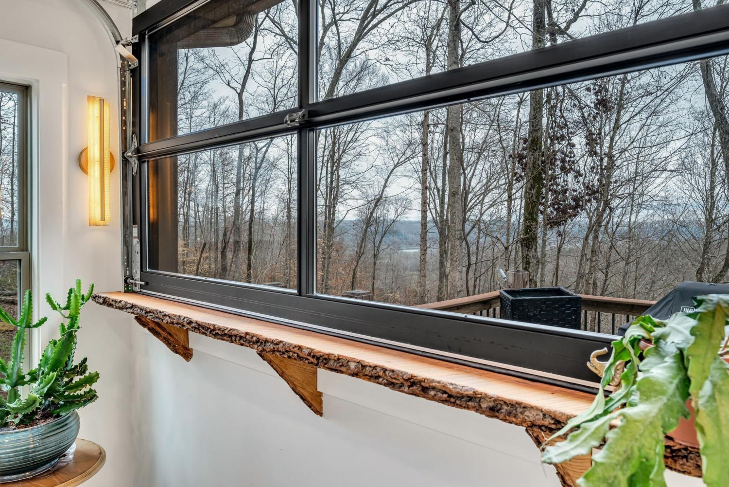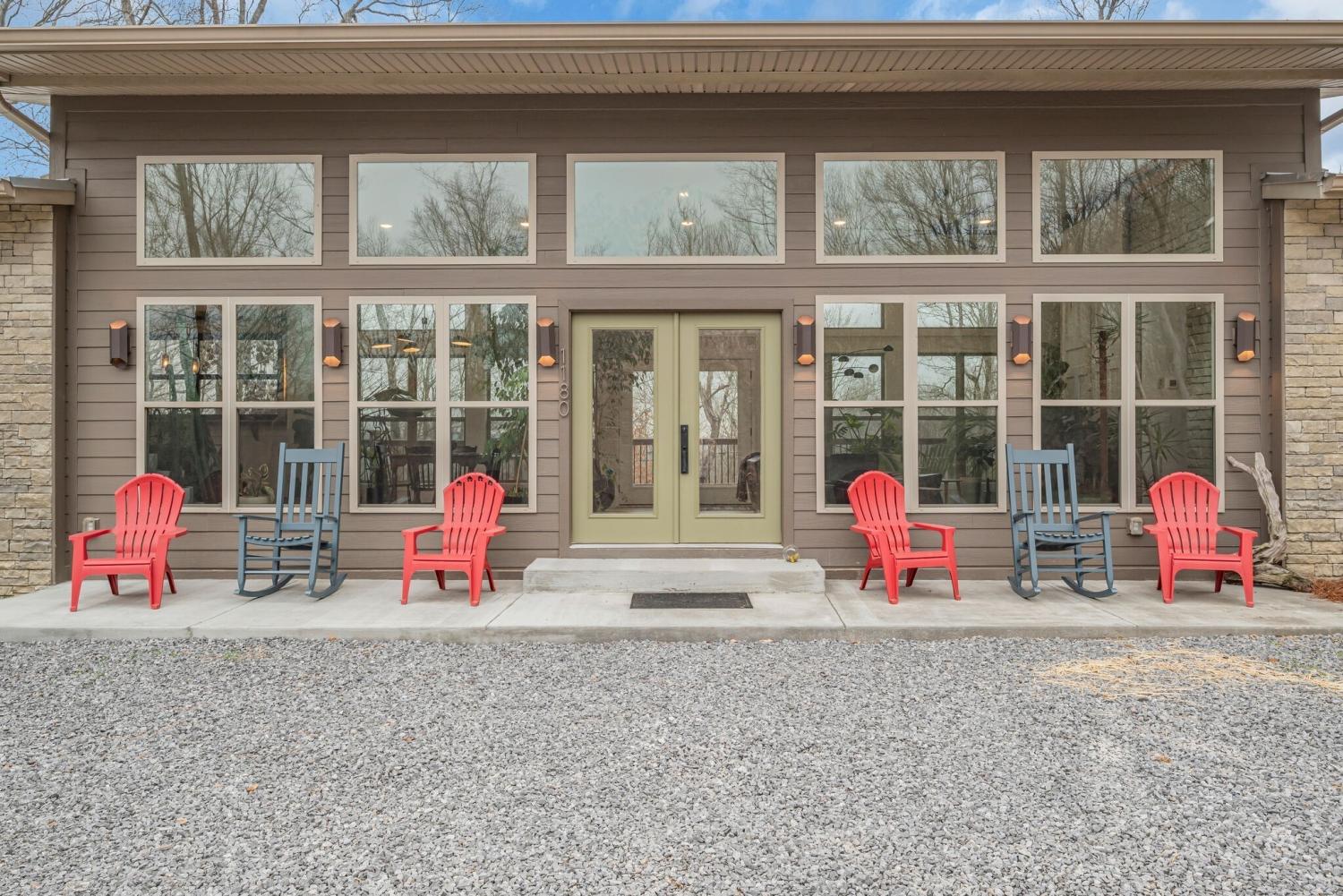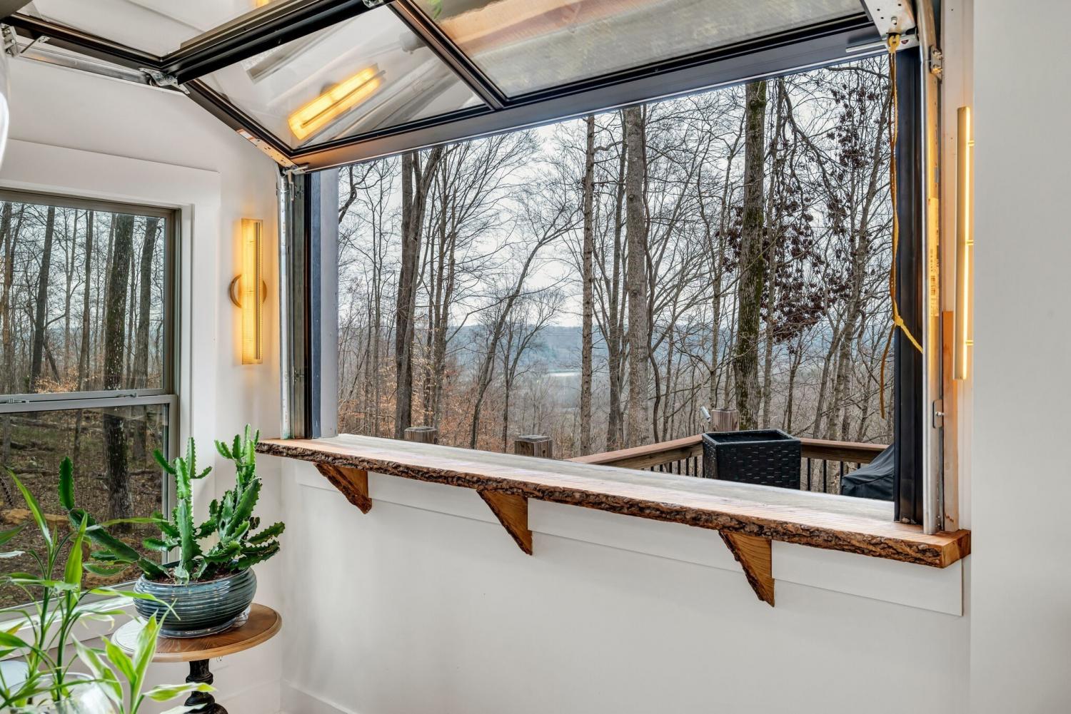 Lender Incentives! Stunning Contemporary Retreat situated on your Own Private Ridge w7.91 Wooded Acres. Perched 300’ above the Cumberland River Valley you have distant Views of River below. This residence reflects the homeowners Architectural Ingenuity, Seamlessly blending its Natural Surroundings w Modern Comfort & Convenience. Its walls of stone + timber echo the rugged beauty of the wilderness that surrounds it, all the while 56 expansive windows invite the breathtaking panorama of the river & tree lined valley. The living spaces are bathed in natural light w 12 foot +ceilings 32’ of glass on ea side of the main level anchored by stone FP Kitchen w island + Bar Top w Glass Garage DOOR complete w oak slab cut from the property overlooking the 50’ deck& ideal vantage point for river vistas, treetops & wildlife. First flr Primary Bedrm w vaulted ceilings en-suite w shower & stand-alone tub, Lower Level w 10’ ceilings Rec Rm Bedrooms 3& 4,wet bar all overlooking covered patio + Oversized heated and cooled 2 car garage! w Dog Washing Rm Architects Custom Built Home