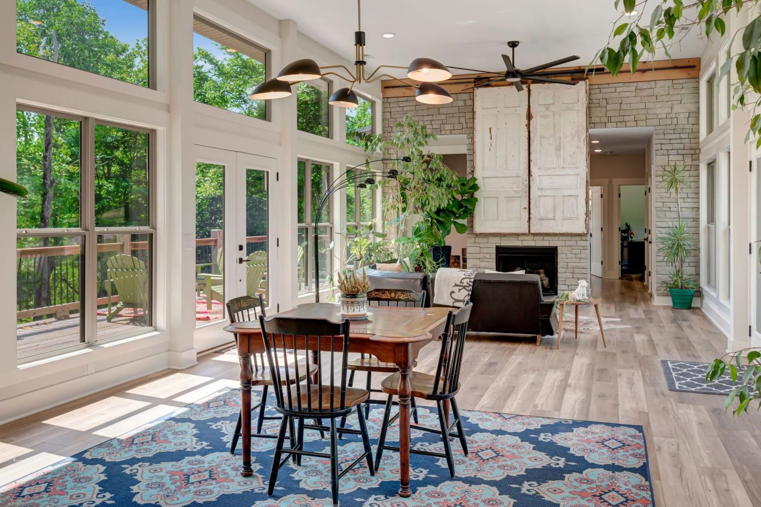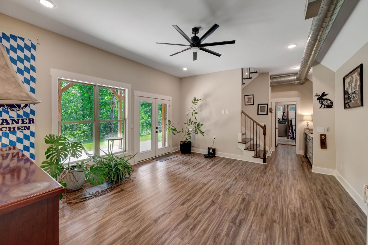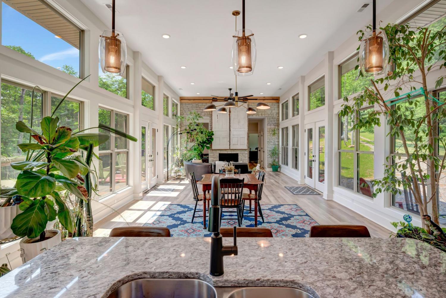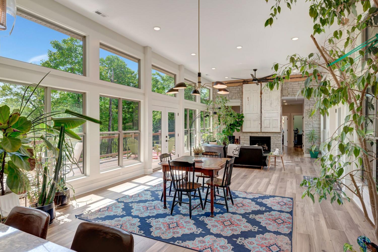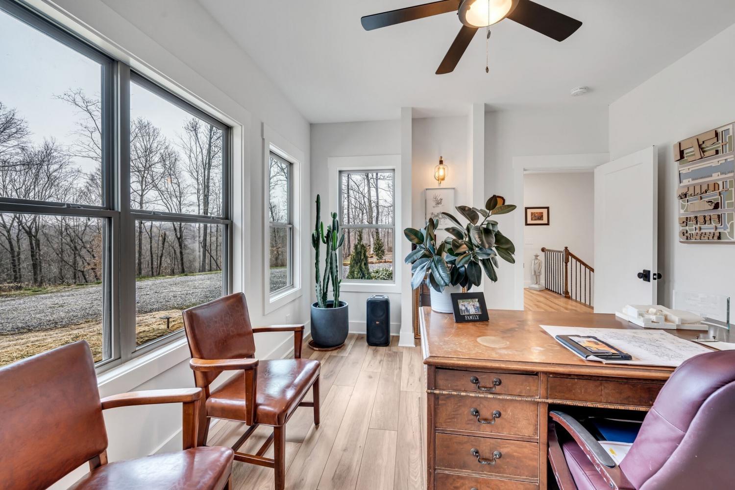 Lender Incentives! Stunning Contemporary Retreat situated on your Own Private Ridge w7.91 Wooded Acres. Perched 300’ above the Cumberland River Valley you have distant Views of River below. This residence reflects the homeowners Architectural Ingenuity, Seamlessly blending its Natural Surroundings w Modern Comfort & Convenience. Its walls of stone + timber echo the rugged beauty of the wilderness that surrounds it, all the while 56 expansive windows invite the breathtaking panorama of the river & tree lined valley. The living spaces are bathed in natural light w 12 foot +ceilings 32’ of glass on ea side of the main level anchored by stone FP Kitchen w island + Bar Top w Glass Garage DOOR complete w oak slab cut from the property overlooking the 50’ deck& ideal vantage point for river vistas, treetops & wildlife. First flr Primary Bedrm w vaulted ceilings en-suite w shower & stand-alone tub, Lower Level w 10’ ceilings Rec Rm Bedrooms 3& 4,wet bar all overlooking covered patio + Oversized heated and cooled 2 car garage! w Dog Washing Rm Architects Custom Built Home