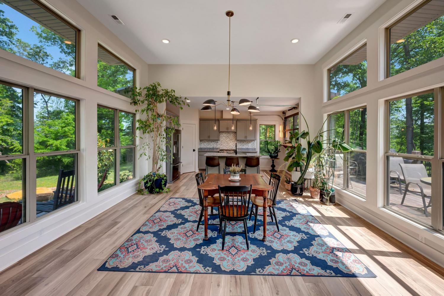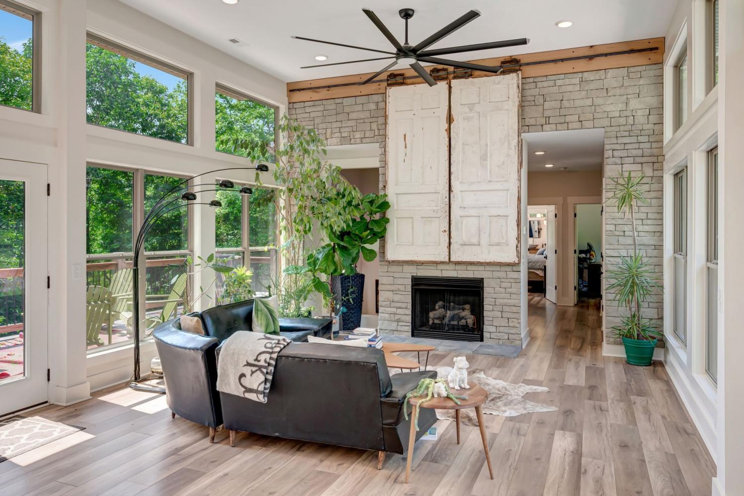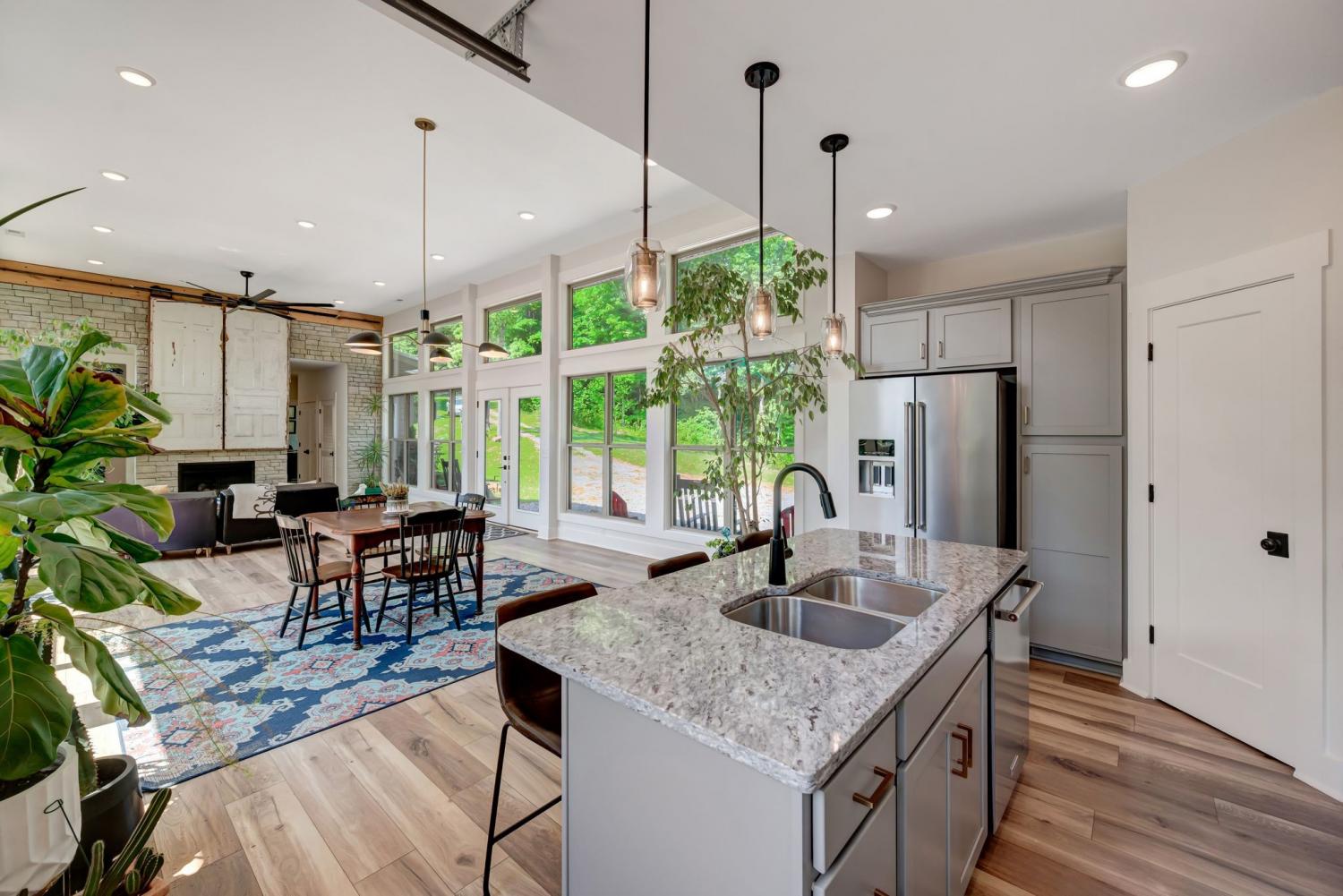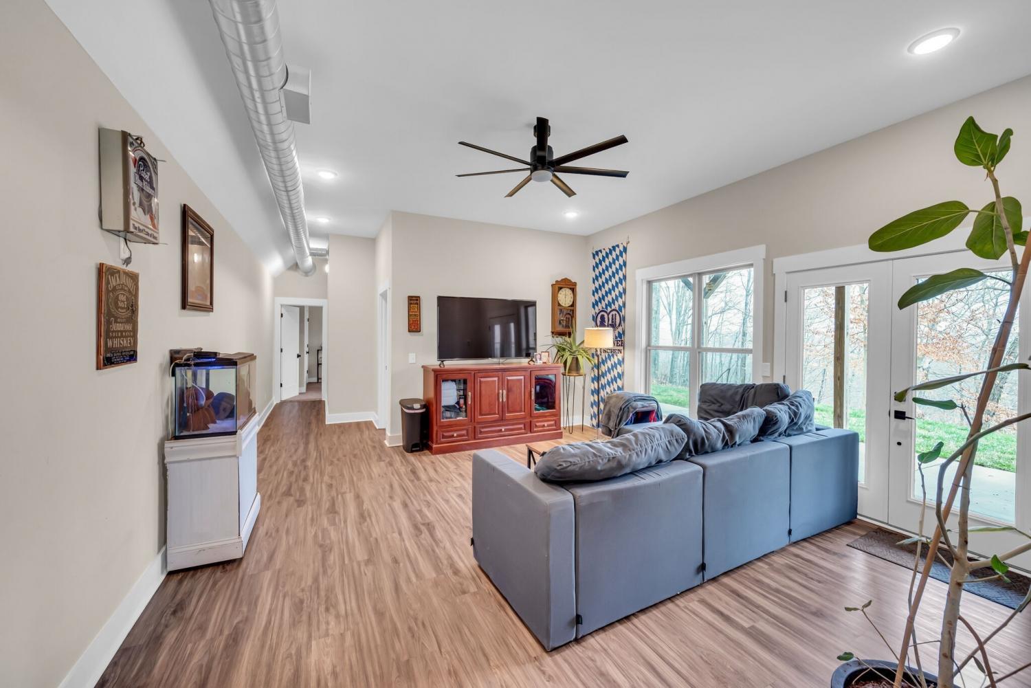 Lender Incentives! Stunning Contemporary Retreat situated on your Own Private Ridge w7.91 Wooded Acres. Perched 300’ above the Cumberland River Valley you have distant Views of River below. This residence reflects the homeowners Architectural Ingenuity, Seamlessly blending its Natural Surroundings w Modern Comfort & Convenience. Its walls of stone + timber echo the rugged beauty of the wilderness that surrounds it, all the while 56 expansive windows invite the breathtaking panorama of the river & tree lined valley. The living spaces are bathed in natural light w 12 foot +ceilings 32’ of glass on ea side of the main level anchored by stone FP Kitchen w island + Bar Top w Glass Garage DOOR complete w oak slab cut from the property overlooking the 50’ deck& ideal vantage point for river vistas, treetops & wildlife. First flr Primary Bedrm w vaulted ceilings en-suite w shower & stand-alone tub, Lower Level w 10’ ceilings Rec Rm Bedrooms 3& 4,wet bar all overlooking covered patio + Oversized heated and cooled 2 car garage! w Dog Washing Rm Architects Custom Built Home