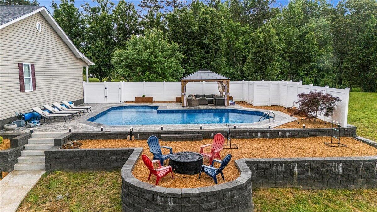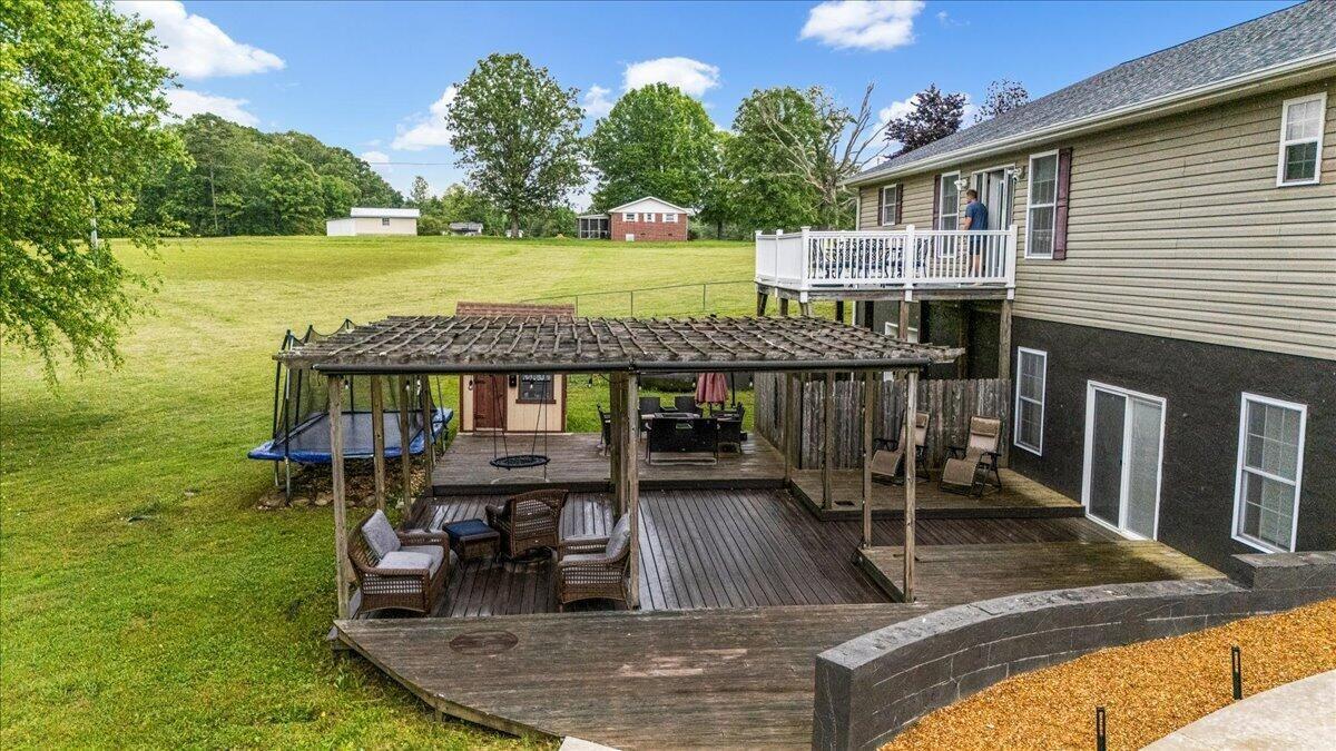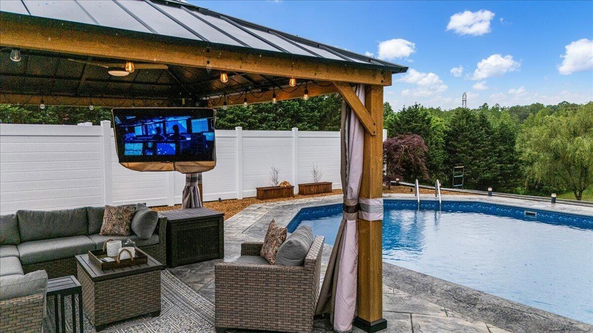 Great for entertaining or large families! This large home has room in the kitchen & dining room for all your Thanksgiving and Easter dinners and the living room is big enough for all the Christmas parties, but don't forget the inground UV Ozone pool and massive trex & wood patio with fire pit & sitting areas for Memorial Day & 4th of July parties. The finished walk out basement has a reading nook, easy access to the expansive patios, large family room, theater room and office with its own walk in closet & full bathroom. And YES there is high speed internet for work & streaming. There is an additional utility garage that could be easily turned into a work shop or additional living space. 4 car garage on the main level allows everyone to park inside. And the 240 EV charger can be purchased separately. The home has a smart thermostat and low voltage outdoor lighting. appliances can stay. The out building has electricity please note floor plan has approximate. This is 2 lots being sold as one home. Measurements and has the 3rd bedroom mixed up with the office. There is an easement on the right side to allow access for the homes behind.