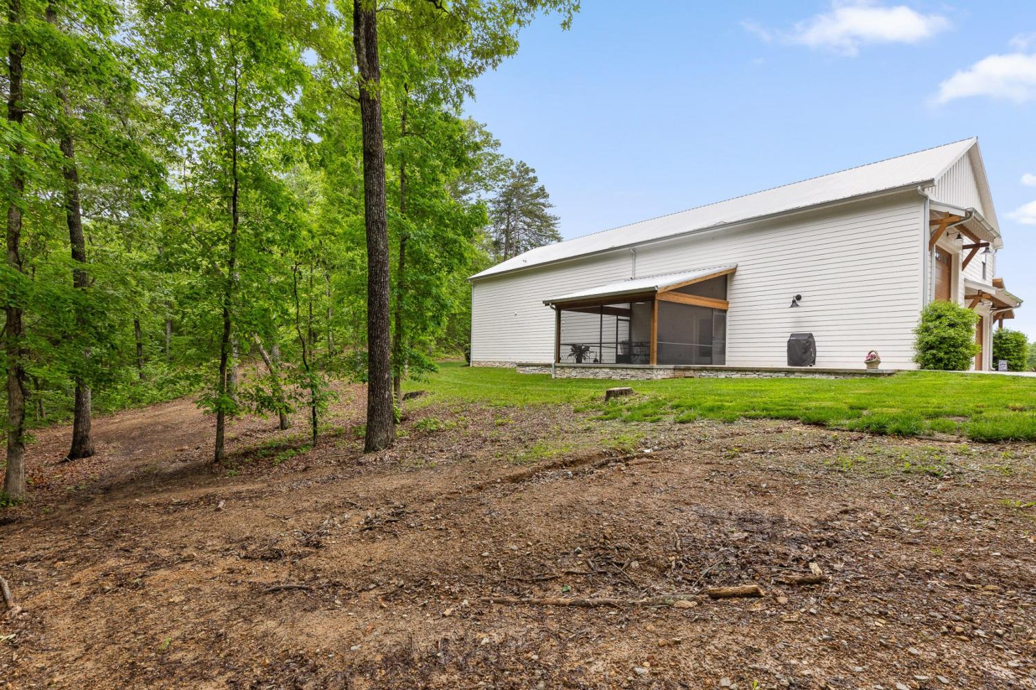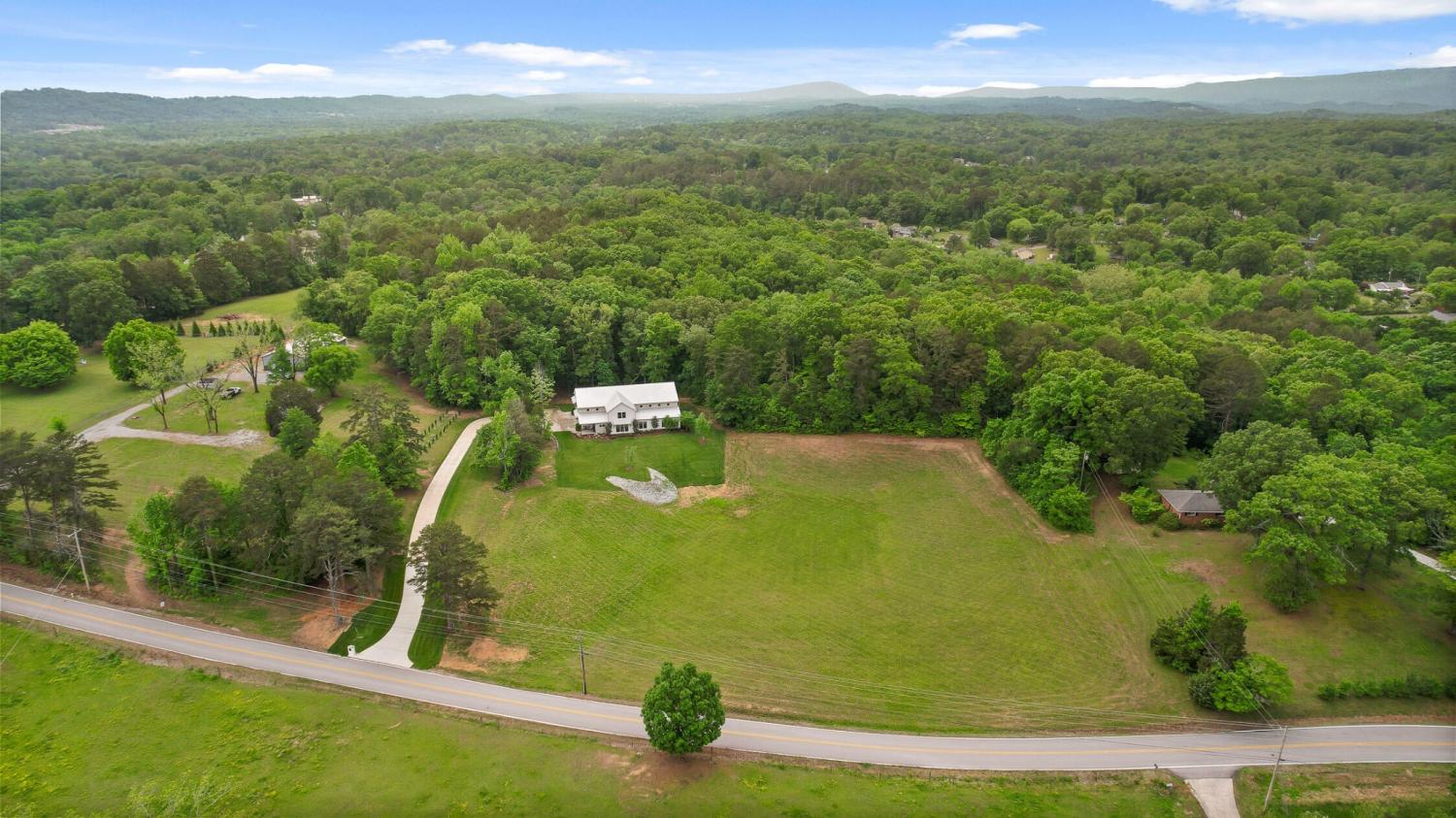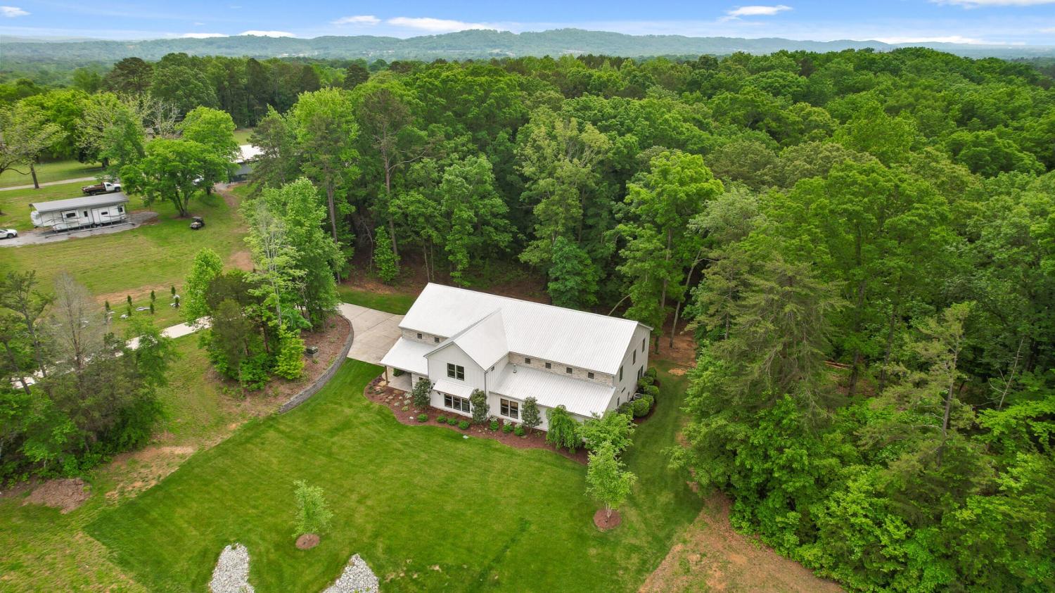 Located at 1440 Bowman Road in Hixson, Tennessee, this builder's custom home offers unparalleled privacy, set back well off the road, with scenic mountain views and approximately 5 acres of land. Zoned with A-1 and featuring minimal property restrictions, it presents a potential horse property with a wooded private backyard and gently sloping terrain. The beautifully landscaped grounds include evergreen privacy hedges and landscape irrigation at the front and back of the home. Despite its secluded setting, the property is just twenty minutes from downtown Chattanooga and moments away from shopping, dining, and churches. Constructed with 2 x 6 framing and R-19 insulation in the walls, the exterior boasts craftsman wood accents, a low maintenance metal roof, Hardi-Plank durable siding, and partial stone. Custom exterior lighting, high efficiency low E windows, and multiple HVAC units zoned by level enhance the home's superior overall energy efficiency. The property includes a stamped concrete entryway under a covered porch, a tankless water heater, an alarm system with cameras, and an all-slab foundation. Inside, the large entry foyer with double closets leads to a full open concept living space with vaulted ceilings and wood beams. Natural lighting abounds in this area, which features an island fireplace and a large kitchen island with custom cabinets and stainless-steel appliances, a gas range and an amazing pantry with coffee bar. The main level houses the primary bedroom with a dual vanity bathroom and separate tiled shower, a full guest bathroom, a laundry room with a farm sink, and an office or exercise room off the primary bedroom. On the second level, you'll find two large bedrooms, a full bathroom, bonus room or game room, and multiple-conditioned storage closets. Exiting living areas to the garages, you'll find a convenient mudroom to keep the outside, outside. The property also includes two garages.