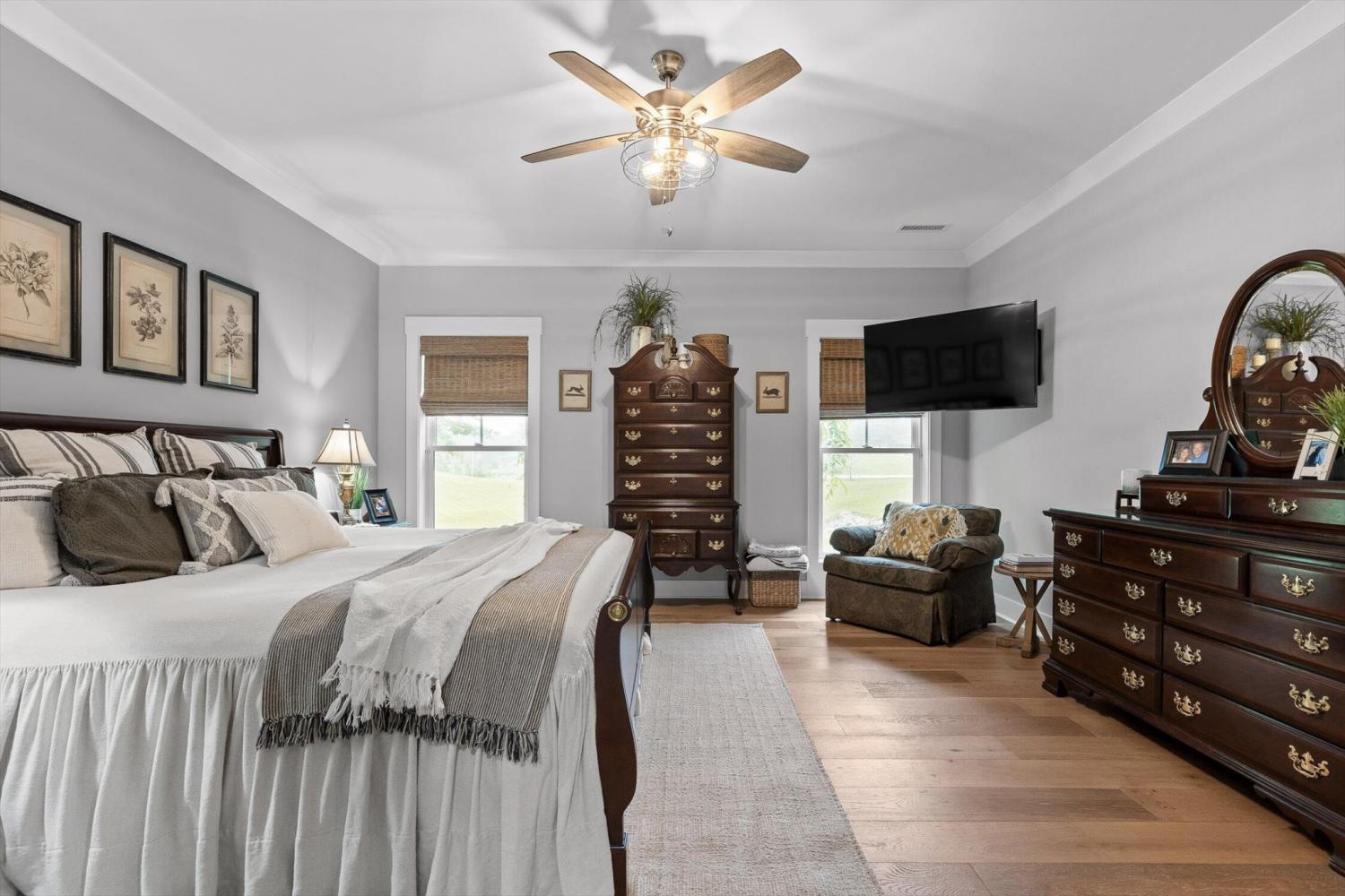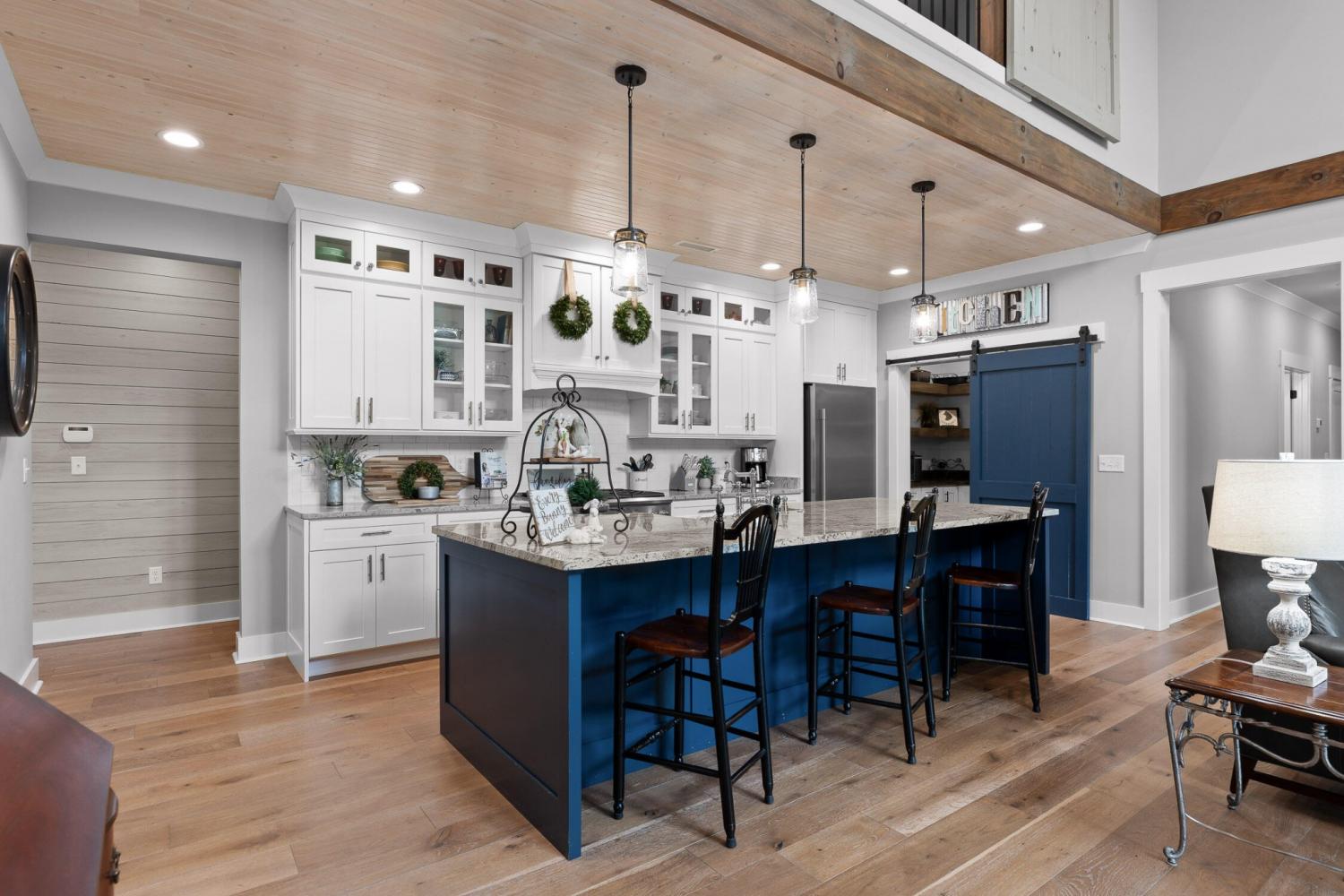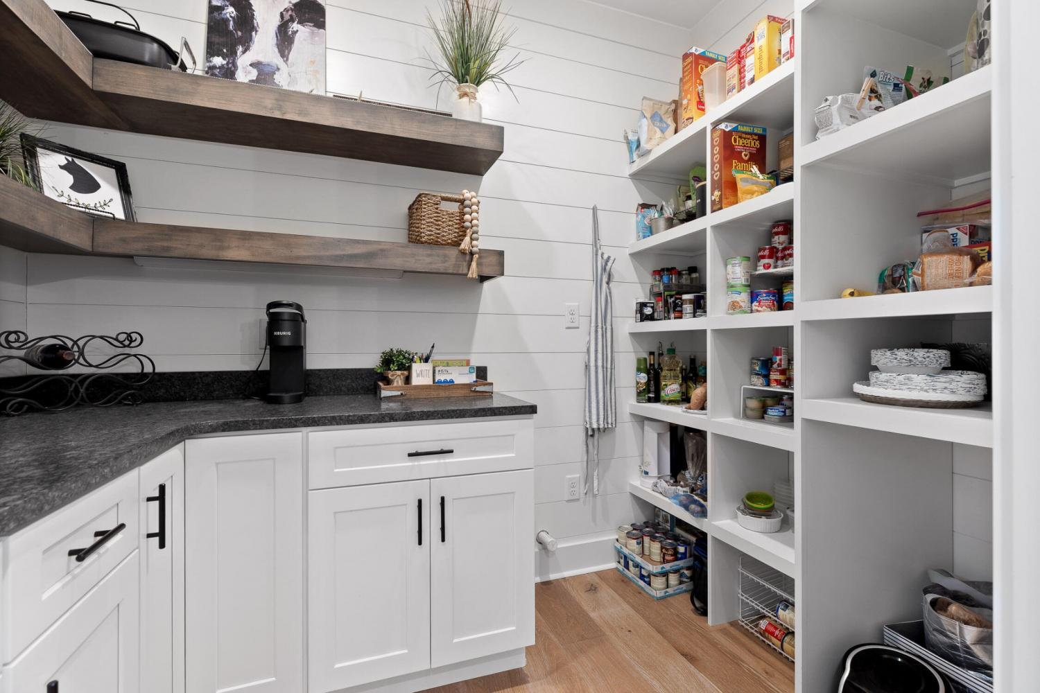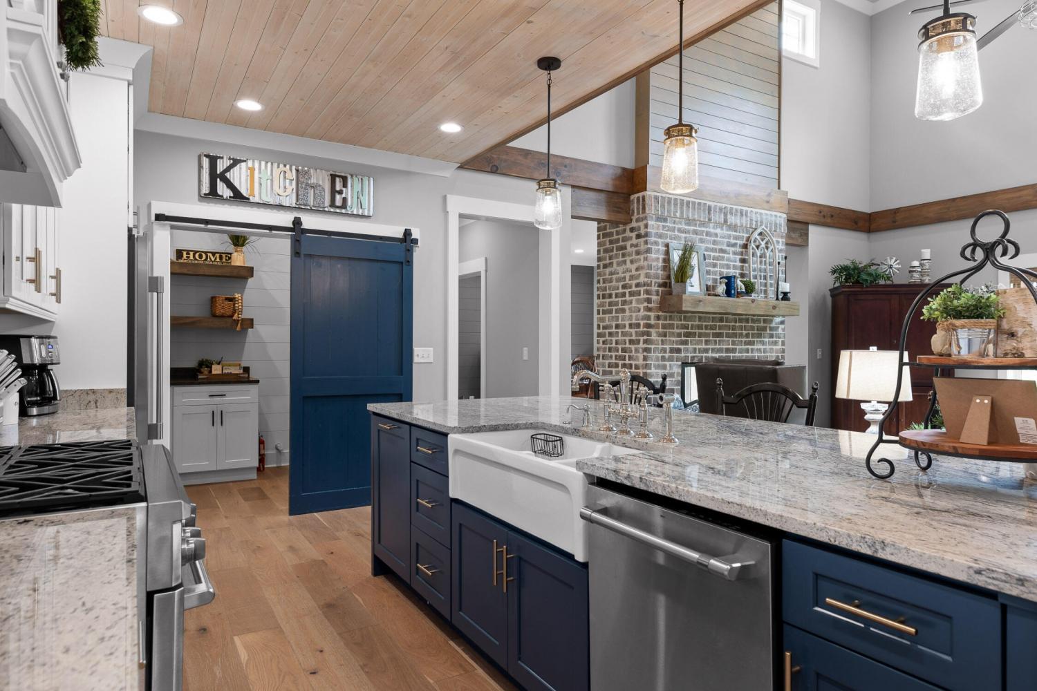 Located at 1440 Bowman Road in Hixson, Tennessee, this builder's custom home offers unparalleled privacy, set back well off the road, with scenic mountain views and approximately 5 acres of land. Zoned with A-1 and featuring minimal property restrictions, it presents a potential horse property with a wooded private backyard and gently sloping terrain. The beautifully landscaped grounds include evergreen privacy hedges and landscape irrigation at the front and back of the home. Despite its secluded setting, the property is just twenty minutes from downtown Chattanooga and moments away from shopping, dining, and churches. Constructed with 2 x 6 framing and R-19 insulation in the walls, the exterior boasts craftsman wood accents, a low maintenance metal roof, Hardi-Plank durable siding, and partial stone. Custom exterior lighting, high efficiency low E windows, and multiple HVAC units zoned by level enhance the home's superior overall energy efficiency. The property includes a stamped concrete entryway under a covered porch, a tankless water heater, an alarm system with cameras, and an all-slab foundation. Inside, the large entry foyer with double closets leads to a full open concept living space with vaulted ceilings and wood beams. Natural lighting abounds in this area, which features an island fireplace and a large kitchen island with custom cabinets and stainless-steel appliances, a gas range and an amazing pantry with coffee bar. The main level houses the primary bedroom with a dual vanity bathroom and separate tiled shower, a full guest bathroom, a laundry room with a farm sink, and an office or exercise room off the primary bedroom. On the second level, you'll find two large bedrooms, a full bathroom, bonus room or game room, and multiple-conditioned storage closets. Exiting living areas to the garages, you'll find a convenient mudroom to keep the outside, outside. The property also includes two garages.