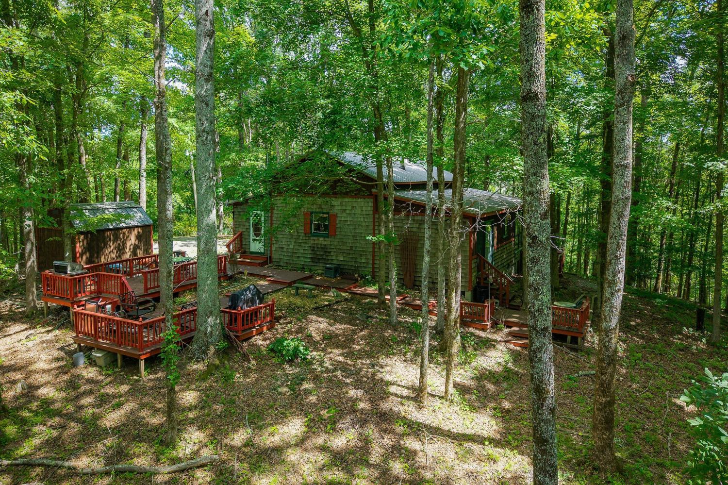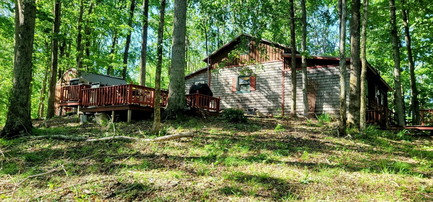 ATTENTION 2 HOMES ON APPROX 11 ACRES.....Escape to your own country retreat? Nestled on approx 11 Picturesque acres, w/ seasonal views of the Cumberland River. This unique property offers endless potential. The main house is move in ready, featuring Cozy Cedar shake siding, 30 year metal roof, this home has 2 bedrooms and 1 bathroom, and spacious open floor plan with spiral stairs leading up to loft and extra bonus room used as the loft bedrooms walk in closet. The main house is at the end of Hilltop Lane, surrounded by wood, has relaxing front porch, and 2 open decks great for entertaining or cooking out., also a nice 2 stall metal barn for horses The 2nd home is a fixer upper, but has endless potential to remodel to be a cute cottage. Selling both tracks of land approx 11 acres for $349,900 (measurement and info was pulled from tax records and is approx and not guaranteed... SELLING AS IS (the cottage /fixer upper has 6 acres NEEDS SEPTIC AND WATER, AND REMODELED.