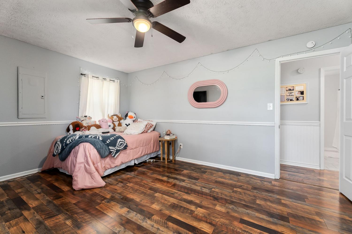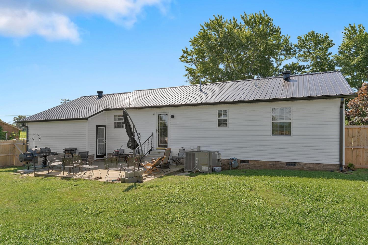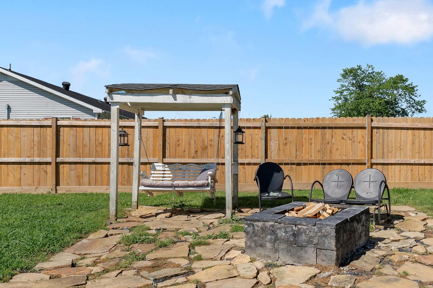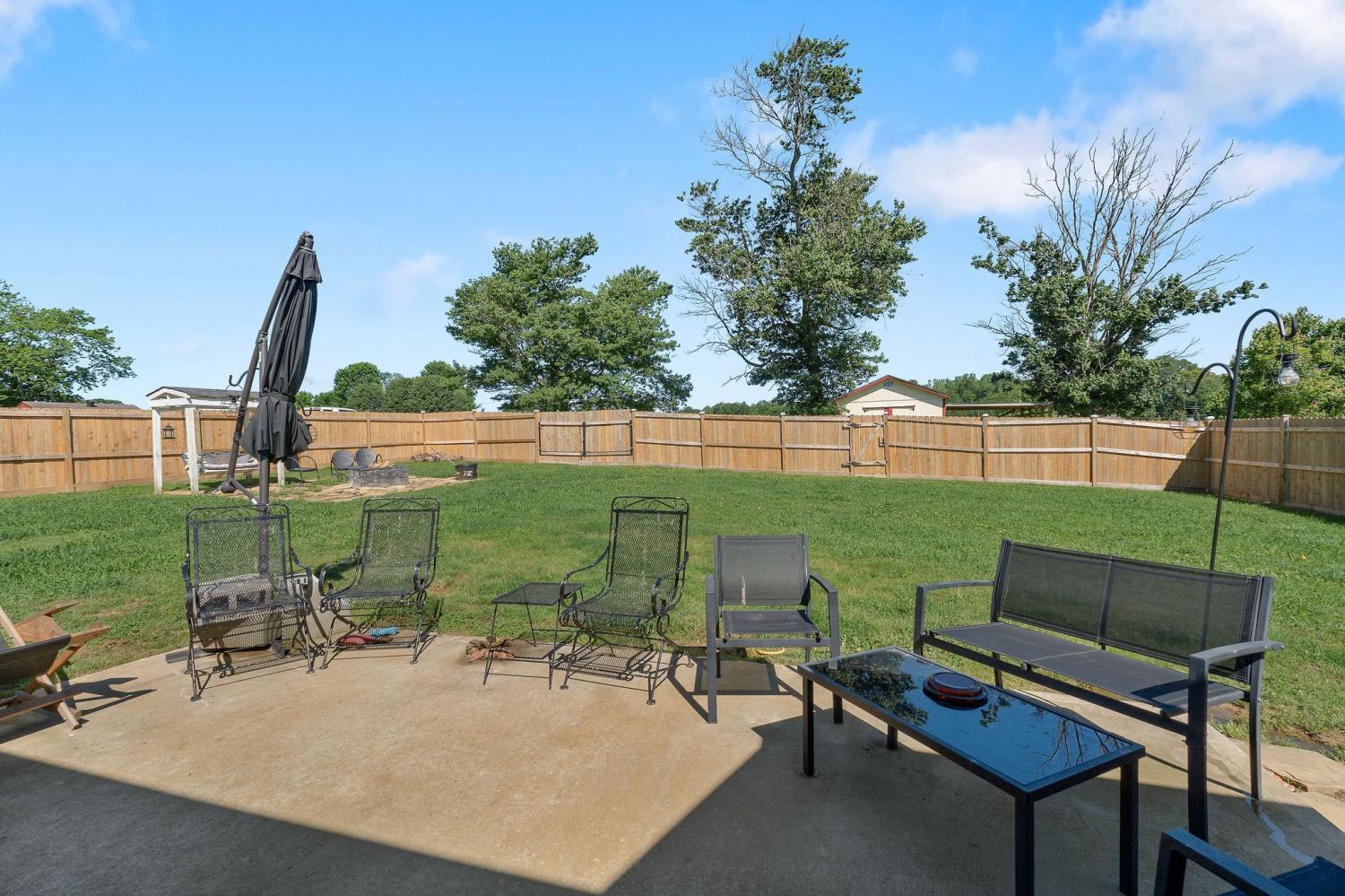 This move-in ready home has everything you need—starting with a private, fenced backyard perfect for pets, kids, or entertaining. Enjoy evenings by the fire pit, relaxing on the large patio, or storing all your extras in the 14x20 storage building and outdoor closet. Recent upgrades include a new metal roof, vertical siding, gutters, and fresh landscaping for great curb appeal. Inside, you'll love the gas fireplace, waterproof LVP and tile flooring throughout, and the inviting covered front porch. Mature trees provide shade out front, and the location couldn’t be more convenient to town. Loved and cared for by the same family for over 20 years, this one is ready to welcome you home!
