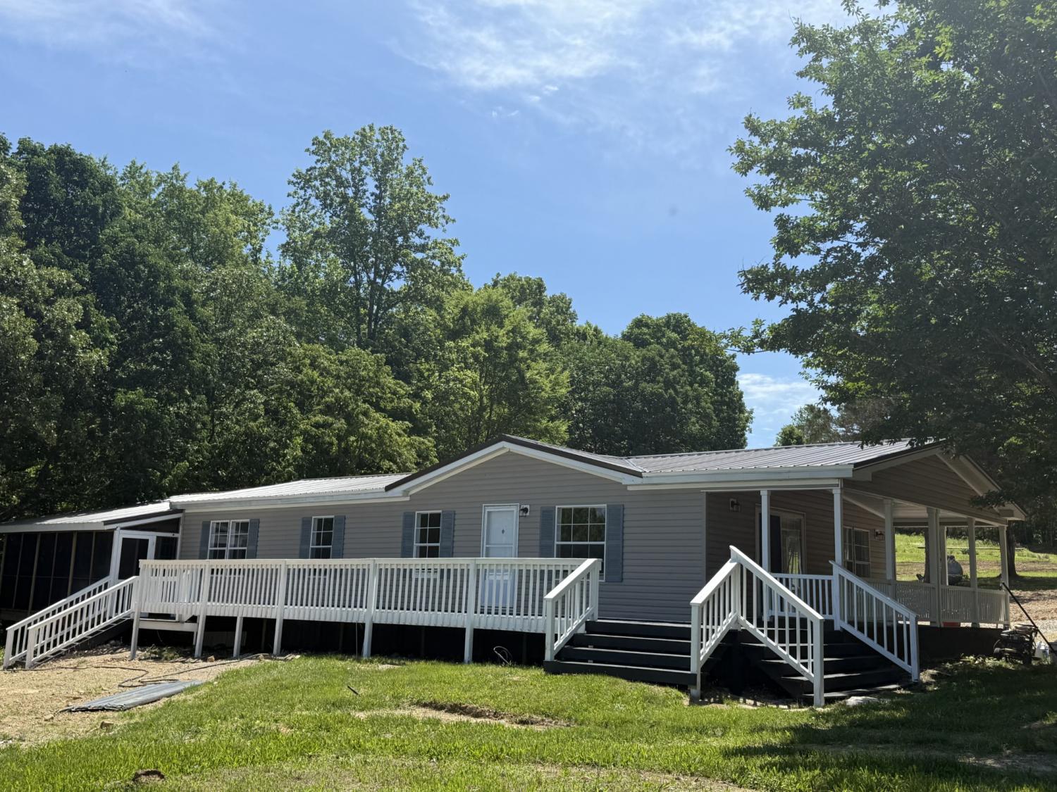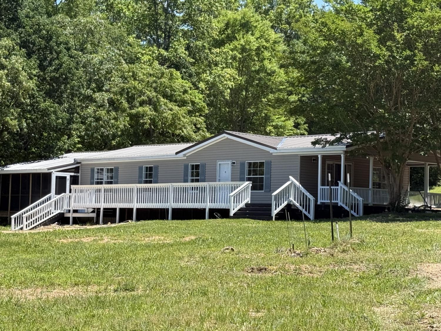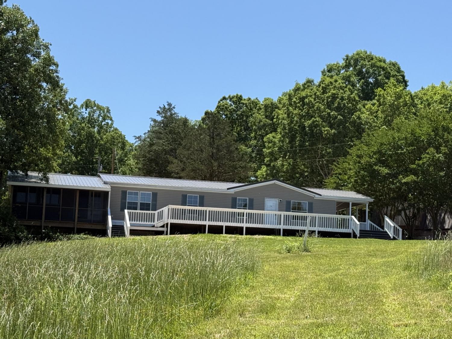 Discover a serene 116-acre retreat at 298 Leonard Jackson Rd, Waynesboro, TN, nestled at the end of a quiet road near the Lewis County line. This expansive property offers a beautifully remodeled double-wide home, perfect for comfortable living. New roof, new water-heater,all new flooring, new appliances, newly painted, new countertops. Masterbdrm w/full ba and french doors that lead out to a screened-in porch for relaxation. The land boasts a mix of open pastureland and mature timber, including white oak, poplar, hickory, and cedar, providing both scenic beauty and potential value. A long, winding creek, fed by several natural springs, meanders through the property, complemented by a stocked pond ideal for fishing or relaxation. Additional features include a spacious 40x60 pole barn and (3) 10x20 sheds) 25x16 log home (needs work), for ample storage or workspace. This property is a rare opportunity for those seeking privacy, natural beauty, and versatile land use. 3 wells and electric (TVEC) that goes through the center land. Fiberoptic avail. This property is move-in ready. Additional adjoining 100 acres can also be bought-MLS #2866603. In greenbelt and has new survey.