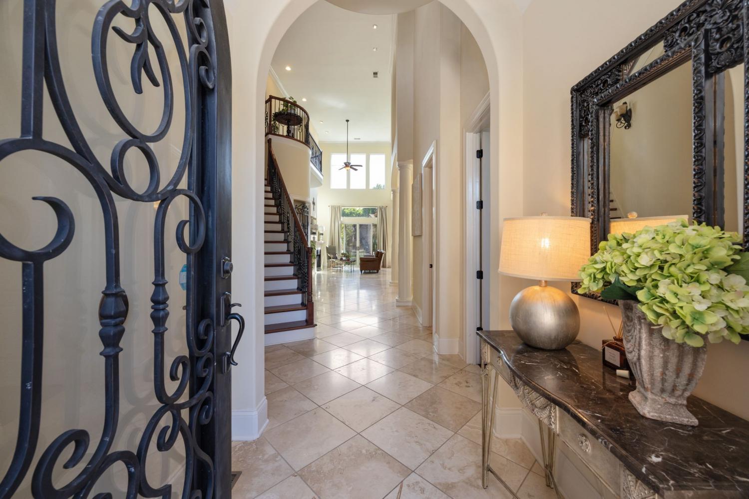 REDUCED PRICE! Want to live in Middle Tennessee but FEEL like you're in Tuscany? THIS IS YOUR NEW HOME! And aside from ALL the great features of this true Mediterranean Style Stucco home, it has a 2.25% VA ASSUMABLE LOAN! Mediterranean features include REAL cobblestone driveway, full Iron and glass entry door, travertine floors, 20' + ceilings, wrought iron railings inside and out, wine alcove with iron rail door, turreted breakfast/morning room, several balconies/patios and 6' walled courtyard! And if Tennessee storms have you scared, the home's laundry room (accessible directly from the primary bedroom) is a steel and concrete reinforced storm shelter with heavy metal doors. Other Upscale features include built in vacuum, irrigation system and elevator ready! Did I mention it's in a very small, secluded and GATED part of Gallatin TN's Fairvue Plantation? Well it is, so Tennessee Grasslands Golf and Country club with all its amenities is within walking distance (paid membership required.) Check out the photos and walk through video then schedule a showing!