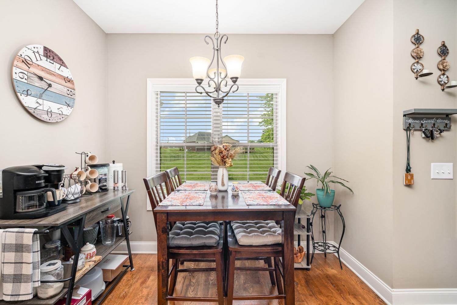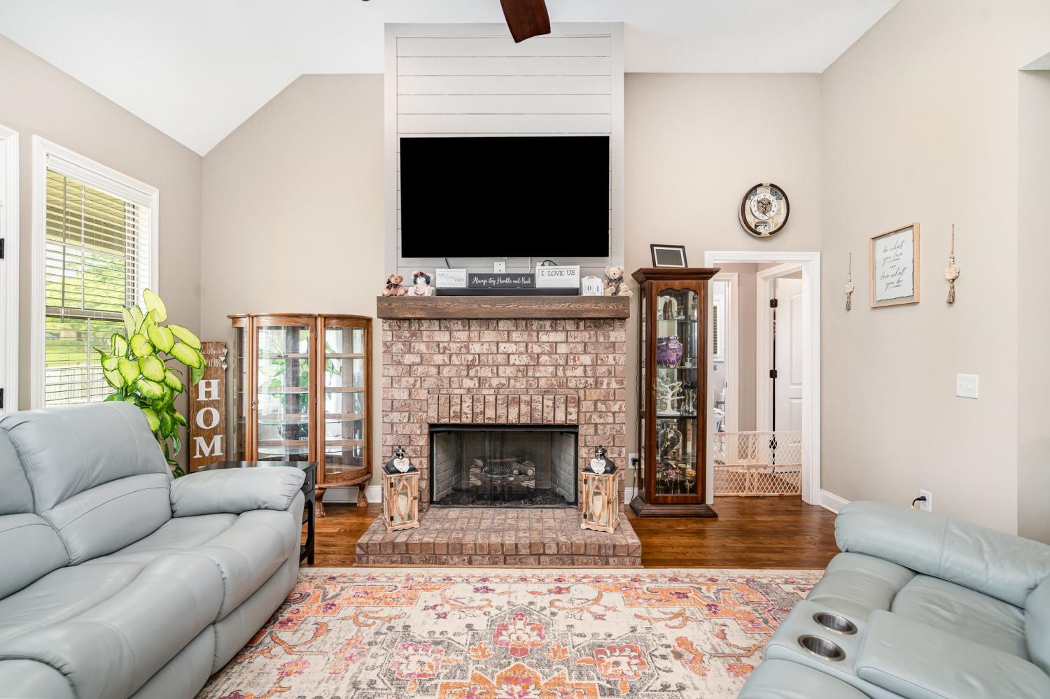 No HOA! Welcome to this beautifully maintained 3-bedroom, 2.5-bath all-brick home nestled on just over three-quarters of an acre in the sought-after Irish Oaks neighborhood of Portland. This all-one-level home features a versatile bonus room with a convenient half bath upstairs—perfect for a home office, guest space, or playroom. Step inside to gorgeous hardwood flooring and a bright, open-concept layout. Recessed lights throughout with ceiling fans and brick accented gas fireplace. The spacious kitchen boasts stainless steel appliances, granite countertops, soft-close cabinets, and a large island—seamlessly connecting to the living room, ideal for both everyday living and entertaining. A flex room near the entry can serve as a formal dining space or private home office. Enjoy peaceful mornings on the covered front porch and relaxing evenings on the covered back patio overlooking the fully fenced-in yard. The extended driveway provides ample parking, while the attached garage includes extra storage space along with additional storage in the bonus room. A charming old barn wood shed on a concrete slab adds character and functional storage to the large, level backyard. The encapsulated crawl space offers adds energy efficiency and a peace of mind. Don’t miss your chance to own this thoughtfully designed home with room to spread out—inside and out—in one of Portland’s most desirable areas.