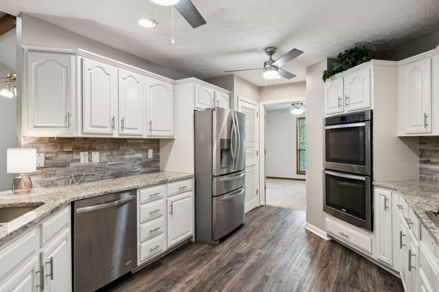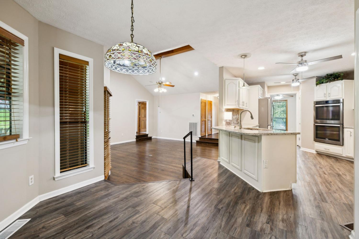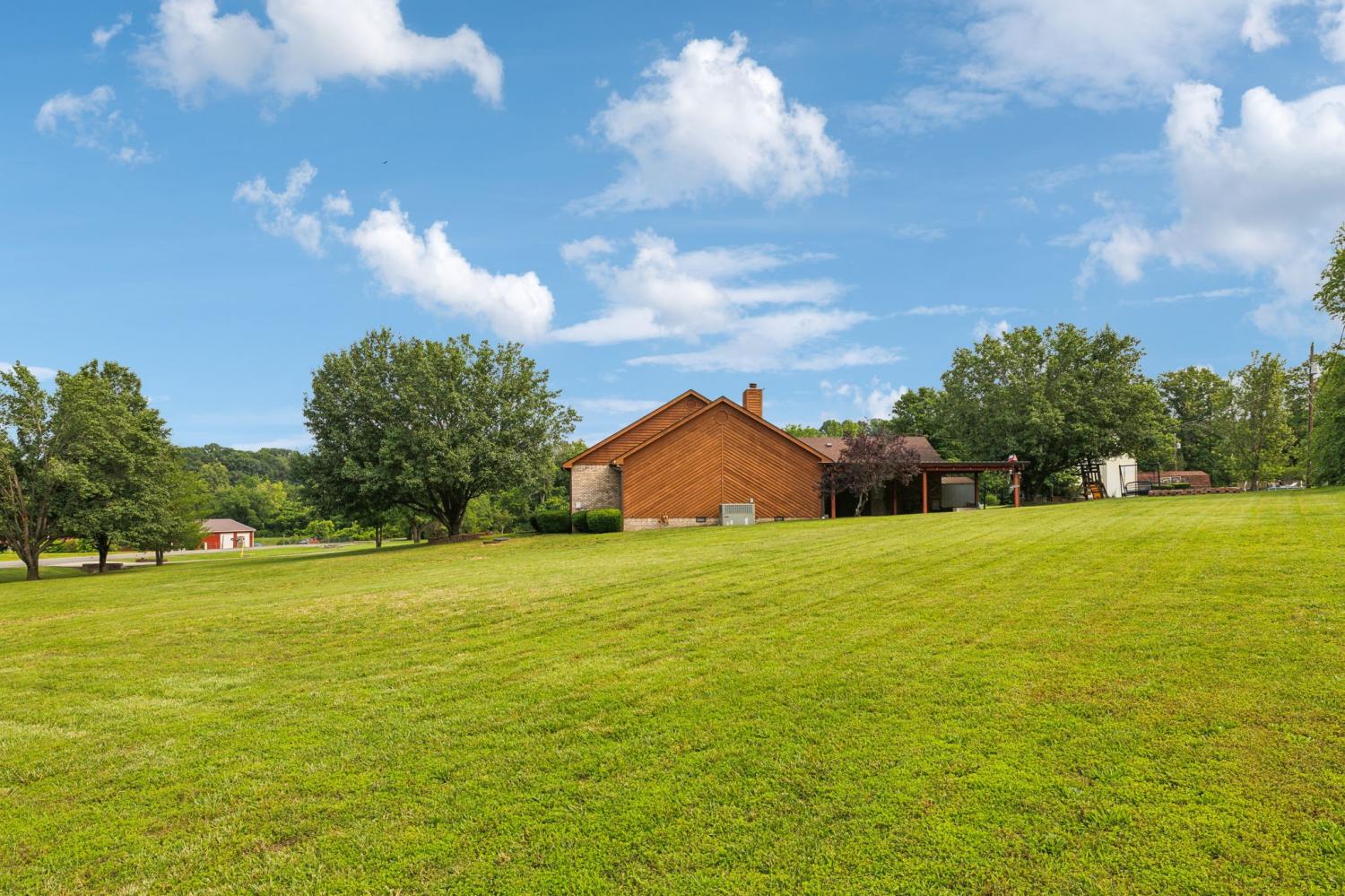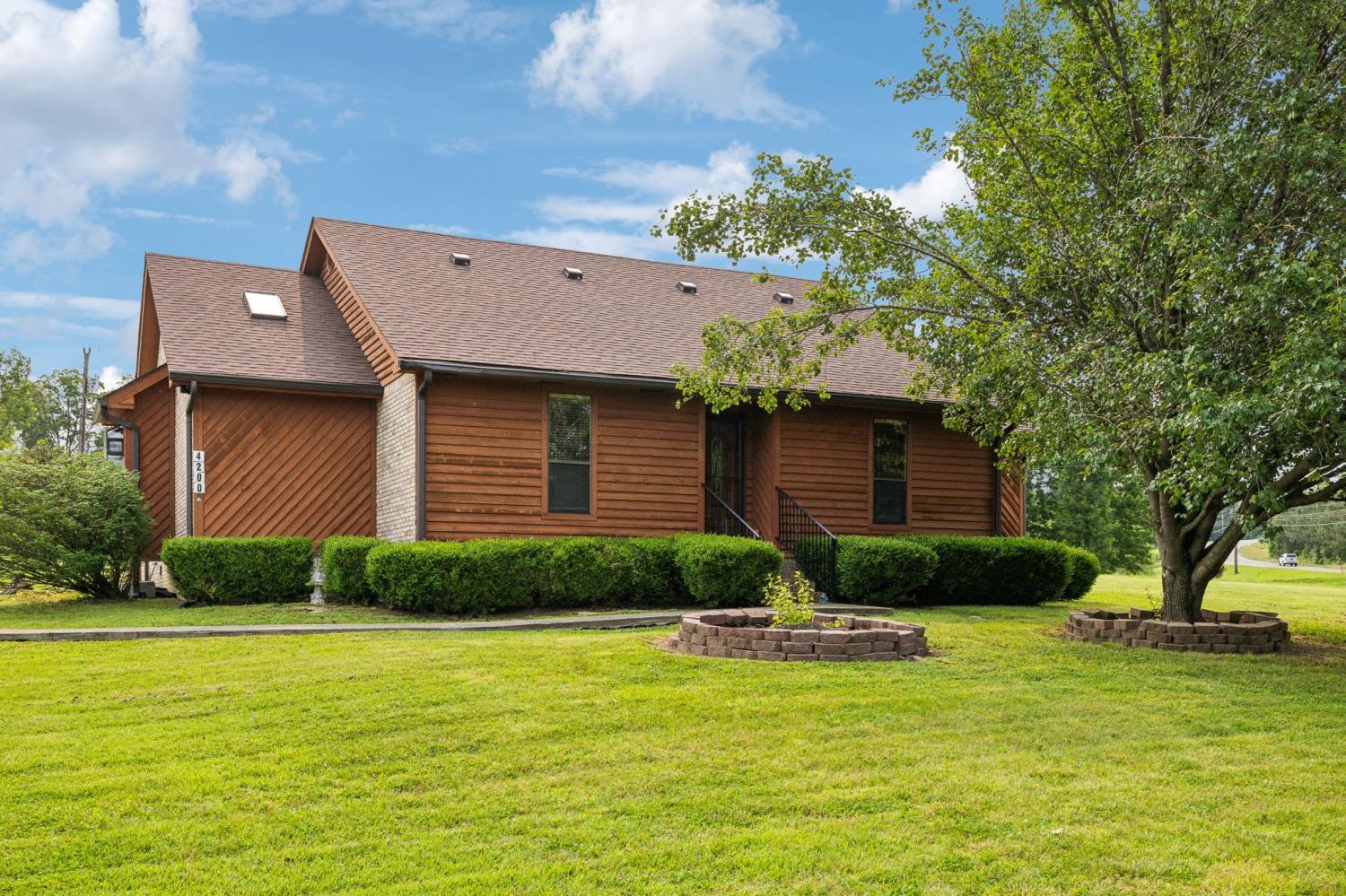 Nothing boring to see here~a perfect view with the home situated on a corner lot~this once custom built home maintains some of the modern amenities like an open floorplan and beautifully updated kitchen~the kitchen has plenty of cabinet and counter space, granite counters and a tile backsplash that shows off the stainless appliances~bathrooms with skylights and tile floors OH MY! Vaulted ceilings and fabulous hardwood floors~master suite that leads you to the large master bath that with tiled shower and makeup vanity area~do you need a space for entertaining, just step outside to the spacious covered patio~Roof was new in 2024~also new HVAC (2024) and another bonus is city sewer was connected in January 2025~Only 20 minutes to Nashville but also centrally located to Springfield and Clarksville