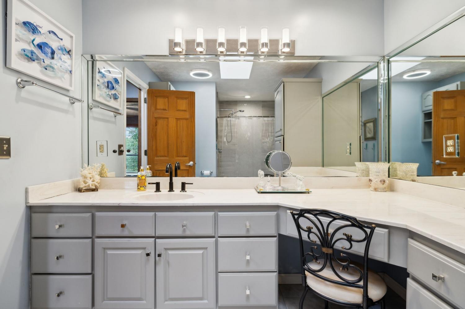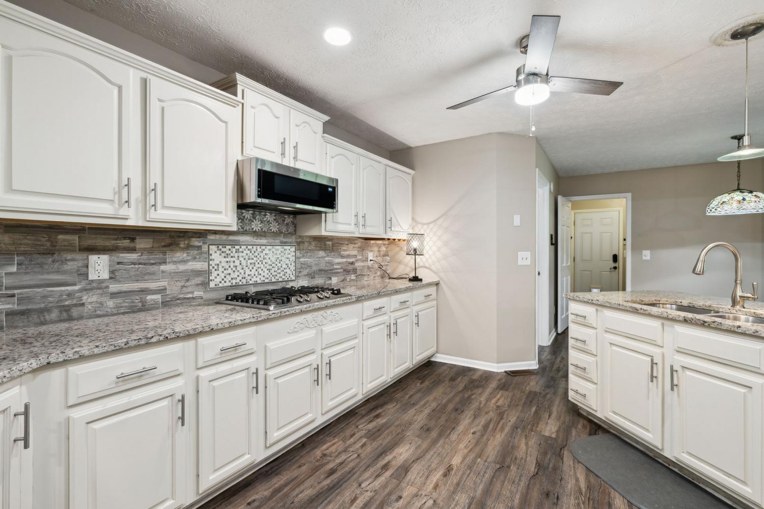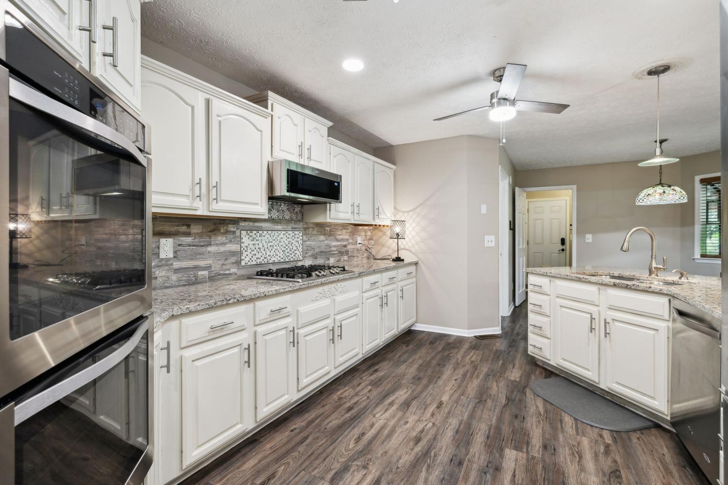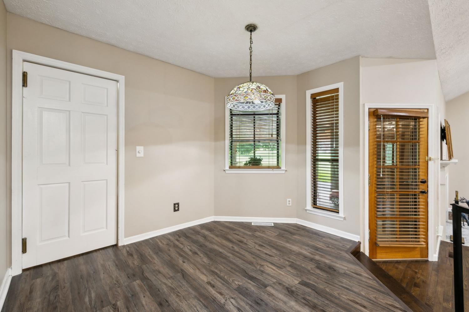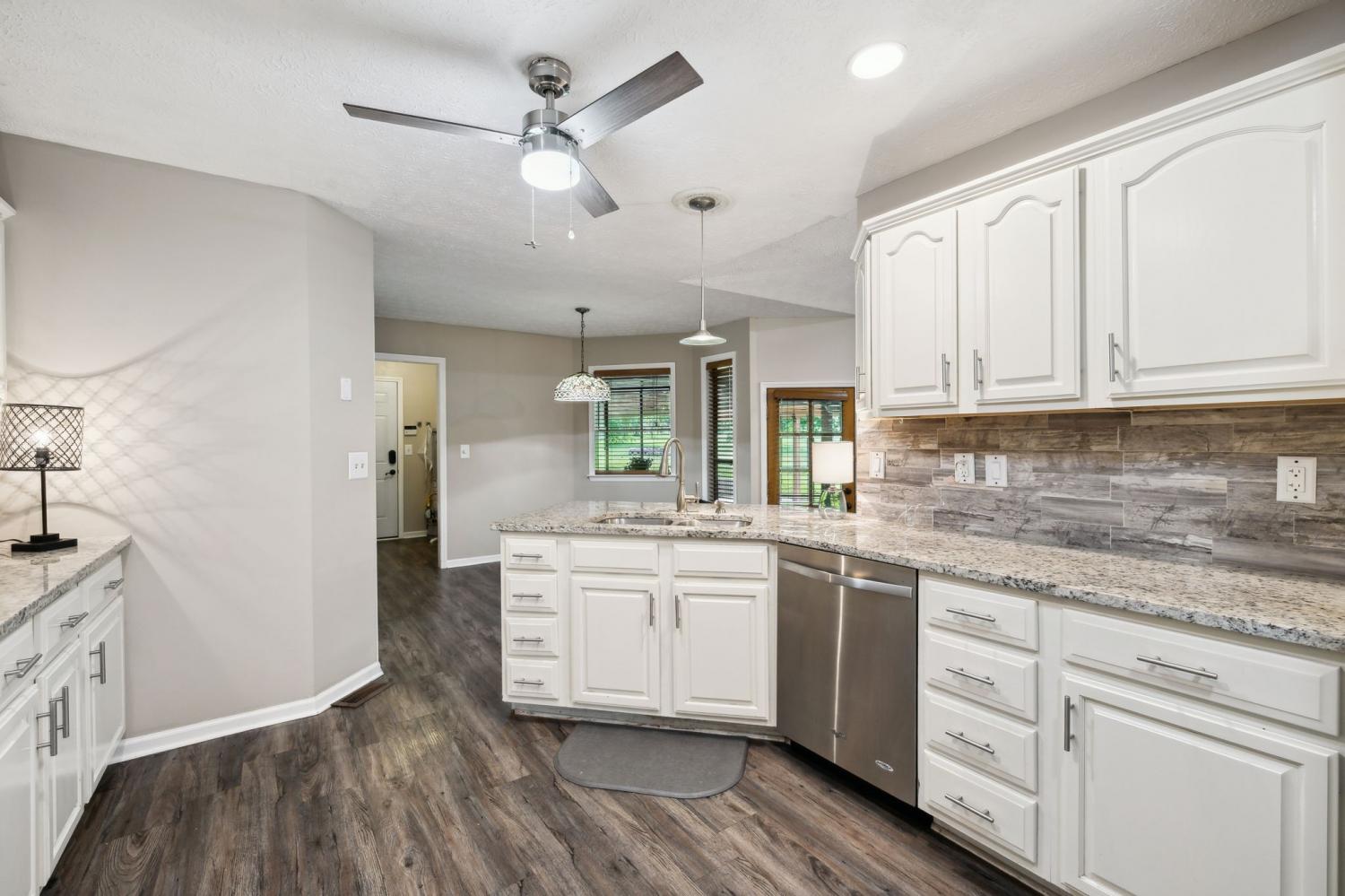 Nothing boring to see here~a perfect view with the home situated on a corner lot~this once custom built home maintains some of the modern amenities like an open floorplan and beautifully updated kitchen~the kitchen has plenty of cabinet and counter space, granite counters and a tile backsplash that shows off the stainless appliances~bathrooms with skylights and tile floors OH MY! Vaulted ceilings and fabulous hardwood floors~master suite that leads you to the large master bath that with tiled shower and makeup vanity area~do you need a space for entertaining, just step outside to the spacious covered patio~Roof was new in 2024~also new HVAC (2024) and another bonus is city sewer was connected in January 2025~Only 20 minutes to Nashville but also centrally located to Springfield and Clarksville