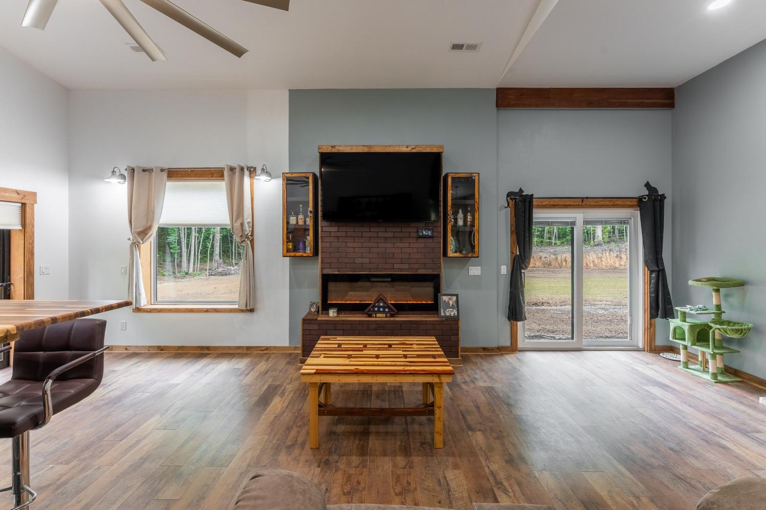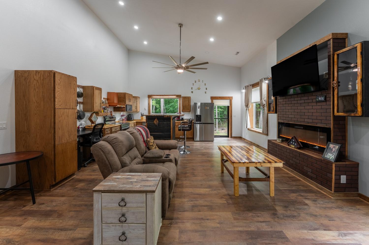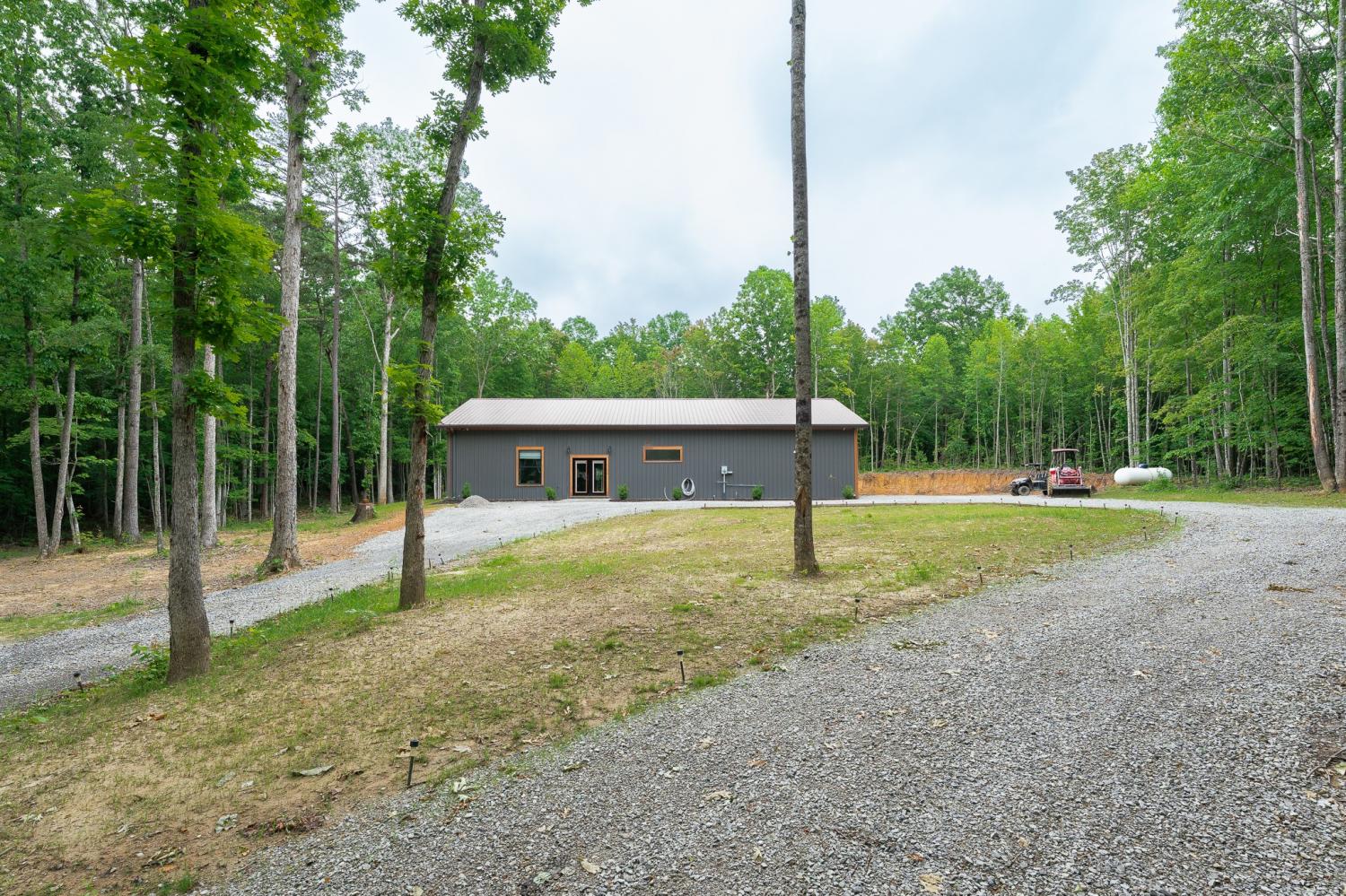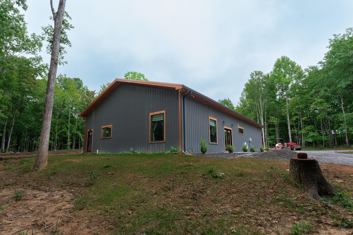 Welcome to 294 Big Piney Loop, located atop the remote Wilder Mountain, this home features 5 acres with a detached garage, RV/Washer Dryer hookups and a pond. Constructed in 2023, this Barndominium has an attached 3 bay garage with commode, numerous picture windows and 9 to 16 feet tall ceilings throughout. Front bedroom features a loft for extra storage and oversized windows. This bedroom also has a walk in closet and full bathroom that loops back into the main hallway. Enter the great room and find stainless appliances, apron sink and hand built island. Master suite features built in entertainment center, roll up 6 foot window and master bathroom with tile shower. Secret sliding mirror gives access to a reinforced safe room that loops back to the front door; doubling as a storm shelter or advantageous close quarter combat door for any unfortunate crook who might test their home invasion luck. Find out what all the Barndominium hype is about in the beautiful natural area known as Wilder Mountain. This is not in a flood zone. Schedule your showing today.