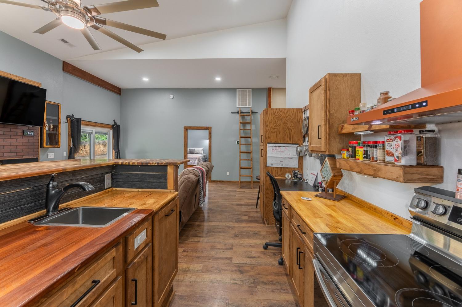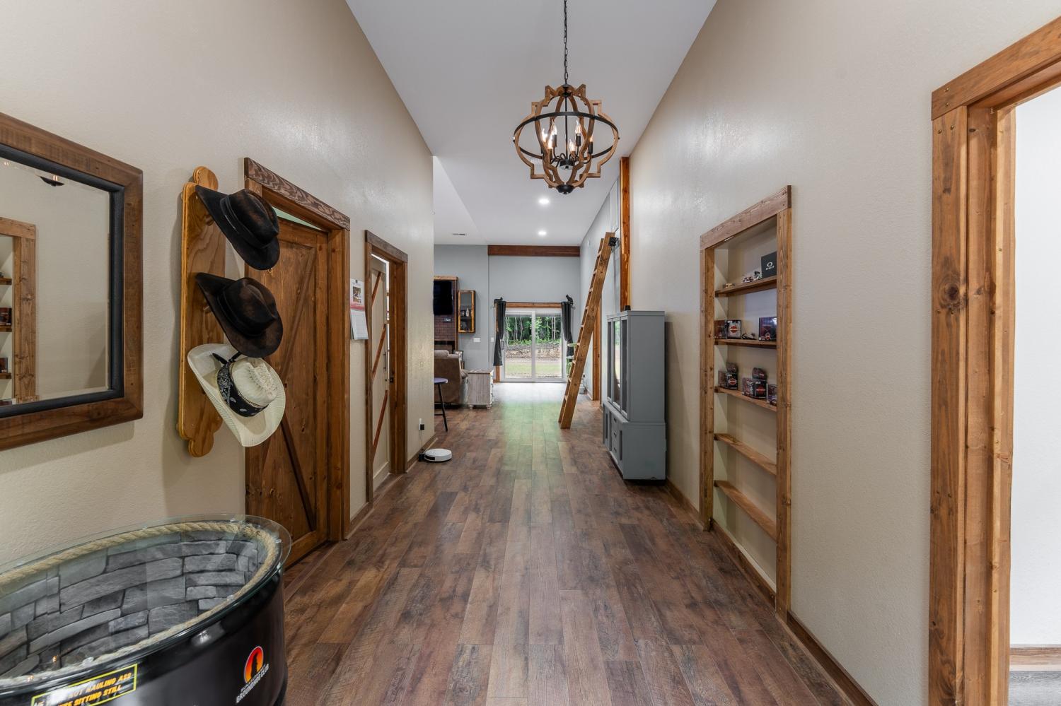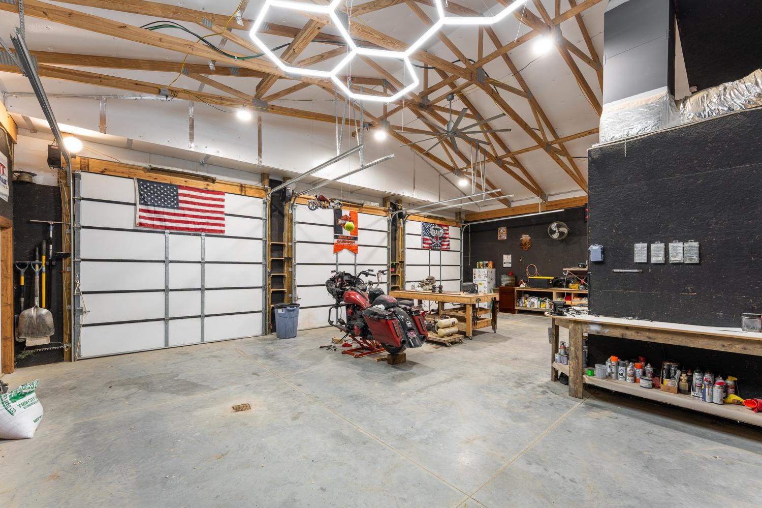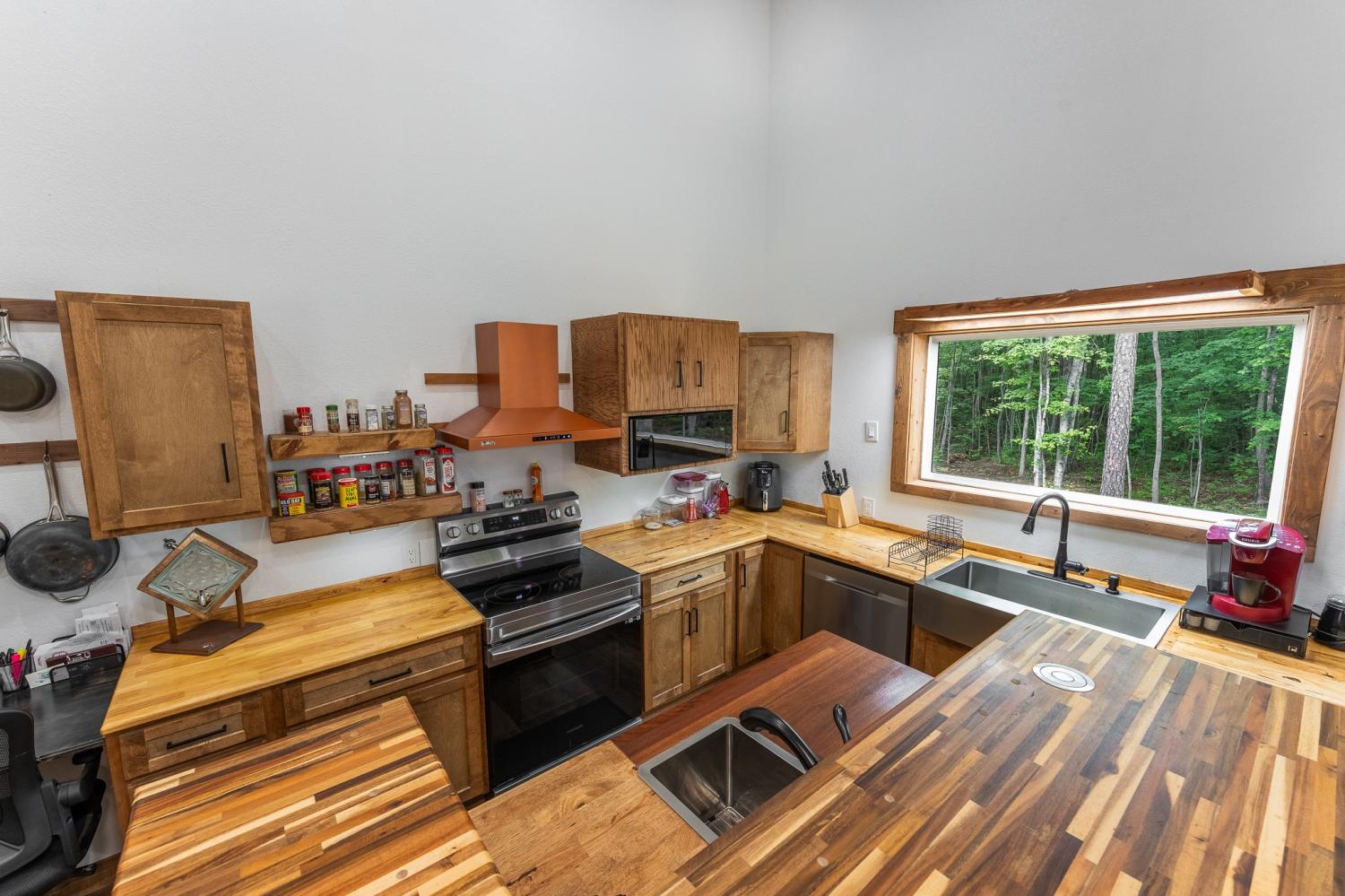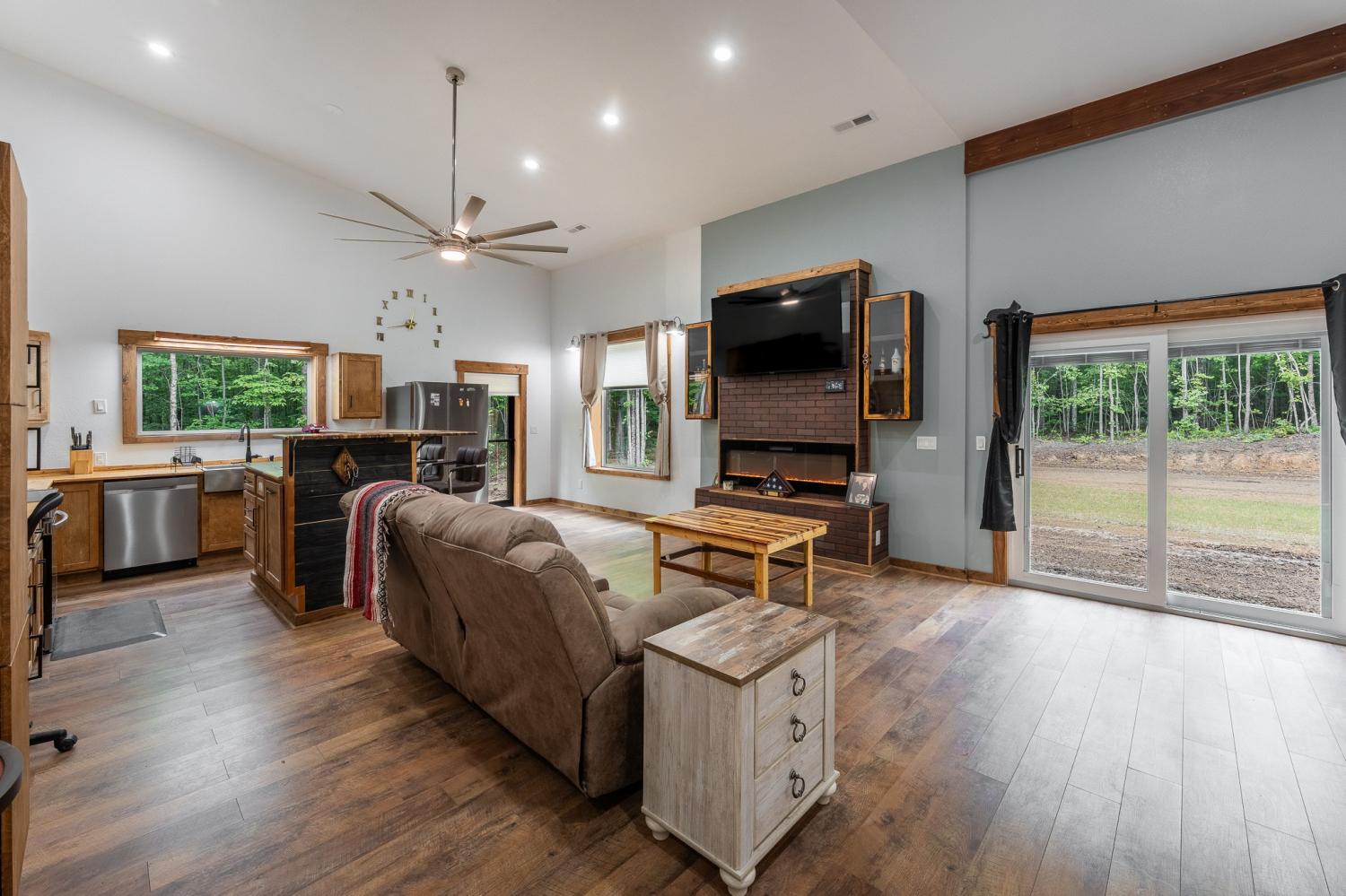 Welcome to 294 Big Piney Loop, located atop the remote Wilder Mountain, this home features 5 acres with a detached garage, RV/Washer Dryer hookups and a pond. Constructed in 2023, this Barndominium has an attached 3 bay garage with commode, numerous picture windows and 9 to 16 feet tall ceilings throughout. Front bedroom features a loft for extra storage and oversized windows. This bedroom also has a walk in closet and full bathroom that loops back into the main hallway. Enter the great room and find stainless appliances, apron sink and hand built island. Master suite features built in entertainment center, roll up 6 foot window and master bathroom with tile shower. Secret sliding mirror gives access to a reinforced safe room that loops back to the front door; doubling as a storm shelter or advantageous close quarter combat door for any unfortunate crook who might test their home invasion luck. Find out what all the Barndominium hype is about in the beautiful natural area known as Wilder Mountain. This is not in a flood zone. Schedule your showing today.