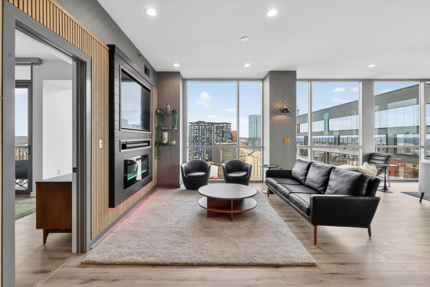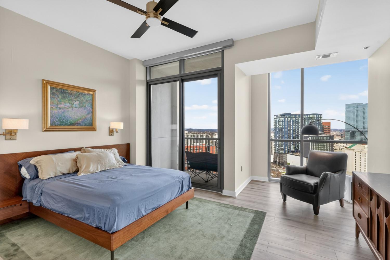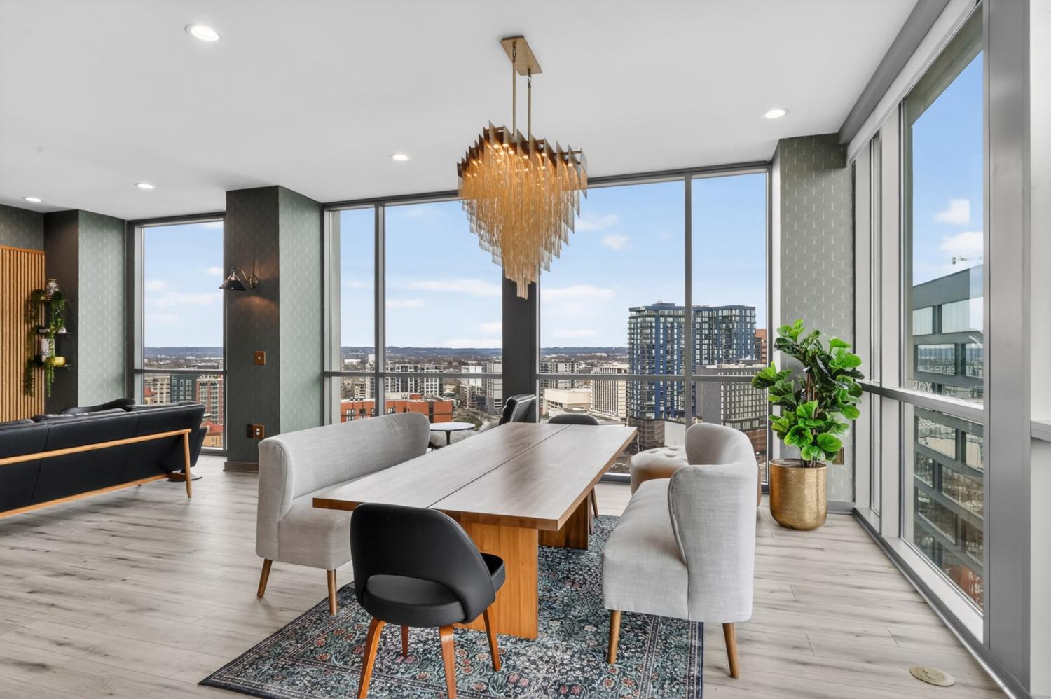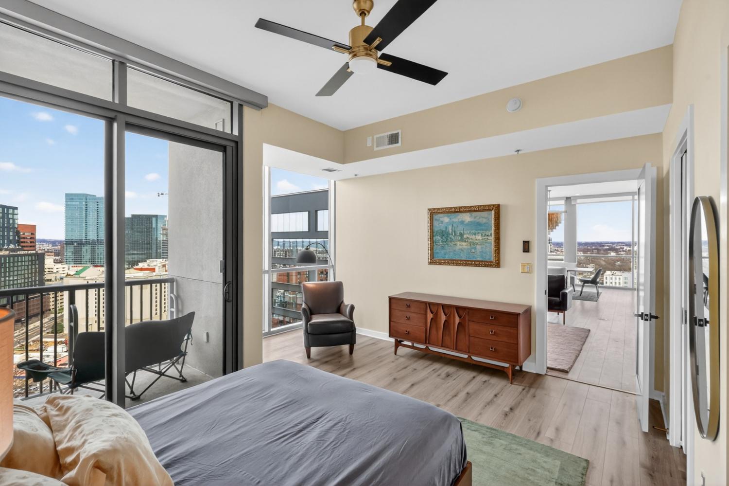 Exquisite North East end unit on the 16th floor at the Adelicia has under gone an extensive renovation! Peer out onto Nashville from this Art Deco stunning 2 bedroom/2 bathroom each with a balcony, floor to ceiling windows WOLF 36" gas range, Subzero refrigerator, new flooring, custom lighting, Delkton island, custom wall treatments throughout, automated shades & California closets, 2 assigned parking spaces, 1 storage unit, and much more! Residents enjoy top-notch amenities including 24 hour concierge, secure entry, an Olympic-size heated lap pool, a 3,000-square-foot fitness center, a private poolside lounge with catering kitchen, and an exclusive Adelicia Park. Additional perks include a gated parking garage, 24-hour security, private conference rooms, and a dog park.Walkable to Music Row, Midtown, Vanderbilt, and the Gulch.