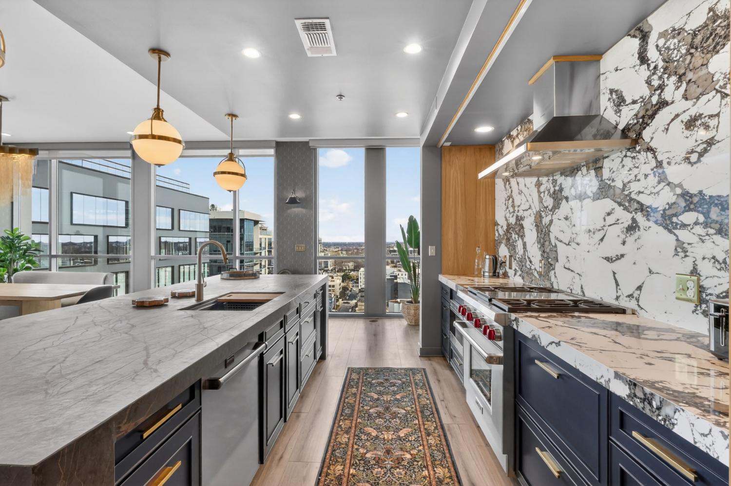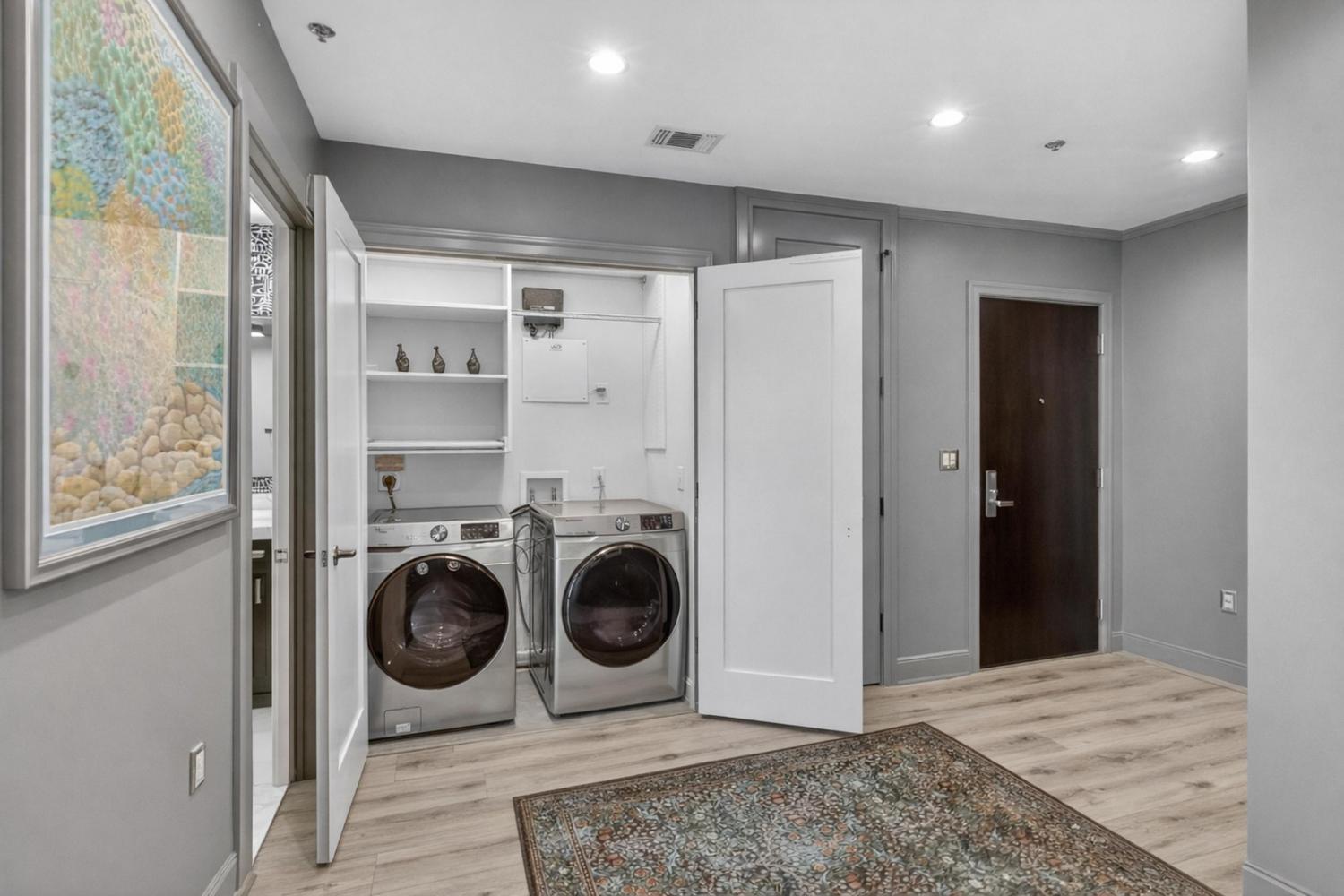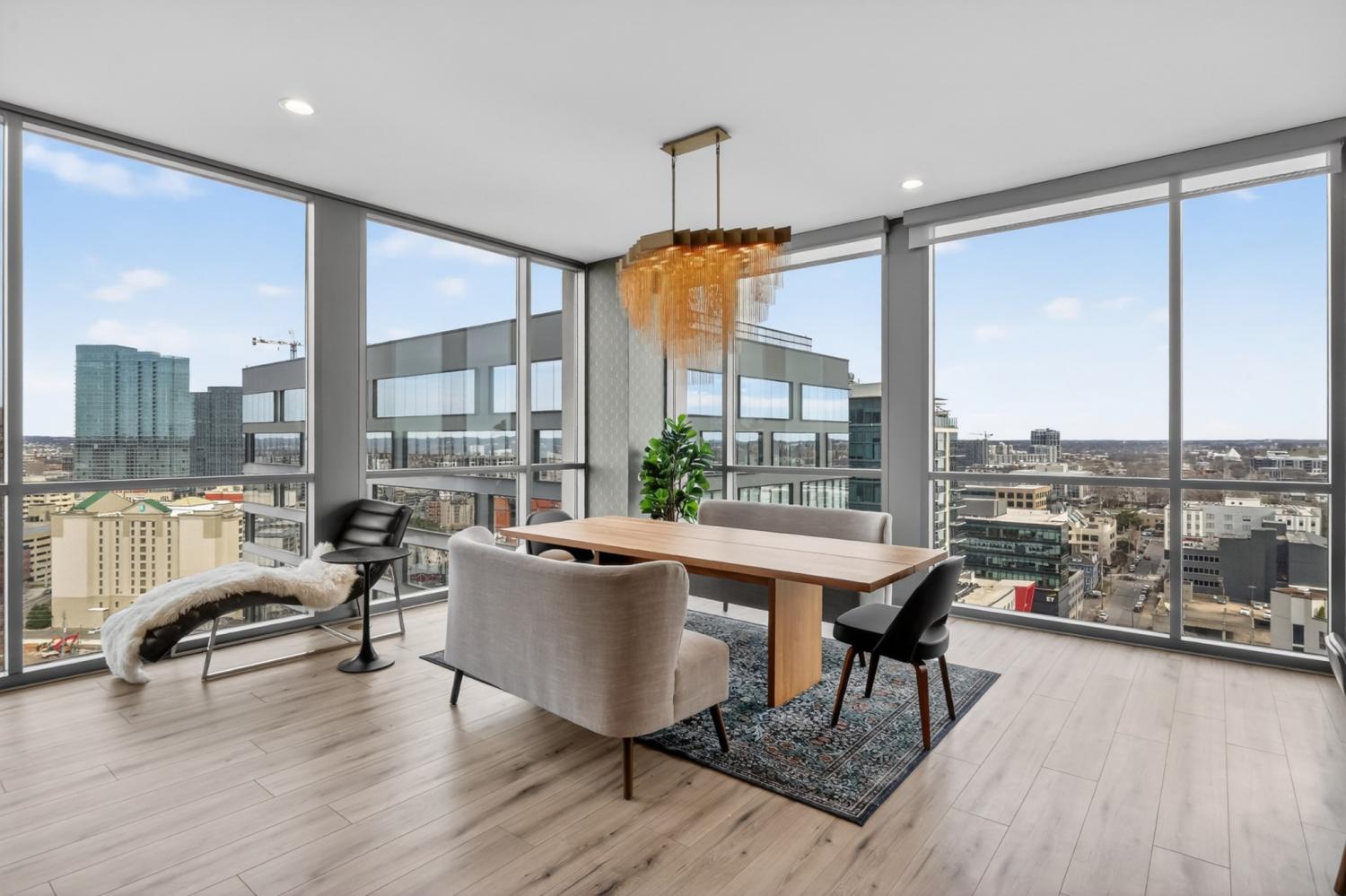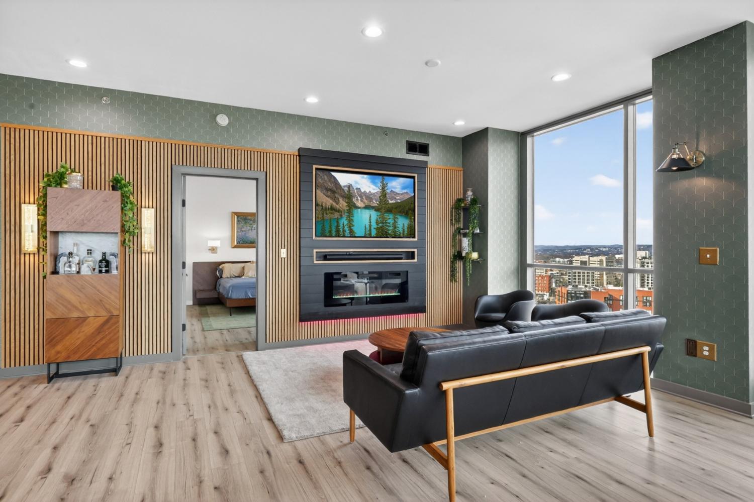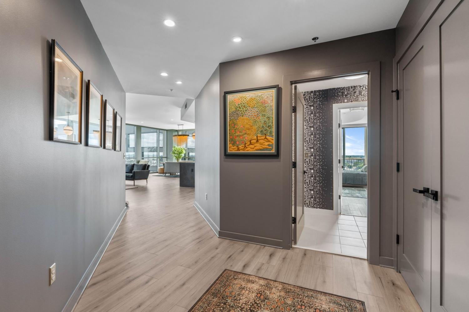 Exquisite North East end unit on the 16th floor at the Adelicia has under gone an extensive renovation! Peer out onto Nashville from this Art Deco stunning 2 bedroom/2 bathroom each with a balcony, floor to ceiling windows WOLF 36" gas range, Subzero refrigerator, new flooring, custom lighting, Delkton island, custom wall treatments throughout, automated shades & California closets, 2 assigned parking spaces, 1 storage unit, and much more! Residents enjoy top-notch amenities including 24 hour concierge, secure entry, an Olympic-size heated lap pool, a 3,000-square-foot fitness center, a private poolside lounge with catering kitchen, and an exclusive Adelicia Park. Additional perks include a gated parking garage, 24-hour security, private conference rooms, and a dog park.Walkable to Music Row, Midtown, Vanderbilt, and the Gulch.
