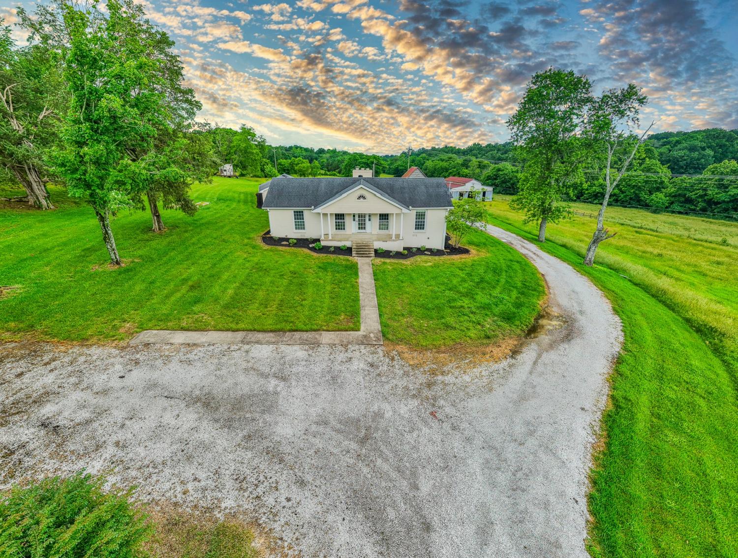 Welcome to your private slice of country paradise! This beautifully maintained 3-bed, 2-bath ranch-style home sits on over 7 picturesque acres, offering the perfect blend of comfort, functionality, and outdoor living. Recently perc'd for 10 bedrooms (whaaaaat?!?) there is AMPLE room for expansion! Step inside to find a warm, inviting layout with spacious living areas, a well-appointed kitchen, and cozy bedrooms—ideal for both everyday living and entertaining. Through the covered breezeway you will find an oversized heated and cooled 3 car garage. Outside, the possibilities are endless. A peaceful pond sets the scene for relaxing evenings or lazy weekend fishing, while a great playhouse offers a magical space for kids to explore and create memories. For those with hobbies, livestock, or equipment needs, this property includes a pole barn, a dedicated equipment barn, and a classic smokehouse—all ready for your next project or passion. Whether you're looking to homestead, start a hobby farm, or simply enjoy the beauty of country living, this property has it all.