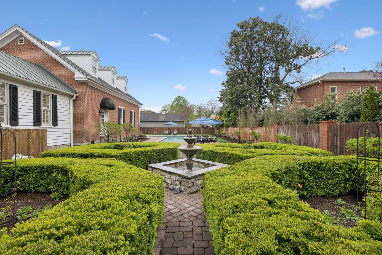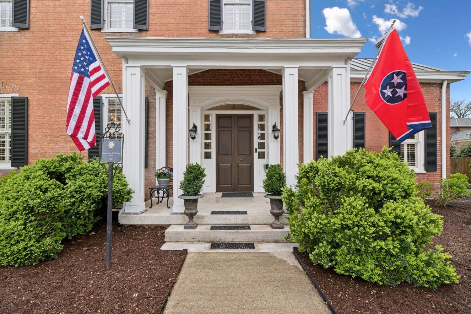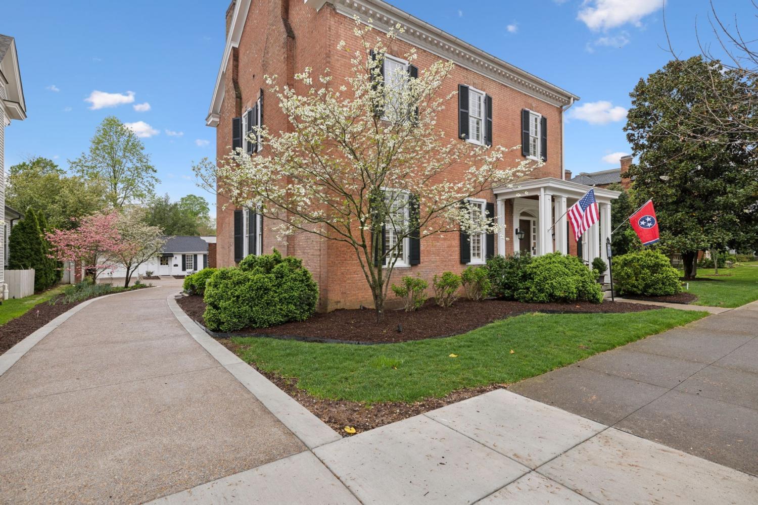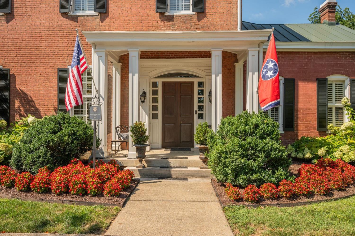 The iconic Saunders-Marshall-Wright House is the original brick home in Historic Downtown Franklin and dates to 1805. It is prominently located on prestigious 3rd Avenue South and is only one block from the town square. This stately home was extraordinarily well-constructed by master craftsmen to stand the test of time and it certainly has for the past 220 years while becoming even more beautiful and refined. The Federal-style home opens to a stunning foyer featuring 12 ft. soaring ceilings and an elegant handcrafted stair case with original poplar steps and oak railing. Original 1” thick tongue-in-groove ash floors grace the interior which was fully renovated by Tallman Enterprises and includes: Primary-on-the-main with luxurious ensuite featuring a heated Carrera marble floor, bidet, large air jet soaking tub, spacious walk-in marble shower with heated towel bar, custom walnut vanity and cabinets, and custom designed walk-in closet. The open and naturally lit chef’s kitchen features custom cabinetry, subzero refrigerator, Dacor six burner gas range, warming drawer, and new wall oven and dishwasher. The home also features a spacious 28x21’ den with an impressive stone wood-burning fireplace (2016), an attached 2.5 car garage includes additional storage and private driveway (replaced 2025), separate fully renovated (2021) walk-in guest house with complete kitchen and attached garage. A beach-entry L-shaped swimming pool (2013) compliments beautifully landscaped front, side and backyards which include fountains and a charming traditional English garden. The home has seven fireplaces and is handicap-accessible. GUEST HOUSE NOT INCLUDED IN SQUARE FOOTAGE.