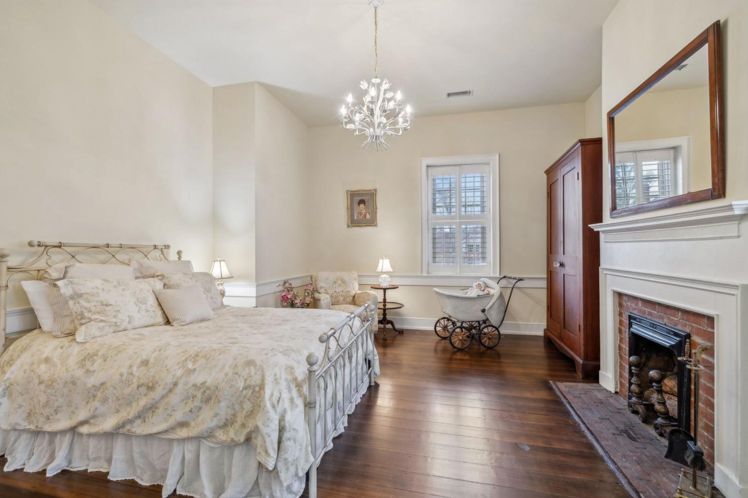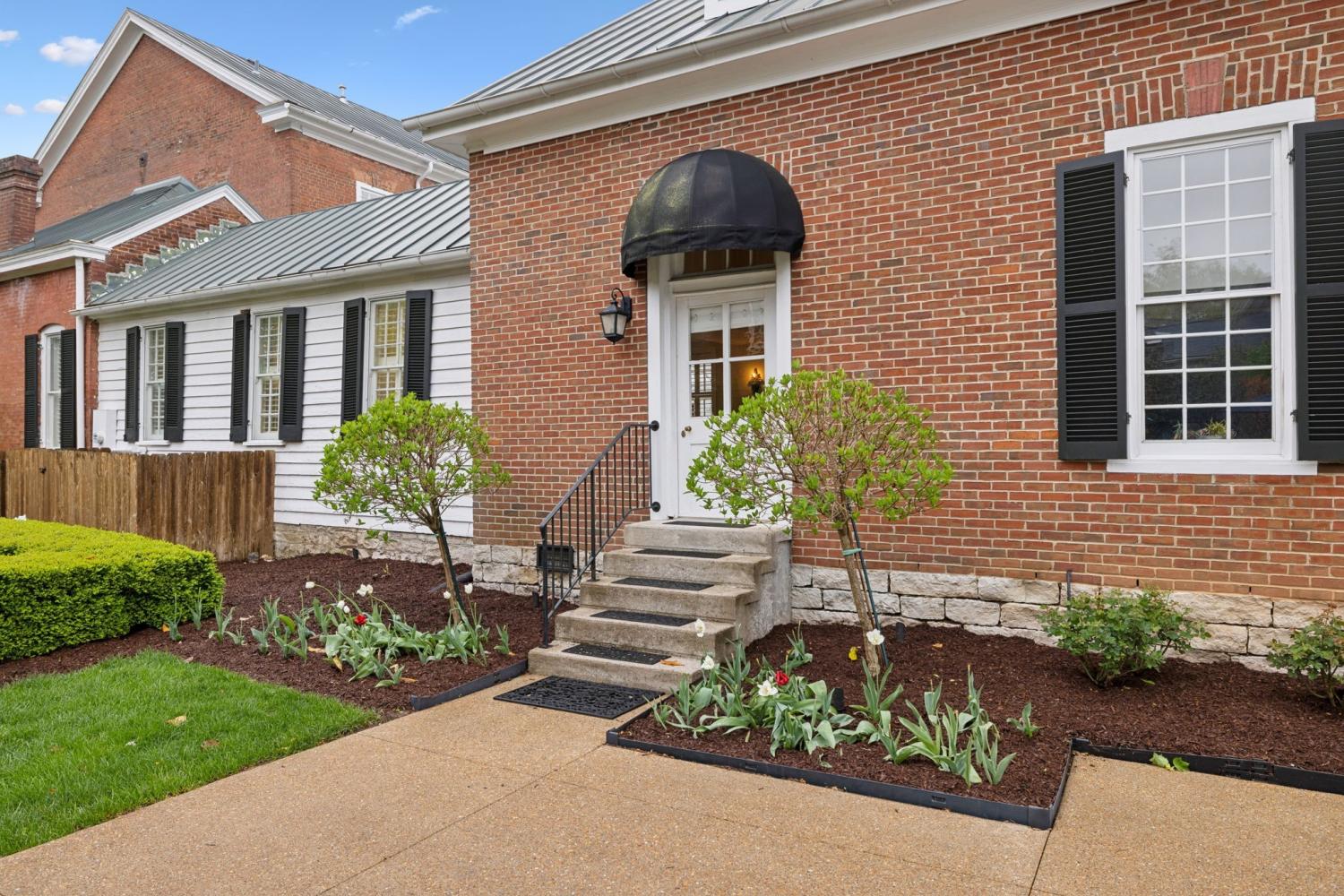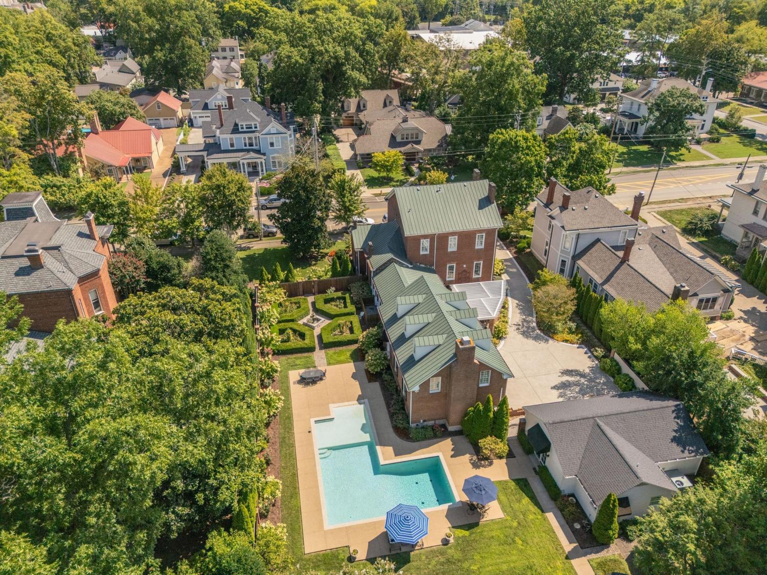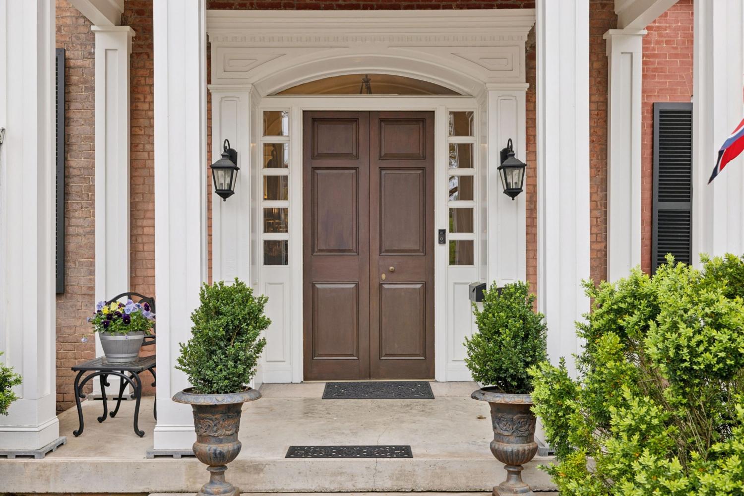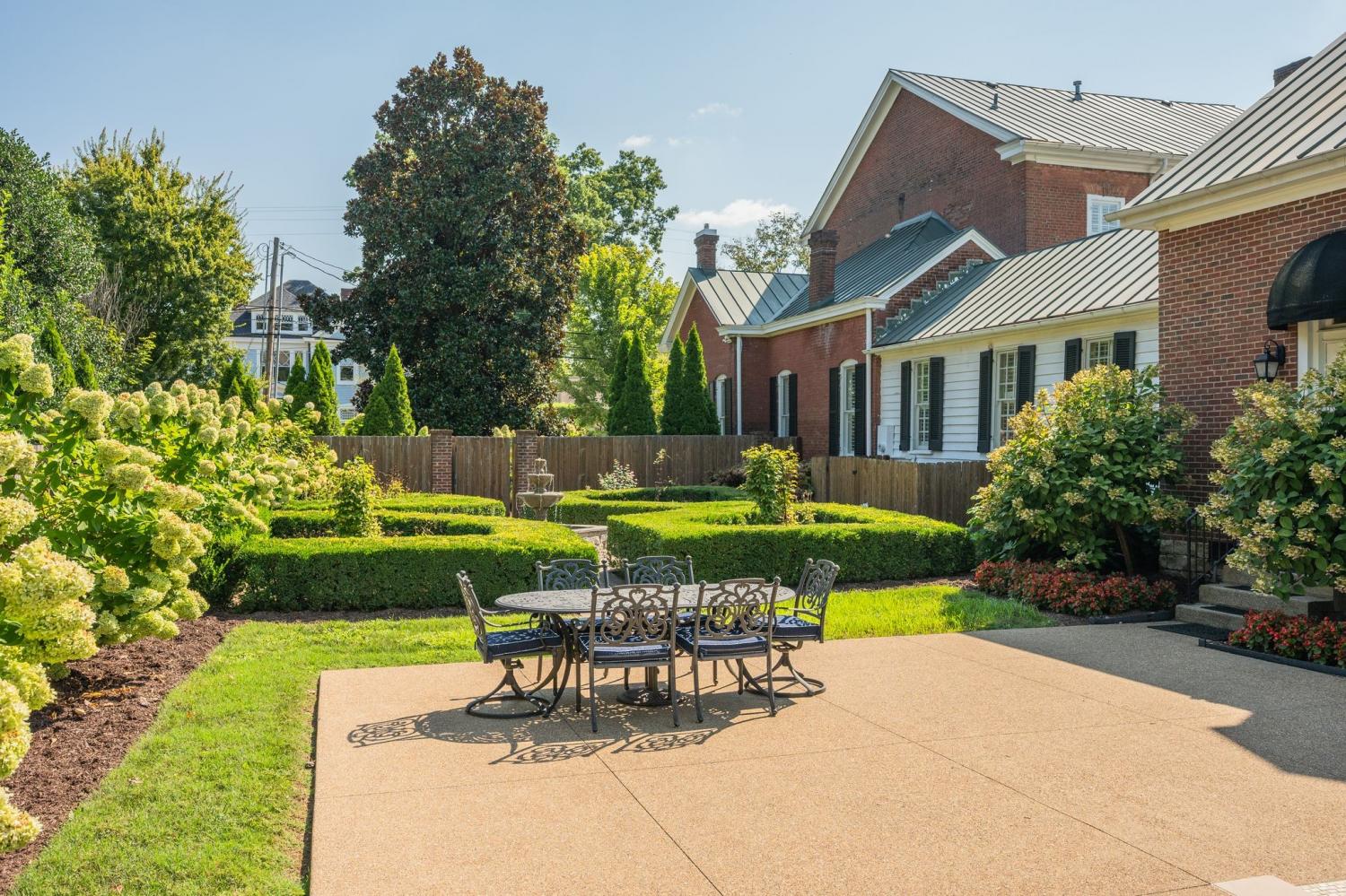 The iconic Saunders-Marshall-Wright House is the original brick home in Historic Downtown Franklin and dates to 1805. It is prominently located on prestigious 3rd Avenue South and is only one block from the town square. This stately home was extraordinarily well-constructed by master craftsmen to stand the test of time and it certainly has for the past 220 years while becoming even more beautiful and refined. The Federal-style home opens to a stunning foyer featuring 12 ft. soaring ceilings and an elegant handcrafted stair case with original poplar steps and oak railing. Original 1” thick tongue-in-groove ash floors grace the interior which was fully renovated by Tallman Enterprises and includes: Primary-on-the-main with luxurious ensuite featuring a heated Carrera marble floor, bidet, large air jet soaking tub, spacious walk-in marble shower with heated towel bar, custom walnut vanity and cabinets, and custom designed walk-in closet. The open and naturally lit chef’s kitchen features custom cabinetry, subzero refrigerator, Dacor six burner gas range, warming drawer, and new wall oven and dishwasher. The home also features a spacious 28x21’ den with an impressive stone wood-burning fireplace (2016), an attached 2.5 car garage includes additional storage and private driveway (replaced 2025), separate fully renovated (2021) walk-in guest house with complete kitchen and attached garage. A beach-entry L-shaped swimming pool (2013) compliments beautifully landscaped front, side and backyards which include fountains and a charming traditional English garden. The home has seven fireplaces and is handicap-accessible. GUEST HOUSE NOT INCLUDED IN SQUARE FOOTAGE.