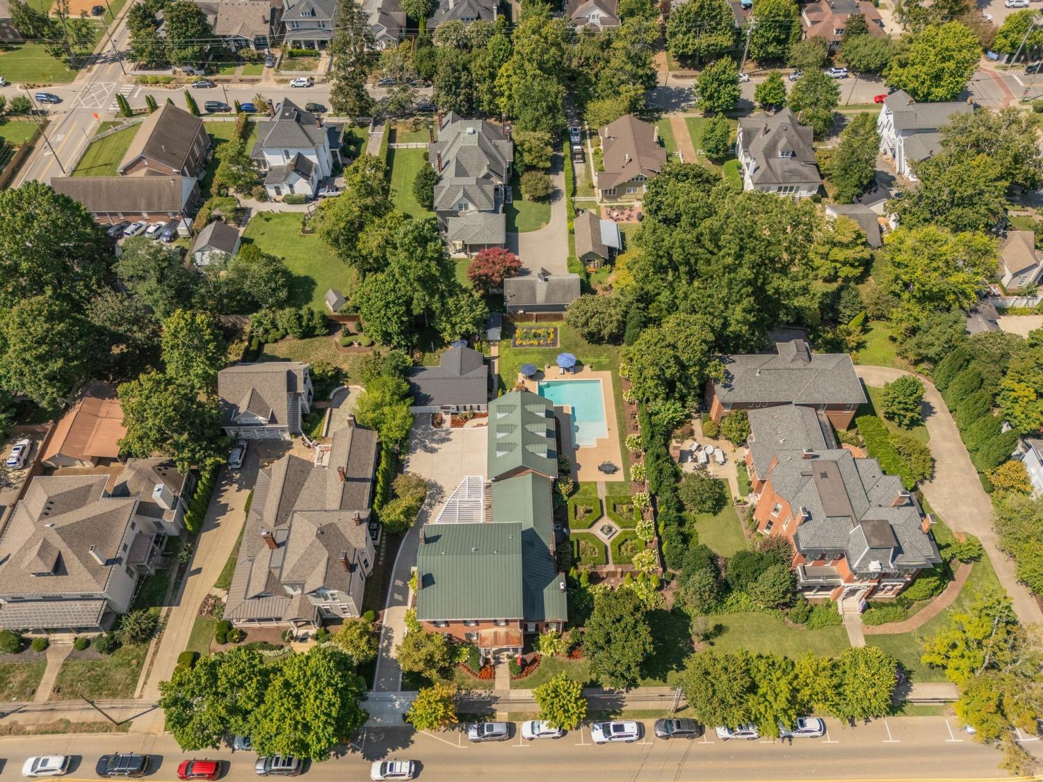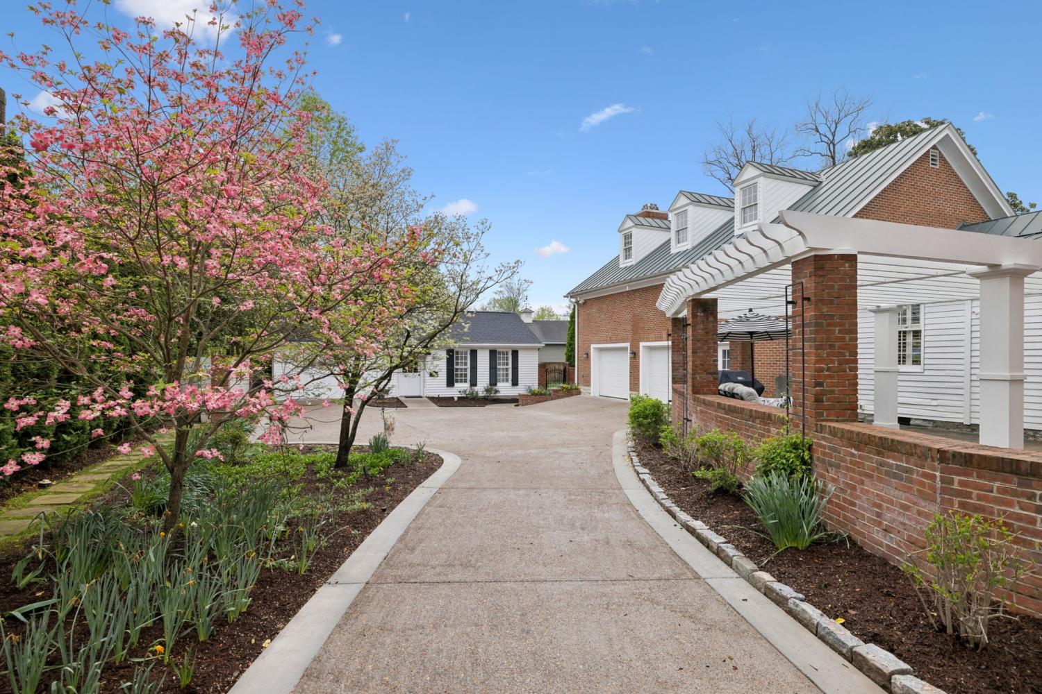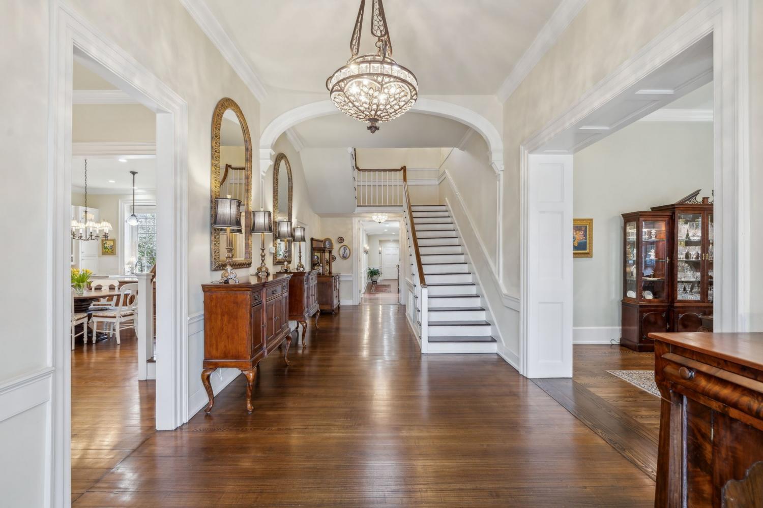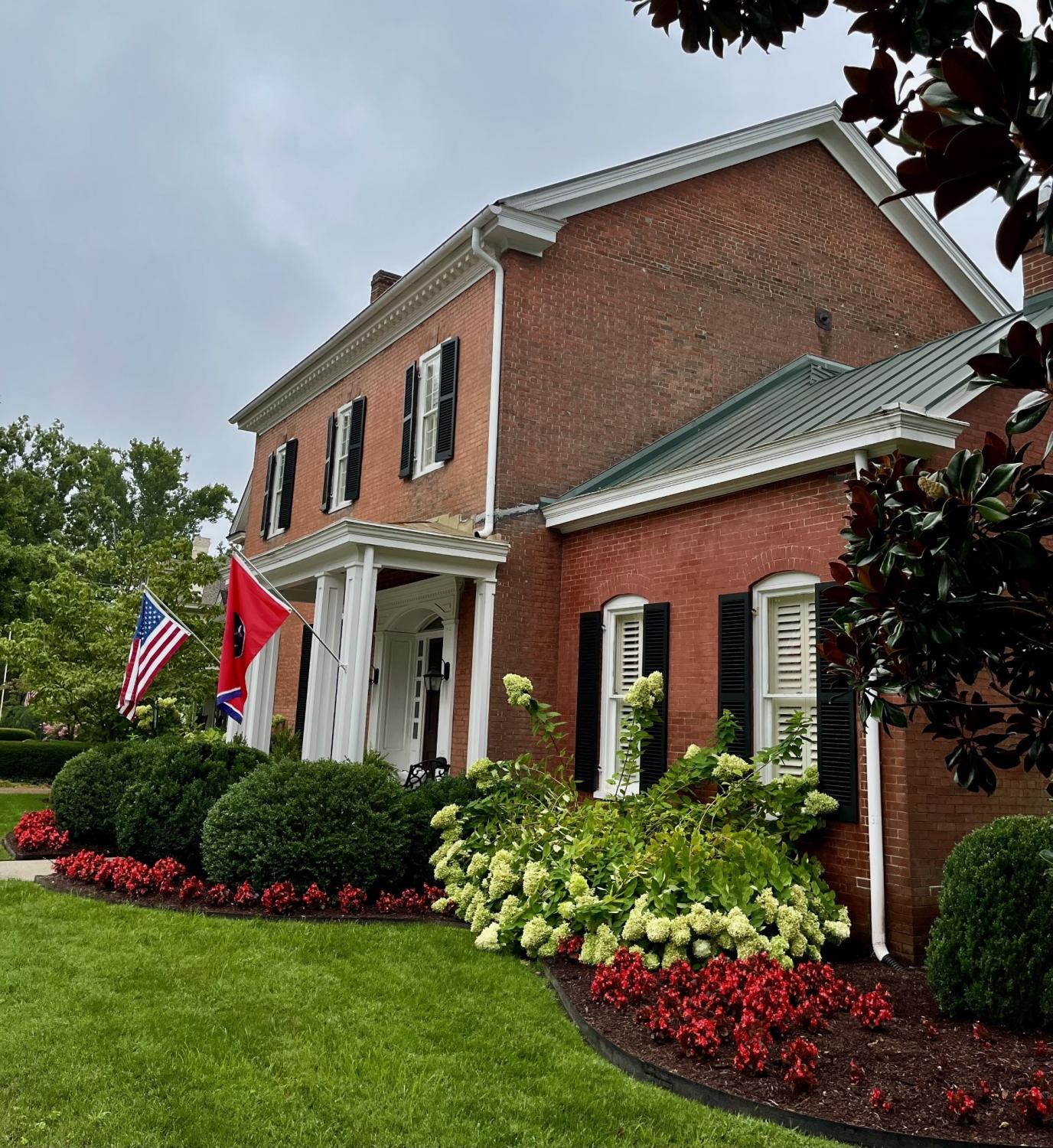 The iconic Saunders-Marshall-Wright House is the original brick home in Historic Downtown Franklin and dates to 1805. It is prominently located on prestigious 3rd Avenue South and is only one block from the town square. This stately home was extraordinarily well-constructed by master craftsmen to stand the test of time and it certainly has for the past 220 years while becoming even more beautiful and refined. The Federal-style home opens to a stunning foyer featuring 12 ft. soaring ceilings and an elegant handcrafted stair case with original poplar steps and oak railing. Original 1” thick tongue-in-groove ash floors grace the interior which was fully renovated by Tallman Enterprises and includes: Primary-on-the-main with luxurious ensuite featuring a heated Carrera marble floor, bidet, large air jet soaking tub, spacious walk-in marble shower with heated towel bar, custom walnut vanity and cabinets, and custom designed walk-in closet. The open and naturally lit chef’s kitchen features custom cabinetry, subzero refrigerator, Dacor six burner gas range, warming drawer, and new wall oven and dishwasher. The home also features a spacious 28x21’ den with an impressive stone wood-burning fireplace (2016), an attached 2.5 car garage includes additional storage and private driveway (replaced 2025), separate fully renovated (2021) walk-in guest house with complete kitchen and attached garage. A beach-entry L-shaped swimming pool (2013) compliments beautifully landscaped front, side and backyards which include fountains and a charming traditional English garden. The home has seven fireplaces and is handicap-accessible. GUEST HOUSE NOT INCLUDED IN SQUARE FOOTAGE.
