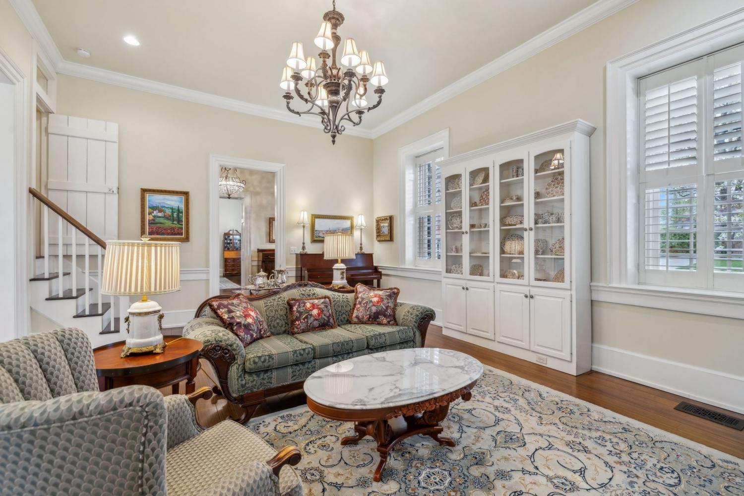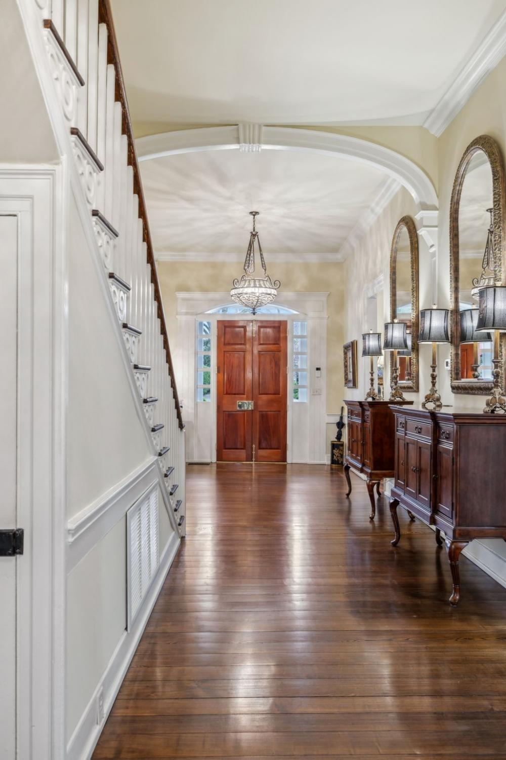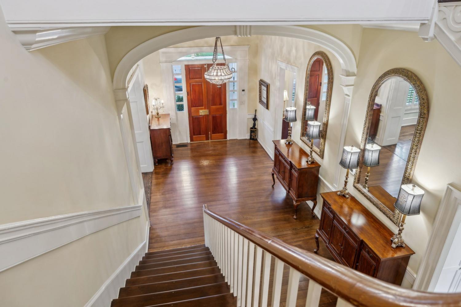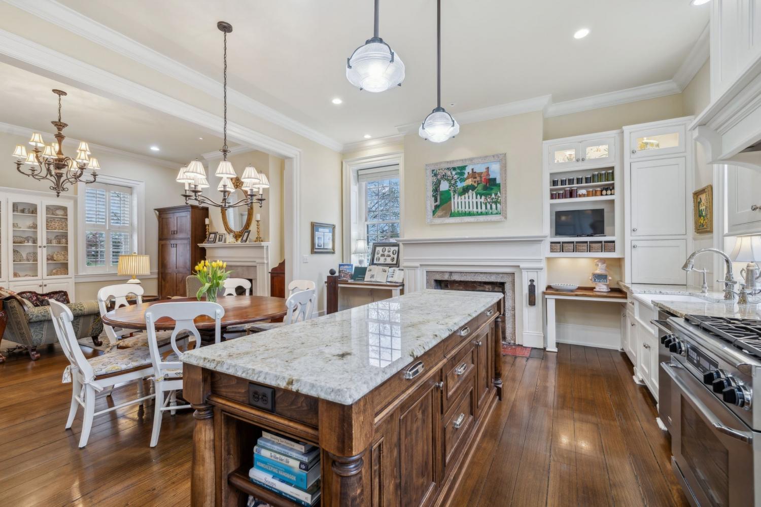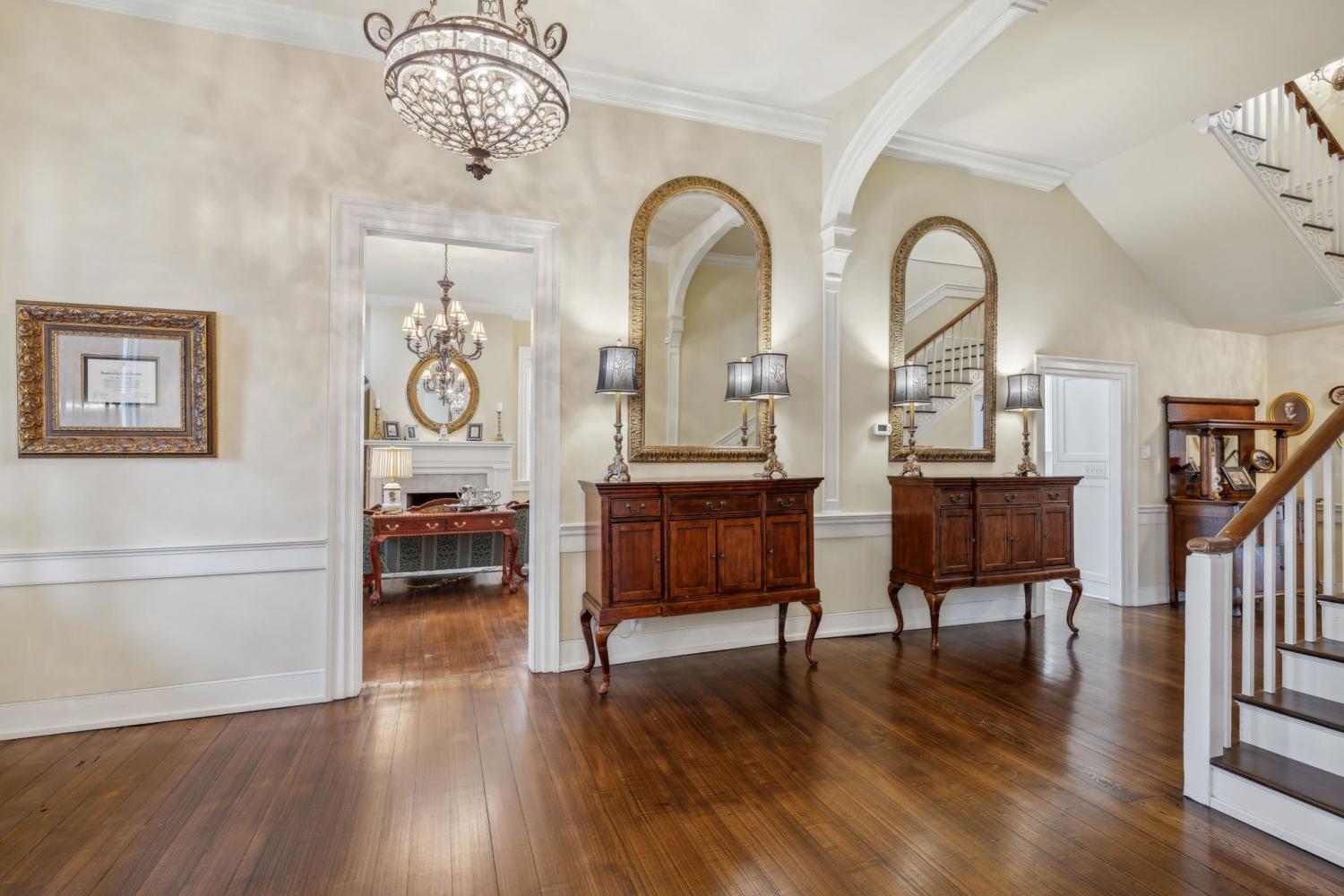 The iconic Saunders-Marshall-Wright House is the original brick home in Historic Downtown Franklin and dates to 1805. It is prominently located on prestigious 3rd Avenue South and is only one block from the town square. This stately home was extraordinarily well-constructed by master craftsmen to stand the test of time and it certainly has for the past 220 years while becoming even more beautiful and refined. The Federal-style home opens to a stunning foyer featuring 12 ft. soaring ceilings and an elegant handcrafted stair case with original poplar steps and oak railing. Original 1” thick tongue-in-groove ash floors grace the interior which was fully renovated by Tallman Enterprises and includes: Primary-on-the-main with luxurious ensuite featuring a heated Carrera marble floor, bidet, large air jet soaking tub, spacious walk-in marble shower with heated towel bar, custom walnut vanity and cabinets, and custom designed walk-in closet. The open and naturally lit chef’s kitchen features custom cabinetry, subzero refrigerator, Dacor six burner gas range, warming drawer, and new wall oven and dishwasher. The home also features a spacious 28x21’ den with an impressive stone wood-burning fireplace (2016), an attached 2.5 car garage includes additional storage and private driveway (replaced 2025), separate fully renovated (2021) walk-in guest house with complete kitchen and attached garage. A beach-entry L-shaped swimming pool (2013) compliments beautifully landscaped front, side and backyards which include fountains and a charming traditional English garden. The home has seven fireplaces and is handicap-accessible. GUEST HOUSE NOT INCLUDED IN SQUARE FOOTAGE.