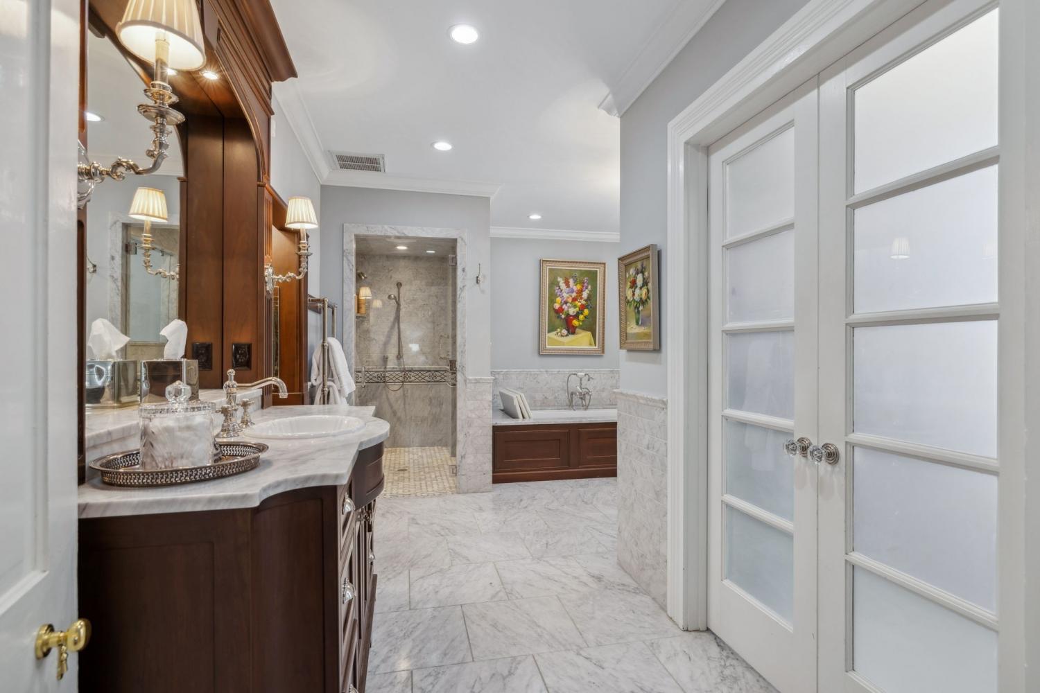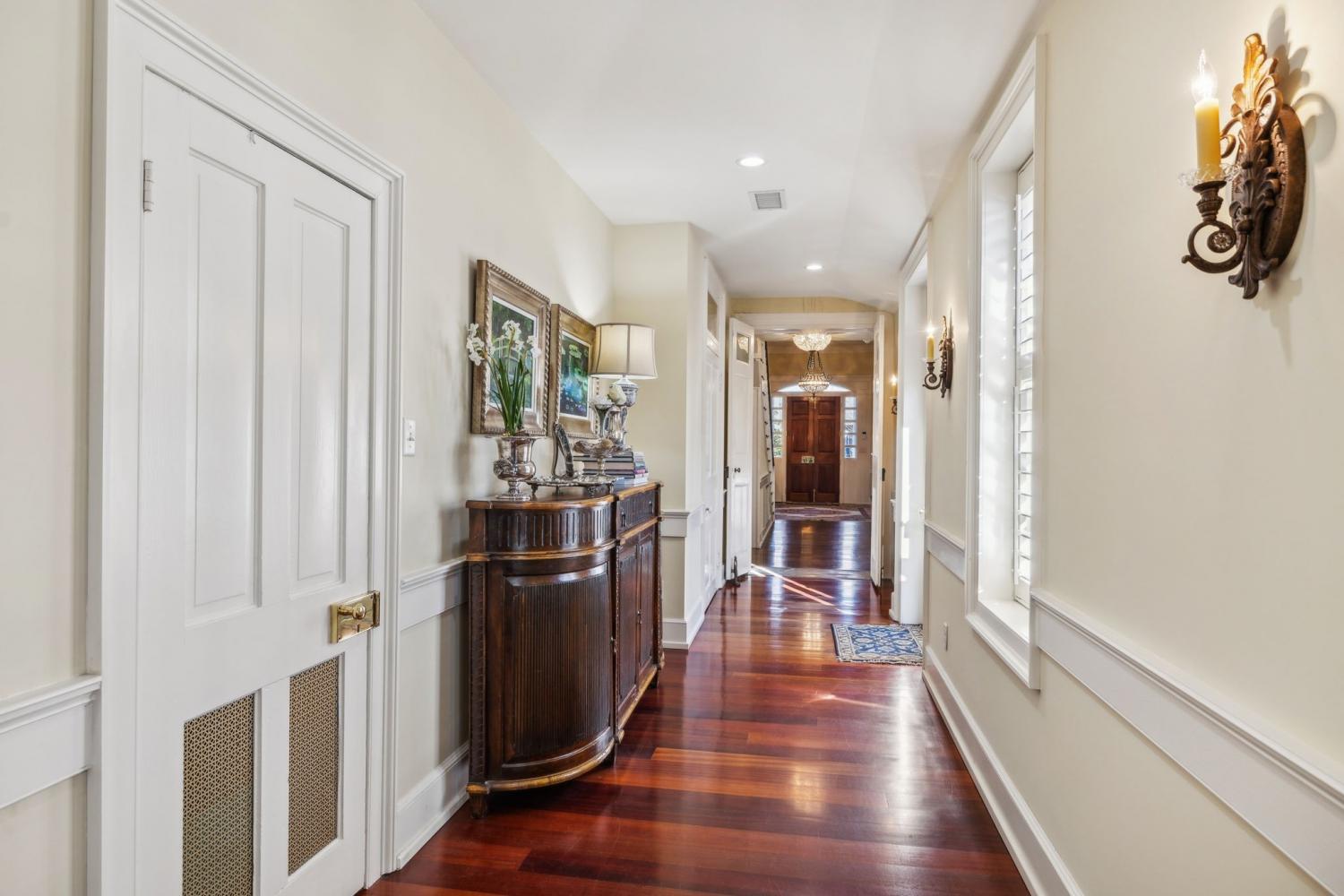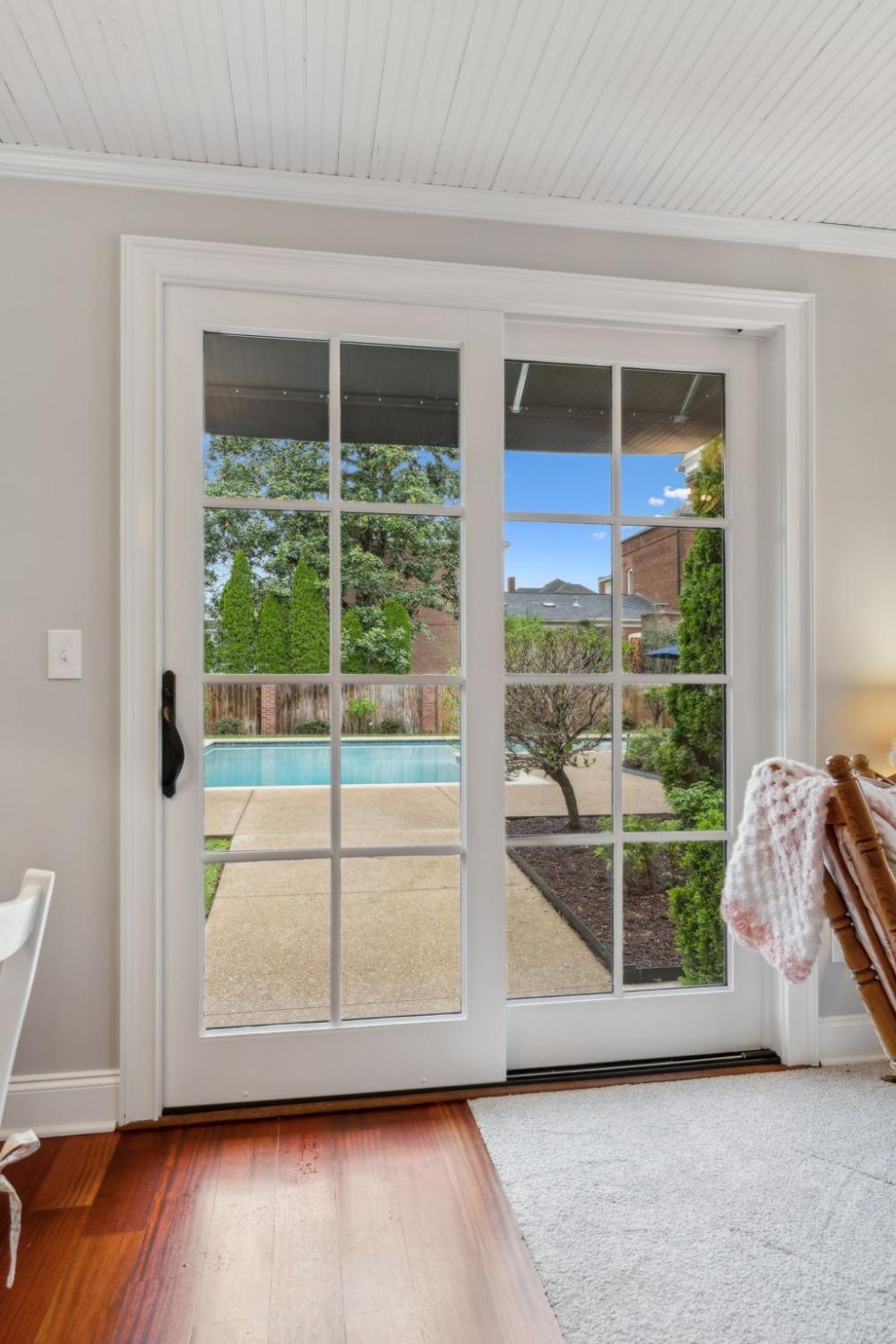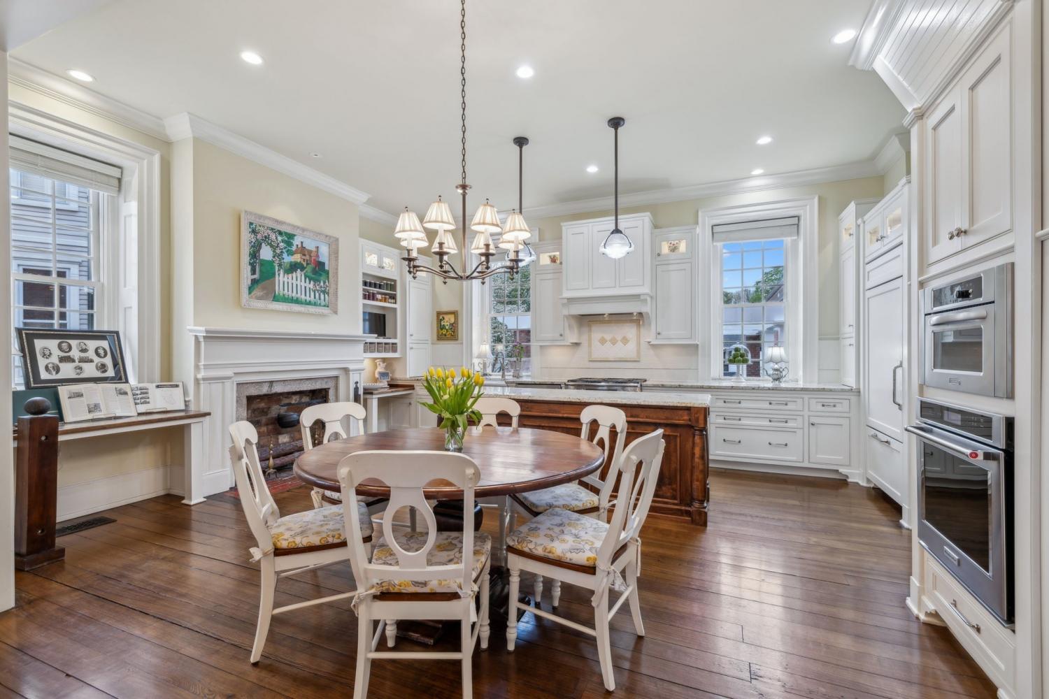 The iconic Saunders-Marshall-Wright House is the original brick home in Historic Downtown Franklin and dates to 1805. It is prominently located on prestigious 3rd Avenue South and is only one block from the town square. This stately home was extraordinarily well-constructed by master craftsmen to stand the test of time and it certainly has for the past 220 years while becoming even more beautiful and refined. The Federal-style home opens to a stunning foyer featuring 12 ft. soaring ceilings and an elegant handcrafted stair case with original poplar steps and oak railing. Original 1” thick tongue-in-groove ash floors grace the interior which was fully renovated by Tallman Enterprises and includes: Primary-on-the-main with luxurious ensuite featuring a heated Carrera marble floor, bidet, large air jet soaking tub, spacious walk-in marble shower with heated towel bar, custom walnut vanity and cabinets, and custom designed walk-in closet. The open and naturally lit chef’s kitchen features custom cabinetry, subzero refrigerator, Dacor six burner gas range, warming drawer, and new wall oven and dishwasher. The home also features a spacious 28x21’ den with an impressive stone wood-burning fireplace (2016), an attached 2.5 car garage includes additional storage and private driveway (replaced 2025), separate fully renovated (2021) walk-in guest house with complete kitchen and attached garage. A beach-entry L-shaped swimming pool (2013) compliments beautifully landscaped front, side and backyards which include fountains and a charming traditional English garden. The home has seven fireplaces and is handicap-accessible. GUEST HOUSE NOT INCLUDED IN SQUARE FOOTAGE.