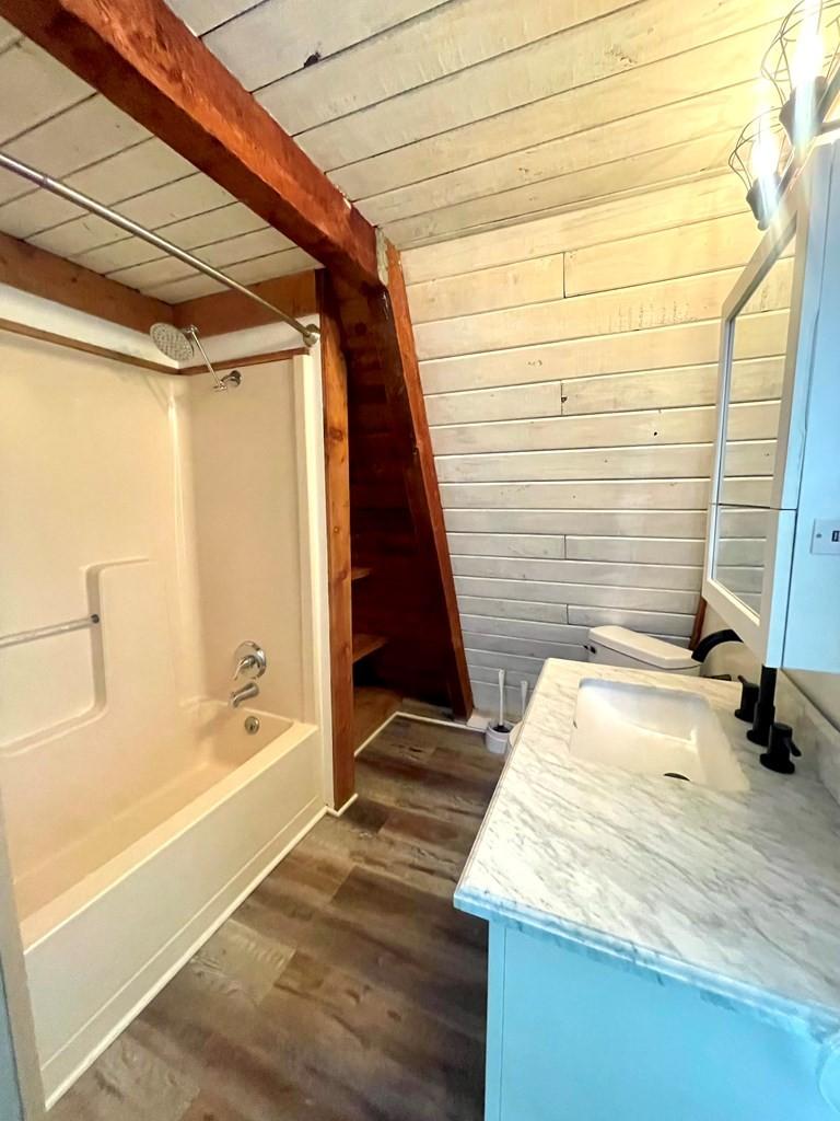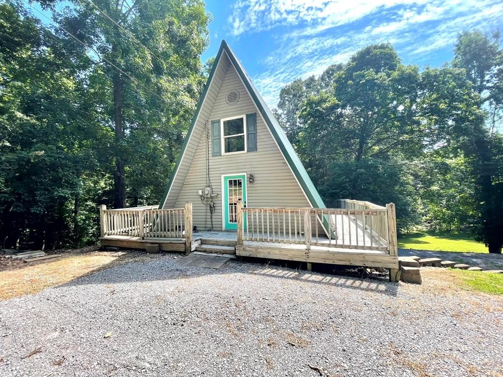 Welcome to your dream lakeside retreat! This property features an A frame cabin, a 30x40 detached garage/shop, and a stunning view of beautiful Lake Barkley. This property consists of four adjoining tracts of land in the Driftwood Estates Subdivision and all four tracts adjoin the subdivision's Grand Central Park Recreation Area. There is an access trail leading from the house to the Recreation Area where the lake can be accessed. This property is also eligible for high speed fiber optic internet through HES EnergyNet. Listing agent is unsure of actual lot size. A Subdivision Plat is available for review, but shows no sizes for the parcels. Being sold AS IS. Seller is aware that it will need a new HVAC unit.