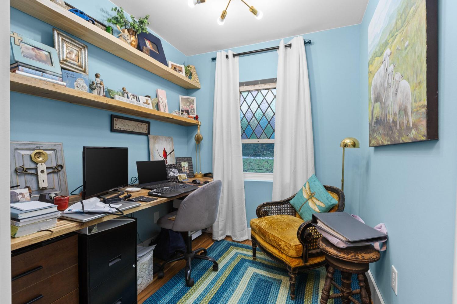 A former church reimagined into a private modern sanctuary—just minutes from downtown Chattanooga. Welcome to 824 Ogrady Dr., where inspired design, custom craftsmanship, and exceptional indoor-outdoor living come together in a truly unforgettable home. Set on 1.5 fully fenced acres in peaceful Lookout Valley, this completely renovate 3-bedroom, 2.5-bath home offers over 3,600 square feet of thoughtfully designed living space, all on one level. As you approach, the charm begins with professional landscaping, a wide covered porch, and a striking mid-century modern front door that leads into rich Asian Walnut hardwood flooring throughout. Just off the entry, you'll find a flexible office or fourth bedroom, along with a stylish half bath. The heart of the home opens into a dramatic great room with soaring cathedral ceilings and custom woodwork, perfectly designed for entertaining. The show-stopping kitchen is a true centerpiece, featuring marble countertops and backsplash, high-end custom cabinetry, and an open flow into the living space with a modern electric fireplace that adds both ambiance and warmth. Past the kitchen, a heated and cooled breezeway creates a seamless transition to the outdoors, opening onto a private, fenced courtyard complete with turf and overhead café lighting—ideal for morning coffee or evening gatherings under the stars. This hidden retreat offers total privacy and unmatched charm. The primary suite is tucked away in its own wing and features a completely custom walk-in closet with a moveable island and a spa-inspired bath with a soaking tub, luxurious tile shower, and elegant finishes. Down the hall, a well-designed utility room keeps all your systems organized and accessible, and a second full bath serves two additional bedrooms with style—featuring custom tile, backlit mirrors, and modern fixtures.
