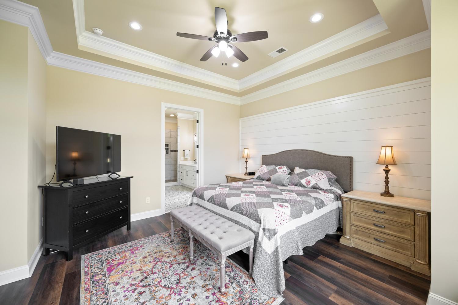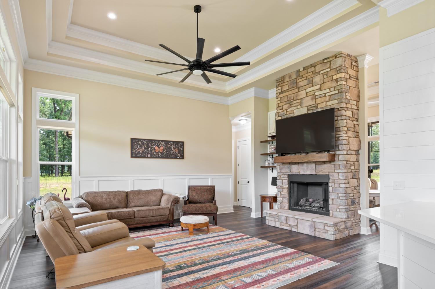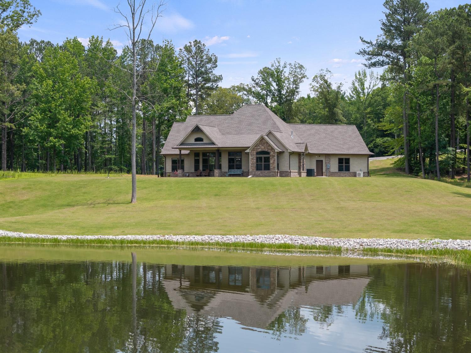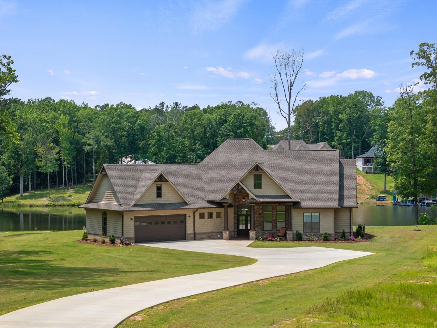 Custom lake home on Lake Halford in Huntingdon, TN built in 2024! 4BR/2BA with expansive view of the lake in Sterling Shores. Home has numerous custom top tier features including: soft close cabinets, quartz counter tops, stone fireplace with gas logs, back patio overlooking the lake, tiled Master Bedroom shower with soaking tub, walk-in closets, tankless water heater, Bermuda grass yard with an easy walk to your shoreline. This property is ready for your dock and boat! The 1000 Acre Lake (currently Lake Halford) is ideal for recreational boating and trophy bass fishing. Tennessee has designated the lake as a Bill Dance Signature Lake with lots of fishery improvements under way. Underground electric, natural gas, and private well. High speed Spectrum internet currently being installed in this area.