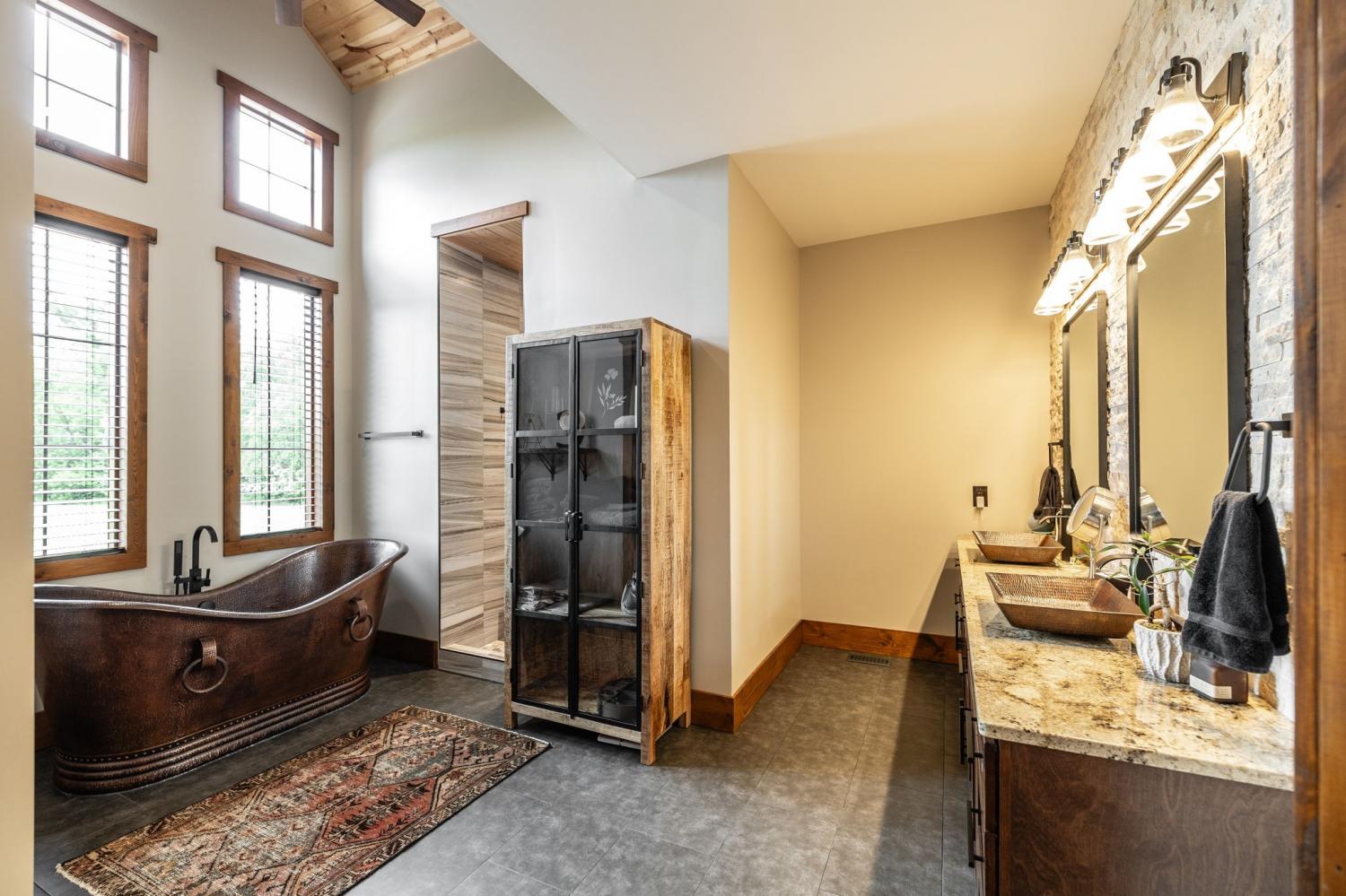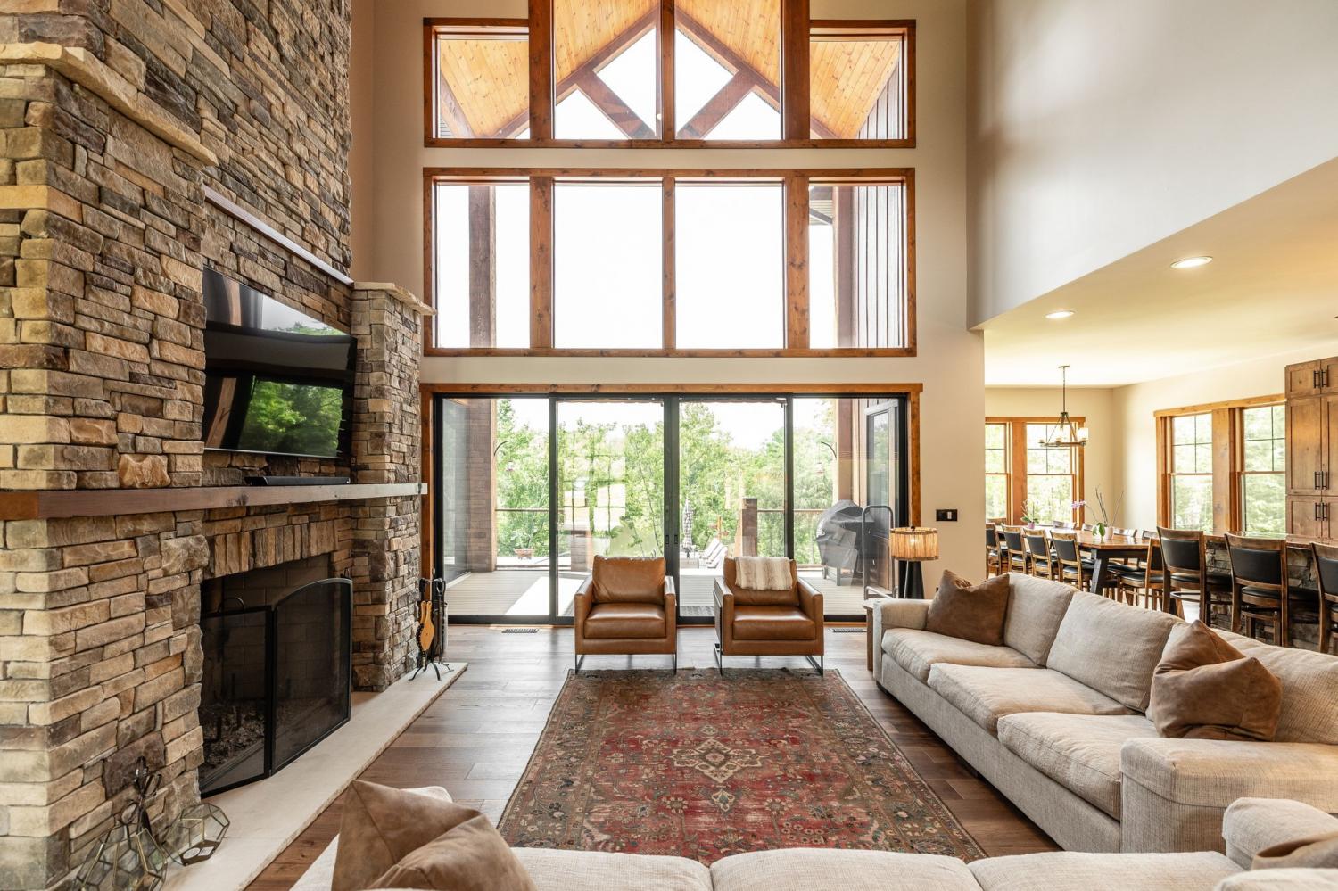 Stunning 5BR/5.3BA Luxury Lakefront Home with Private Cove & Boat Slip This one-of-a-kind lakefront estate offers 5 bedrooms, 5 full baths, 3 half baths, 2 bonus rooms, and an office used as a 6th bedroom. Highlights include walk-in closets with custom cabinets, dual laundry rooms, a dog bath, and a show-stopping 28-ft ceiling living room with a 24-ft wood-burning fireplace. Chef’s kitchen with Hickory cabinets, granite & butcher block counters, black walnut bar top, double ovens, gas cooktop, ice maker, and double refrigerator. Enjoy a copper tub, custom stairs, wideplank Hickory floors, and tongue & groove ceilings throughout. Outdoor features: heated/cooled automated pool, travertine deck, hot tub, screened porch, and TimberTech decking. Exterior includes Diamond Kote siding, stone, architectural shingles, metal roof, and stamped concrete. Extras: 350 ft lake frontage, 26-ft covered boat slip with lift, 9-ft steel front door, 16-ft & 9-ft glass sliders, custom garage doors, 3-car attached garage, 4-car detached (fits 8 w/lifts), all with 13-ft ceilings. A true luxury retreat—inside and out.