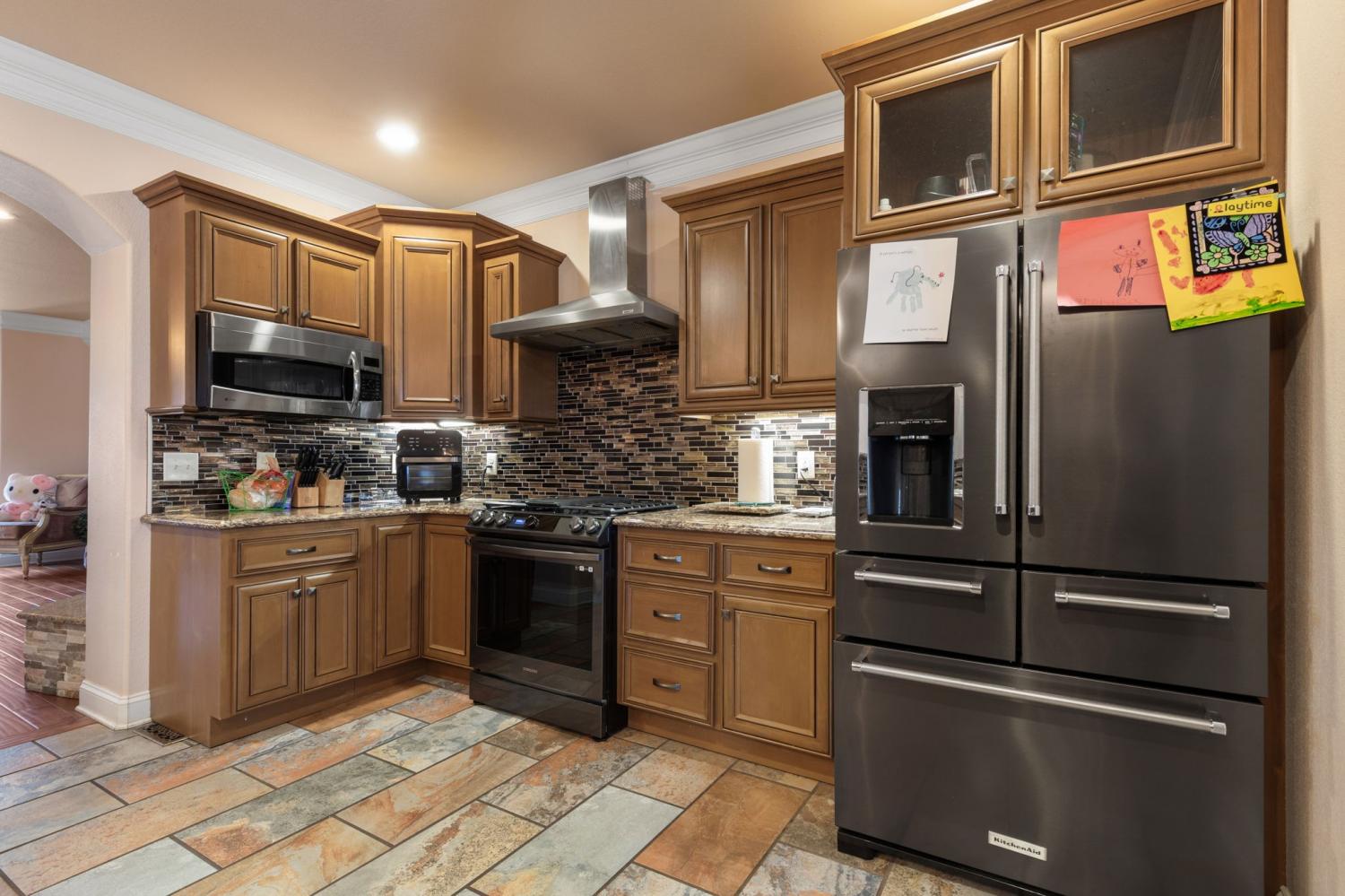 Beautifully updated 4BR/3.5BA home in desirable Smyrna location featuring TWO primary suites with private baths—perfect for multi-generational living or guest privacy. The custom kitchen includes granite countertops, stainless steel appliances, walk-in pantry, and upgraded cabinetry. Tile and hardwood flooring throughout main living areas. Detailed crown molding and custom trim work add elegance throughout the home. Enjoy multiple outdoor entertaining spaces ideal for gatherings or quiet relaxation. Spacious layout with flexible living options and well-appointed bathrooms. This home is move-in ready and offers a unique combination of luxury and functionality in a prime location.