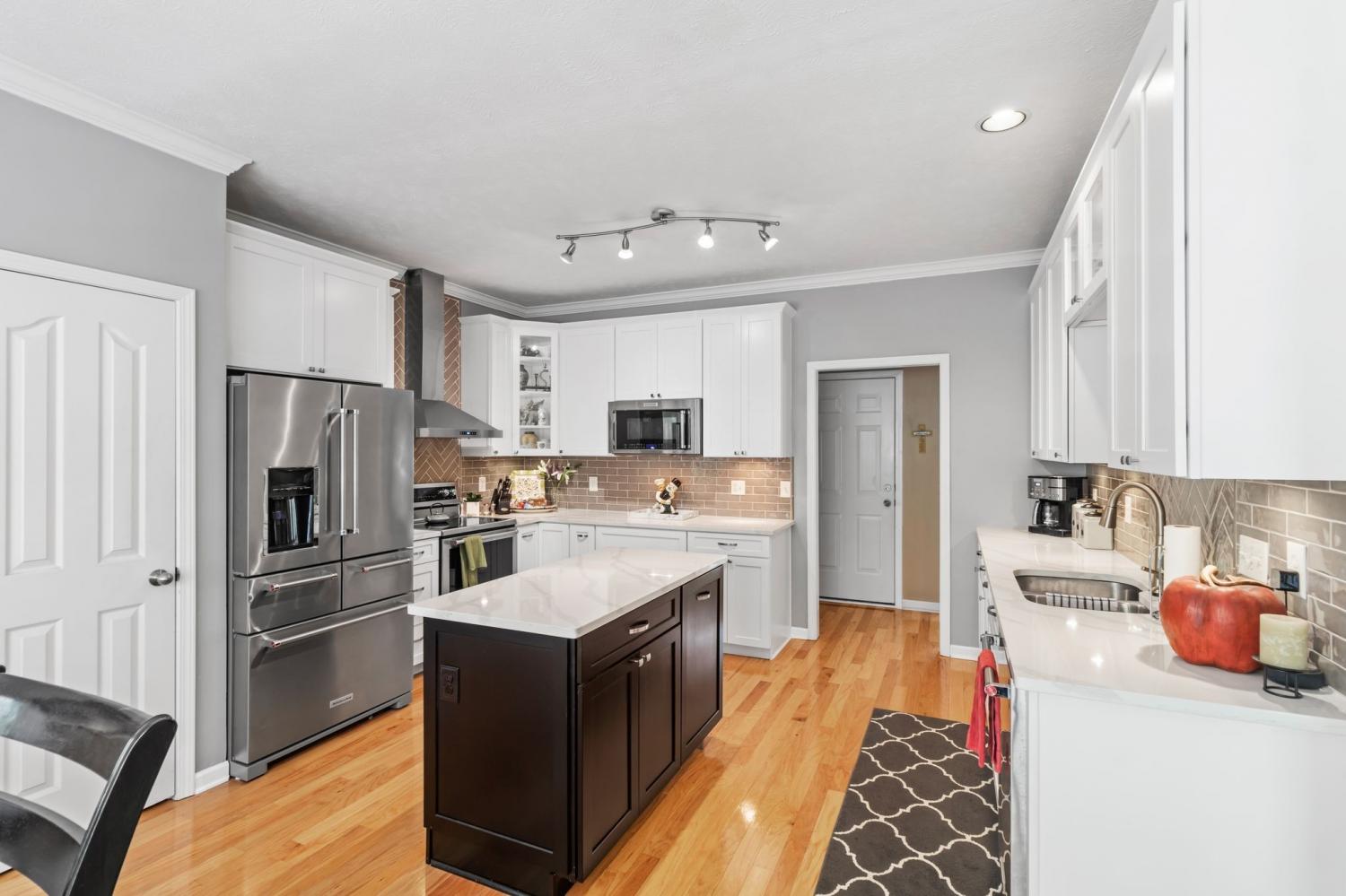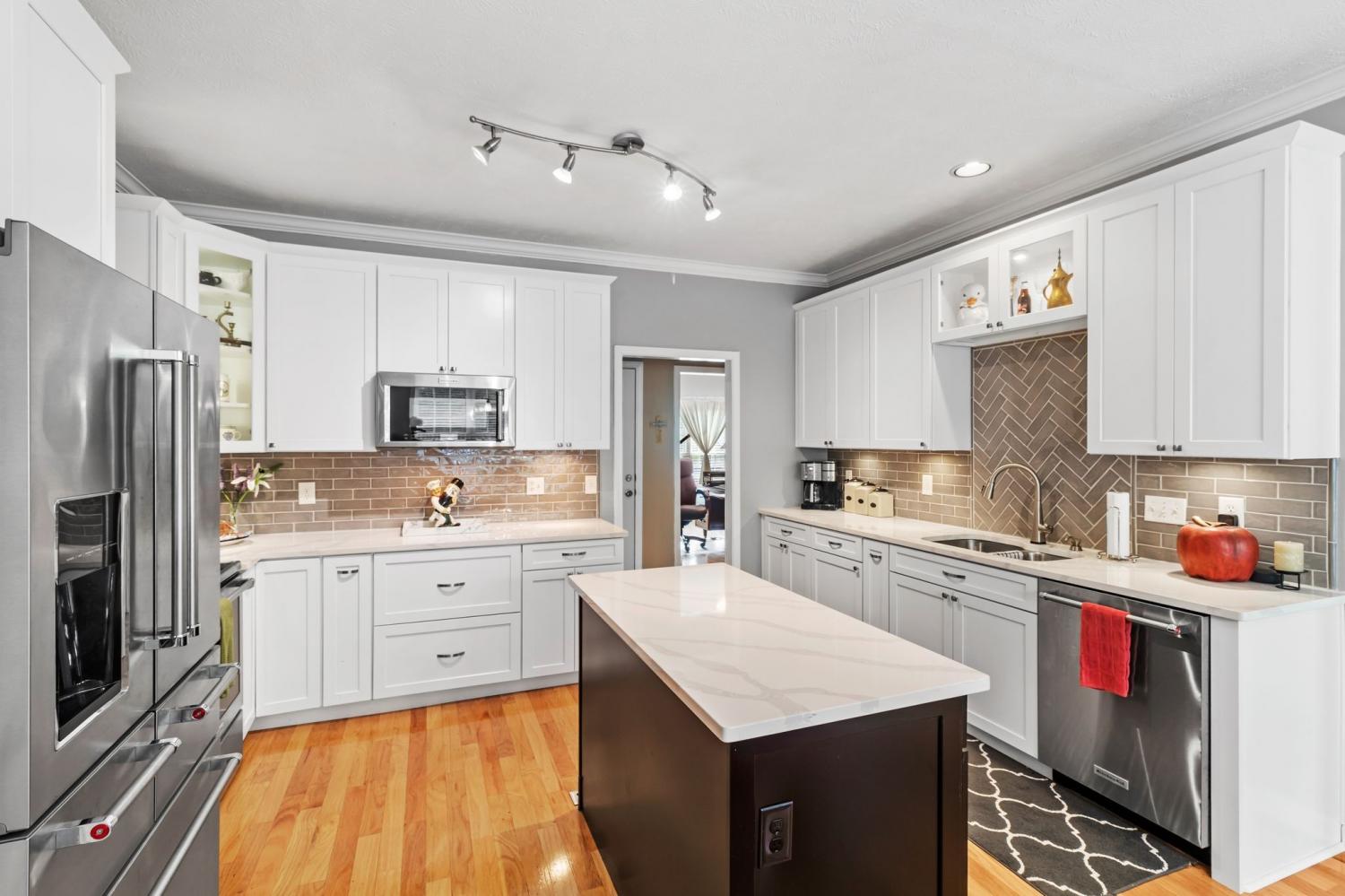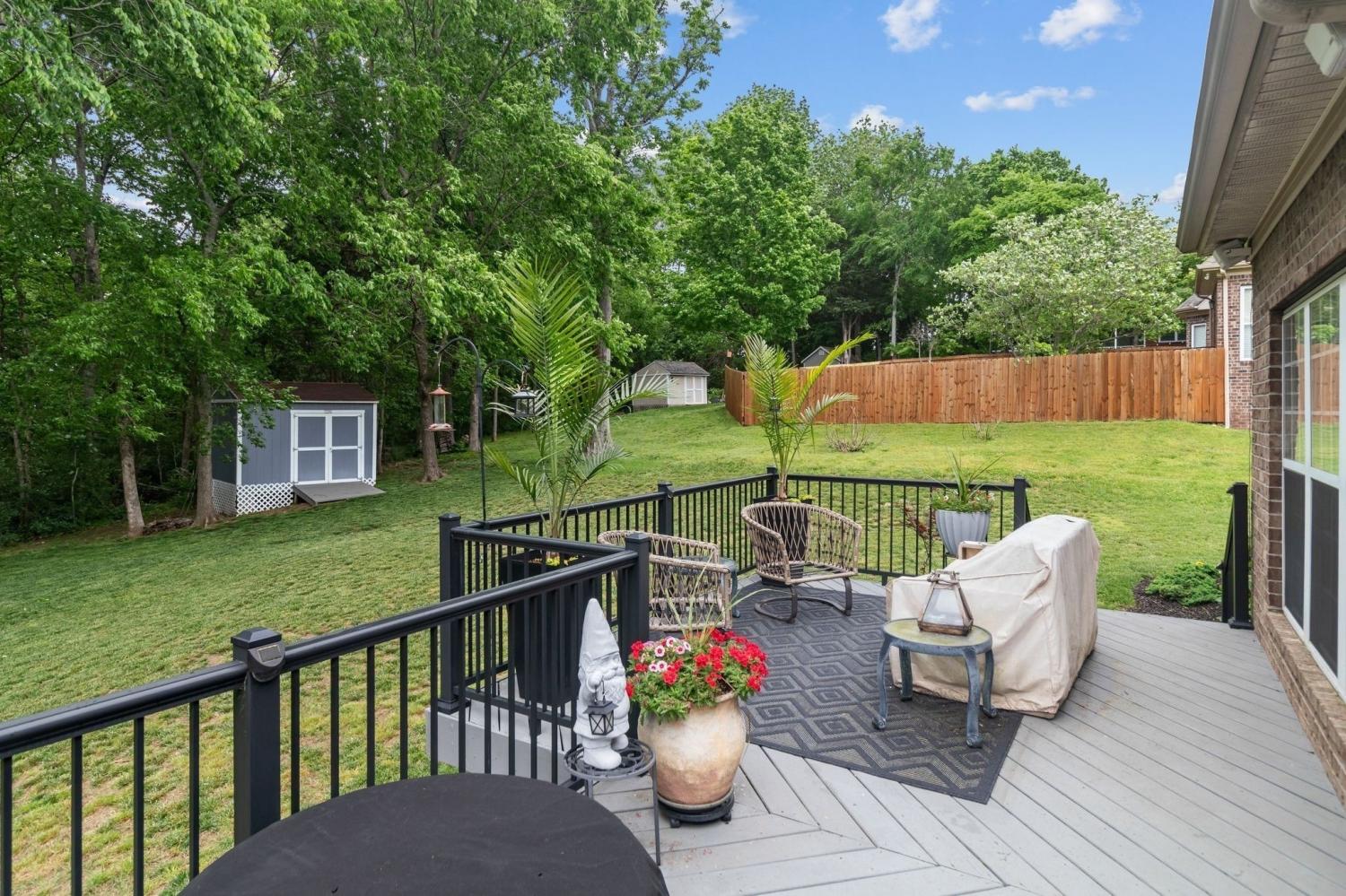 Beautifully Updated 4-Bedroom Brick Home on .39 acre lot in Sought-After McFarlin Pointe! This stunning home offers an open, functional layout and numerous high-end upgrades. The remodeled kitchen features brand-new soft-close cabinets, striking quartz countertops, an island, ss range hood and a stylish tile backsplash. The renovated primary bath boasts a spa-inspired tiled shower, freestanding tub, and new cabinetry. Hardwood floors flow through the main living areas and primary suite, with new carpet in all secondary bedrooms and the large bonus room. Ideal for multi-generational living, the main level includes two bedrooms and two full baths. Upstairs, you'll find two spacious bedrooms with a Jack and Jill bath. Enjoy outdoor living on the expansive deck with aluminum railings, overlooking a private, wooded backyard. Additional highlights include a formal dining room with wainscoting, a tray ceiling in the primary bedroom, and a storage shed that remains with the property.