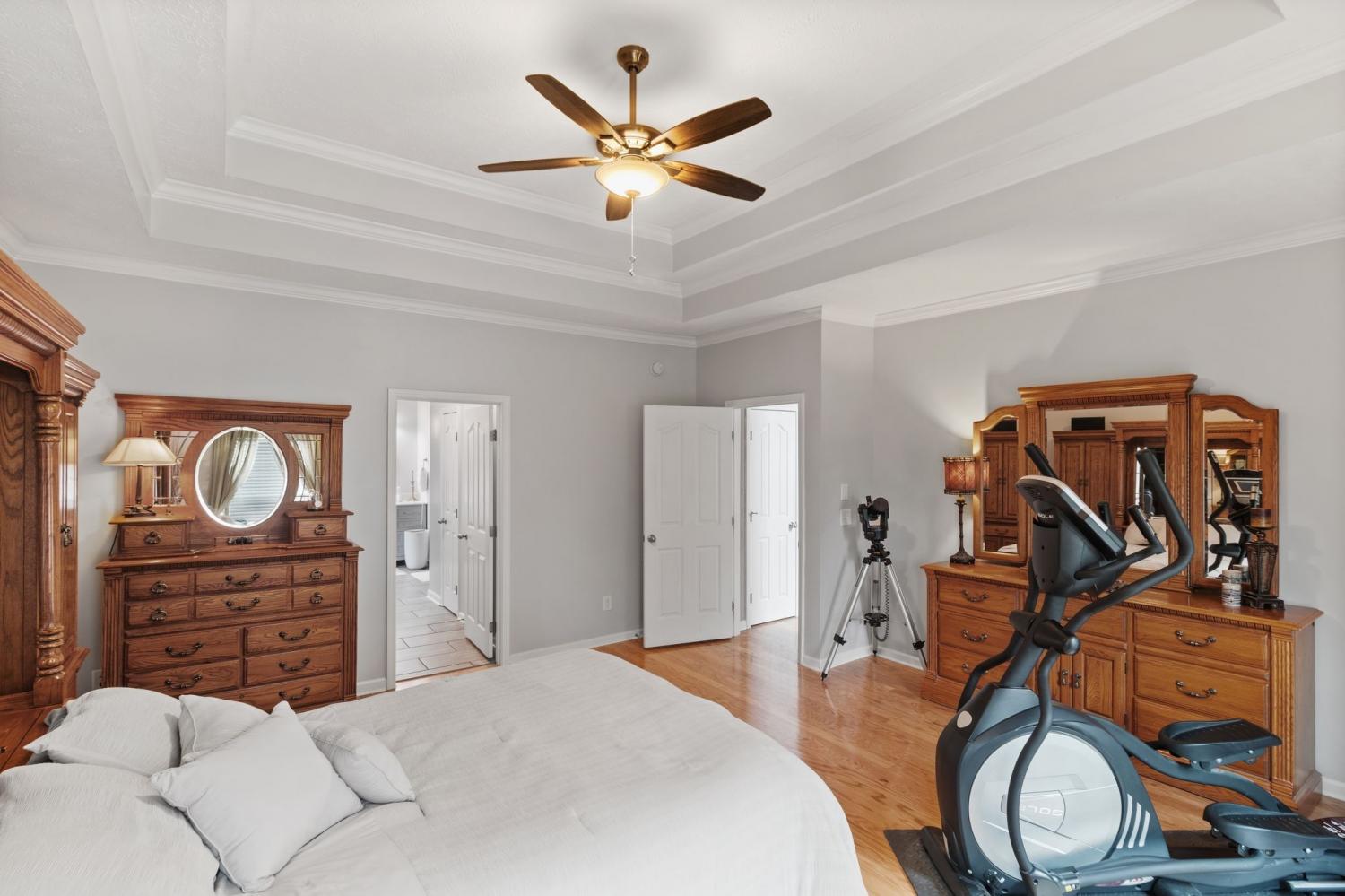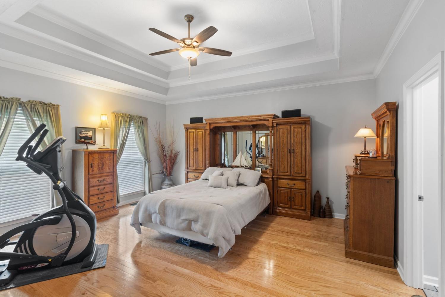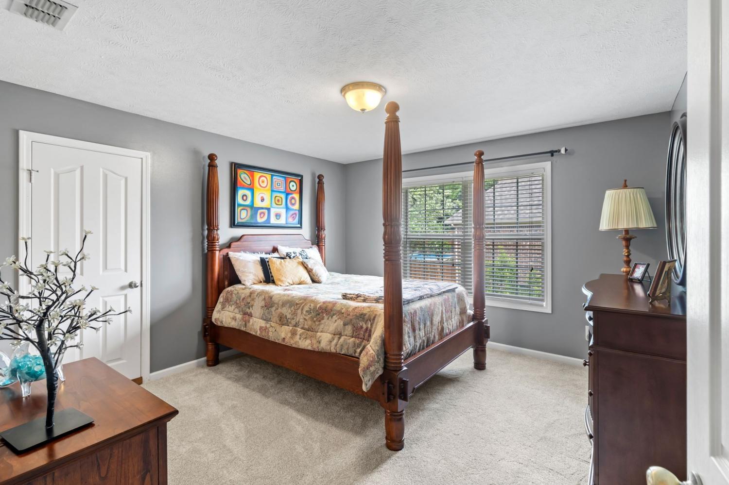 Beautifully Updated 4-Bedroom Brick Home on .39 acre lot in Sought-After McFarlin Pointe! This stunning home offers an open, functional layout and numerous high-end upgrades. The remodeled kitchen features brand-new soft-close cabinets, striking quartz countertops, an island, ss range hood and a stylish tile backsplash. The renovated primary bath boasts a spa-inspired tiled shower, freestanding tub, and new cabinetry. Hardwood floors flow through the main living areas and primary suite, with new carpet in all secondary bedrooms and the large bonus room. Ideal for multi-generational living, the main level includes two bedrooms and two full baths. Upstairs, you'll find two spacious bedrooms with a Jack and Jill bath. Enjoy outdoor living on the expansive deck with aluminum railings, overlooking a private, wooded backyard. Additional highlights include a formal dining room with wainscoting, a tray ceiling in the primary bedroom, and a storage shed that remains with the property.