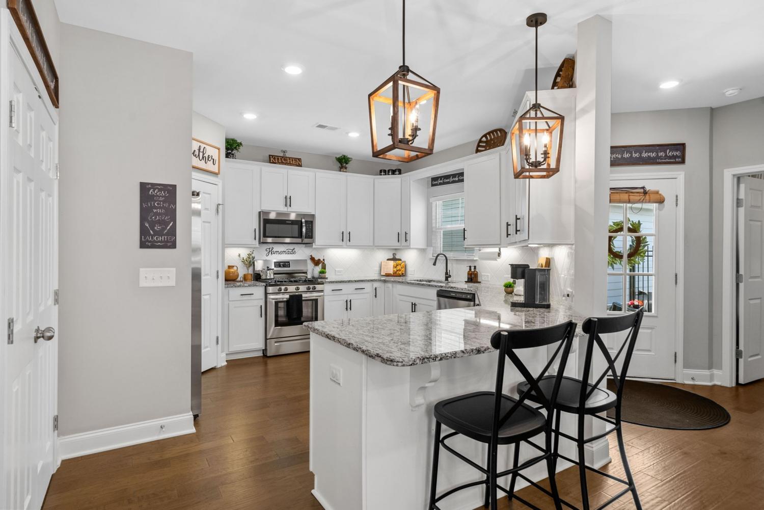 The Preserve at Belle Pointe offers exquisite amenities and beautiful curb appeal. Schedule your tour for this two level Raleigh Cottage floorplan. Owner suite and 2nd bedroom are on main floor for added convenience. Large Bonus offers ample space to host family & friends. The oversized bonus room that features a full bath upstairs could be converted to a 3rd bedroom. Hardwood flooring throughout main living areas, owner suite, and 2nd bedroom. Granite countertops, tile backsplash, gas stove, and stainless appliances. Seller replaced all kitchen hardware and all the light fixtures throughout. Additional mixed use room can be used as an office or a sunroom. New shelves inside of the closet and custom wood shelves in both bathrooms. Preinstalled ADT Security system along two car garage with long driveway. Have friends or family visiting? No problem with extra parking for guests just a step away! Resort Style Amenities with an event space to host birthday parties, with large pool, playground, park, and wide sidewalks. Minutes to downtown Lebanon where you’ll see a vibrant town square full of restaurants and boutique shops. Schedule your showing for this BEAUTIFUL home.